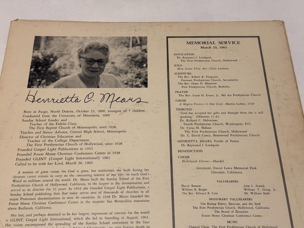 In Memoriam Vinyl by Henrietta C. Mears on Gospel Light Label