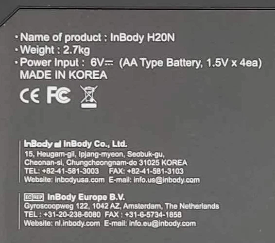 InBody H20N-US Smart Scale, Analyzer | Weight, BMI, Fat, Muscle Mass | Bluetooth working in good condition ,open box condition comes in original box only no battery included L:F The sale of this item may be subject to regulation by the U.S. Food and Drug Administration and state and local regulatory agencies. If so, do not bid on this item unless you are an authorized purchaser. If the item is subject to FDA regulation, I will verify your status as an authorized purchaser of this item before shipping of the item. DISCLAIMER: Regardless of the origin of the equipment, documentation provided or identification appearing upon the equipment, the equipment described and offered here is in no way certified for, recommended for, or offered for any specific use. The purchaser agrees that the seller shall not be held responsible or liable for any injuries or damages, whether incidental or consequential, associated in any way with the equipment. The purchaser, by bidding on this equipment, indicates their acknowledgment of, and agreement to the terms of this disclaimer