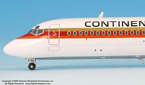 InFlight 200 1:200 Scale Metal Die-Cast – McDonnell Douglas DC-9-32 – Length: 7.125" Wingspan: 5.57” This model represents the Continental Airlines DC-9-32 registration N12536, construction number 47113, in the Continental "Red Meatball" livery. The InFlight 200 production quantity of this model was 480 pieces worldwide, released in July 2006.