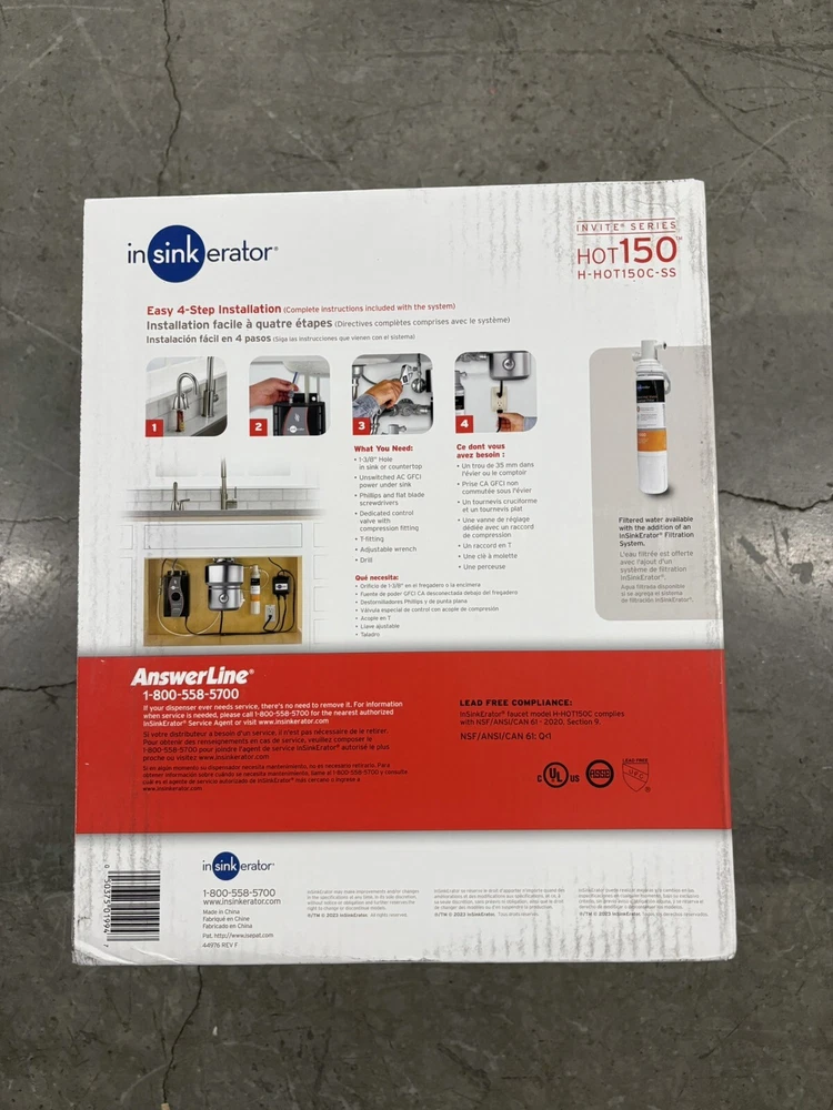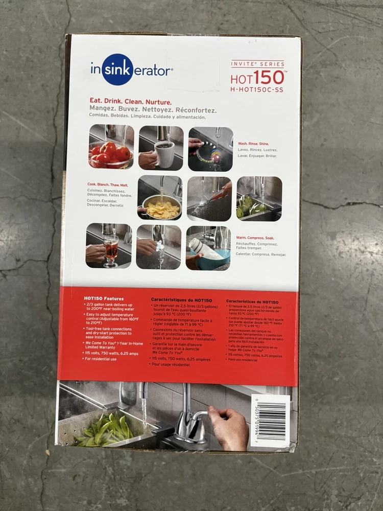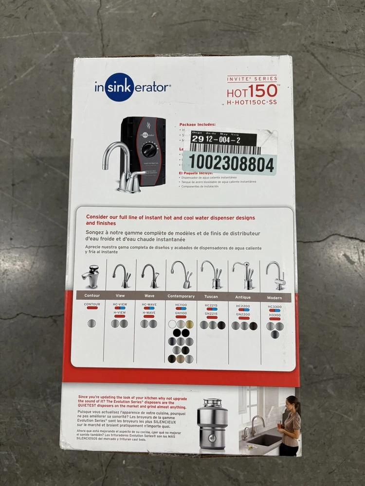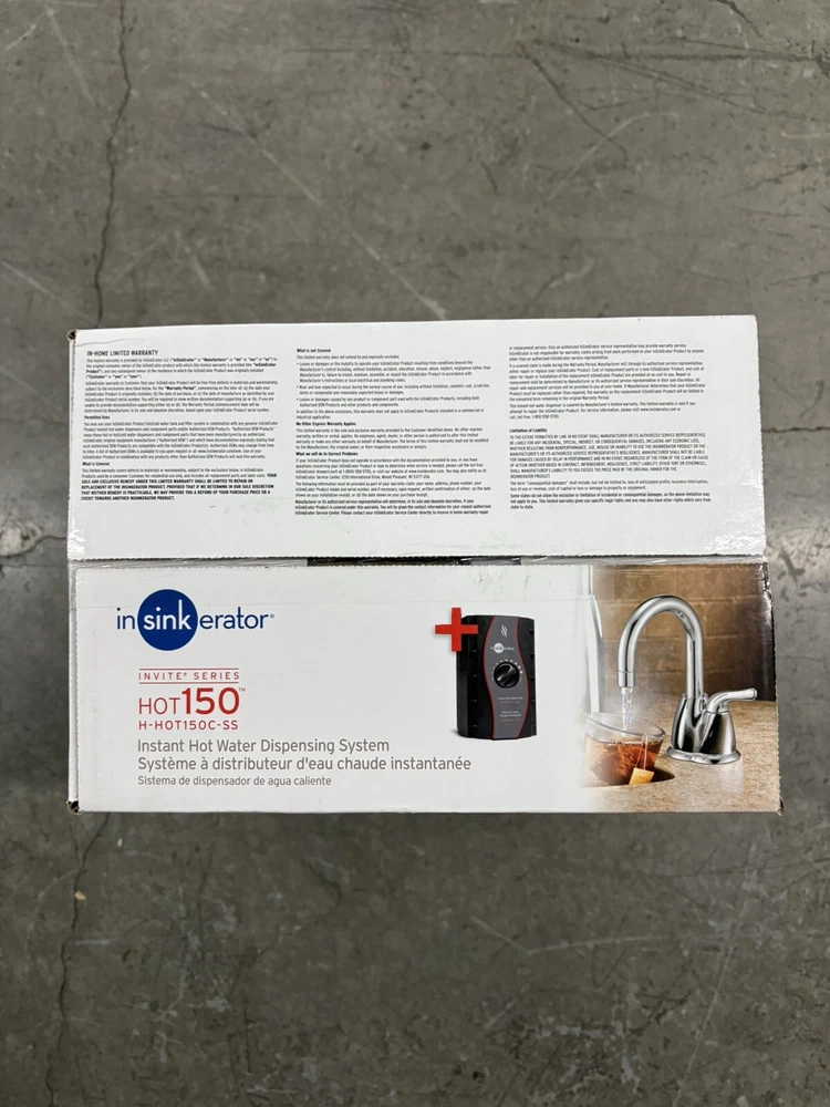 Get the InSinkErator H-HOT150C-SS Invite Hot150 Instant Hot Water Dispenser With Tank for your kitchen today and enjoy the convenience of having hot water at your fingertips. This deck-mounted hot water dispenser is compatible with Aquasana filtration systems and features a single handle for easy use. The steel material ensures durability, while the chrome color adds a touch of elegance to your kitchen. This hot water dispenser has a capacity of 14.8 liters and is powered by corded electric. It comes with a tank and has hot water safety features, including automatic shut off and programmability. The InSinkErator H-HOT150C-SS Invite Hot150 Instant Hot Water Dispenser With Tank is a perfect gift for holidays or special occasions.