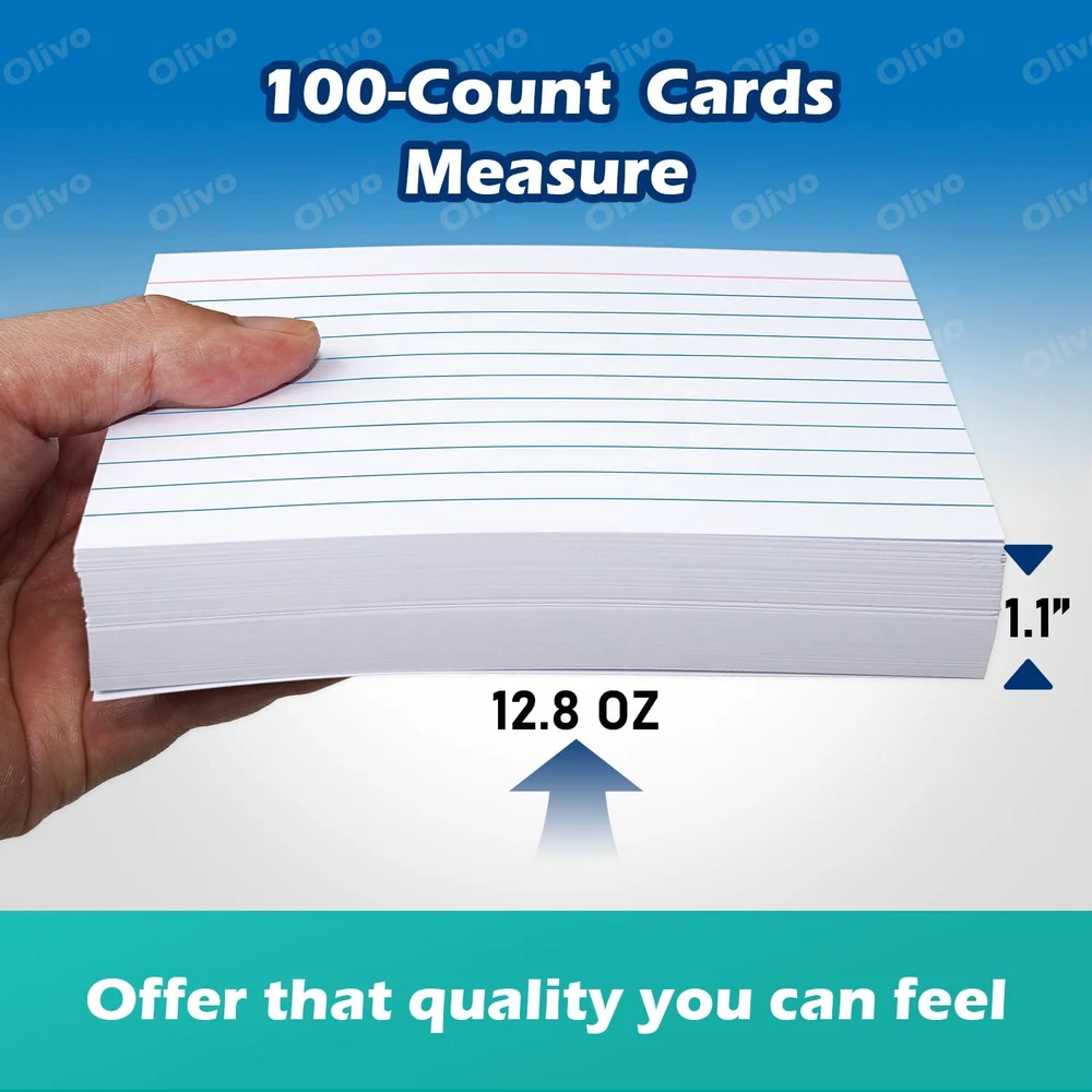 Store New Arrivals Add to Favorite View Feedback Contact Index Cards 4X6 Lined Ruled Flash Note Cards 4" X 6", White, 100 Count, 220 GSM Heavy Weight Description Item model number SYK-0446L-100-WHITE Sheet Size 4 x 6 Inches Color White Material Paper Material Type Paper Manufacturer Part Number SYK-0446L-100-WHITE Item Weight 0.37 Kilograms Manufacturer Brand Product Dimensions 6 x 4 x 0.01 inches Size 4" x 6" (100 Count) Solid 4x6 index cards heavy weight with 220gsm thick cardstock for smooth writing, durability and no ink bleed-through Single sided printing 4x6 lined index cards, ruled side for easy note taking, blank side for free drawing needs Classic white index cards 4x6 inches idea for making study notecards, flashcards, recipe cards and more Each pack includes 4x6 index cards lined 100 count for studying convenient choice These 4 x 6 index cards 100ct lay measures 1.1" thickness and 0.8 lbs(12.8 oz) heavyweight, offering premium quality OLIVO 4x6 Index Cards Lined Ruled 220gsm Heavy Weight Paper, White, 100-Count Pack ABOUT US We offer the best prices around on high quality products. Our E-store includes media such as books, movies, music and games while offering electronics, toys, sporting apparel, clothing, tools, general home, garden items and more. SHIPPING We are always working hard to ensure your package arrives as soon as possible. Please understand that some factors like weather, high postal traffic, and the performance of shipping companies are outside of our control. We offer free shipping to the lower 48 states and ship within 2 business days of payment, usually sooner. We do not accept P.O. Boxes. Please provide a physical address. RETURNS We offer a 30-Day Return Policy on items which you are not completely satisfied with. You have the option for a full-refund or an exchange of the item. No returns are available on items shipped outside of the USA. PAYMENT We accept PayPal. CONTACT US This page content is yet to come Please ad us to your favorite seller and visit again later Thank You CUSTOMER SATISFACTION We try our very best to make sure every customer is completely satisfied. If there's a problem, message us! We're happy to help.