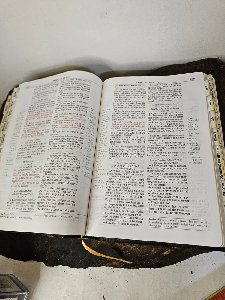 This KJV Red Letter Scofield Study System Holy Bible is a precious addition to any library. With its bonded leather cover and indexed tabs, it is perfect for young adults and adults who are studying the Bible. The Bible is published by Oxford and written by Richard Dillon, making it a valuable part of the Historical book series. The Bible is in English and has a total of 66 books. It measures 6 inches in length, 2 inches in height, and 8 inches in width. This paperback Bible is not vintage and was published in 2003. It is suitable for anyone who is interested in religious and spiritual topics. Please view photos for a fair representation of condition