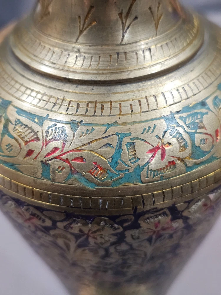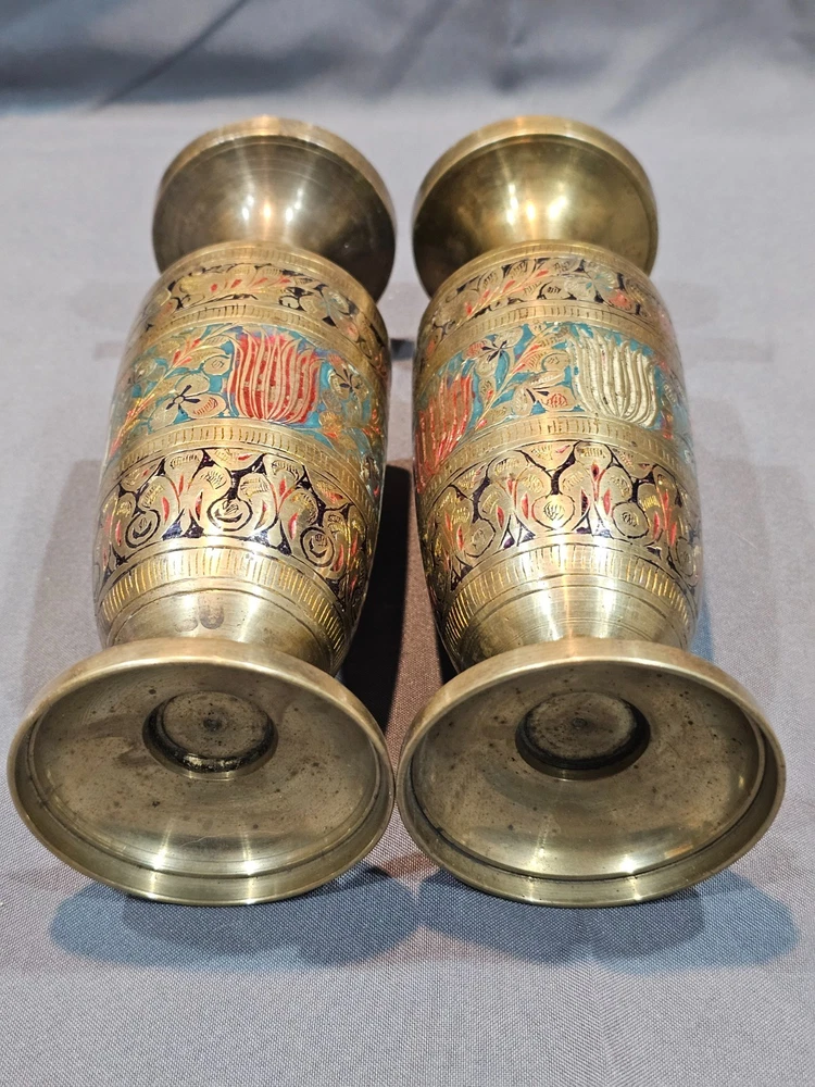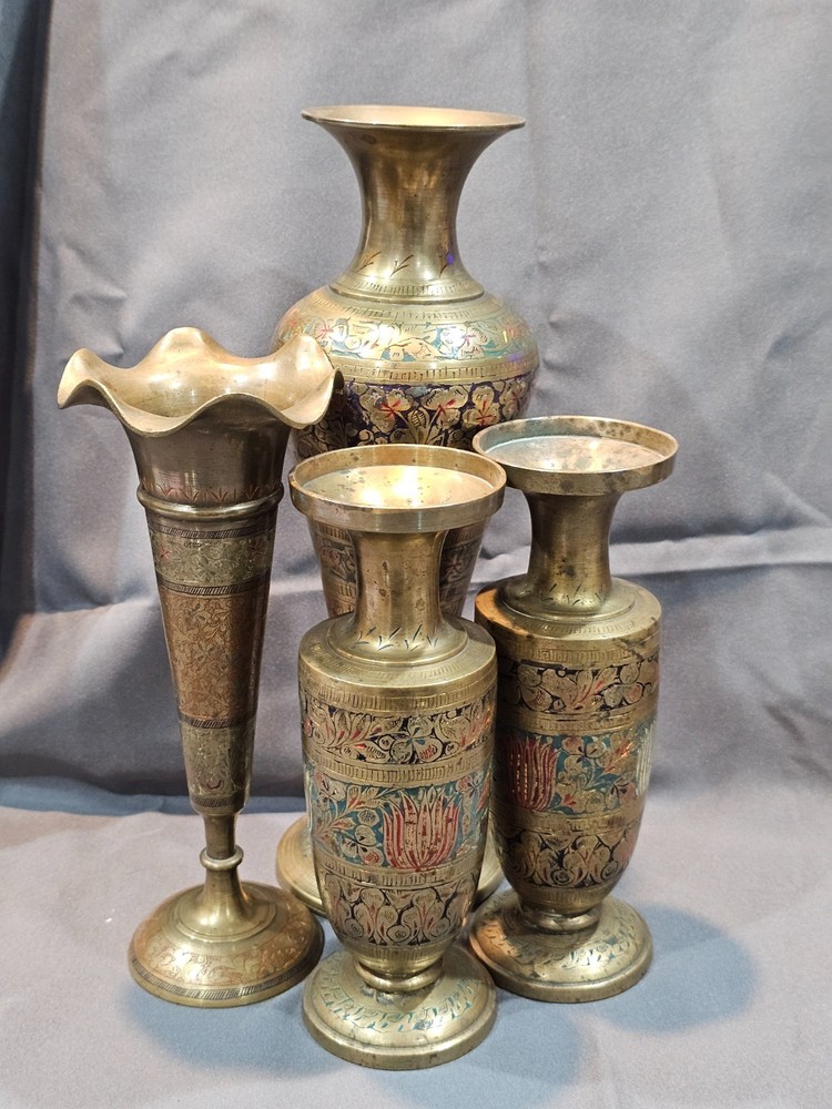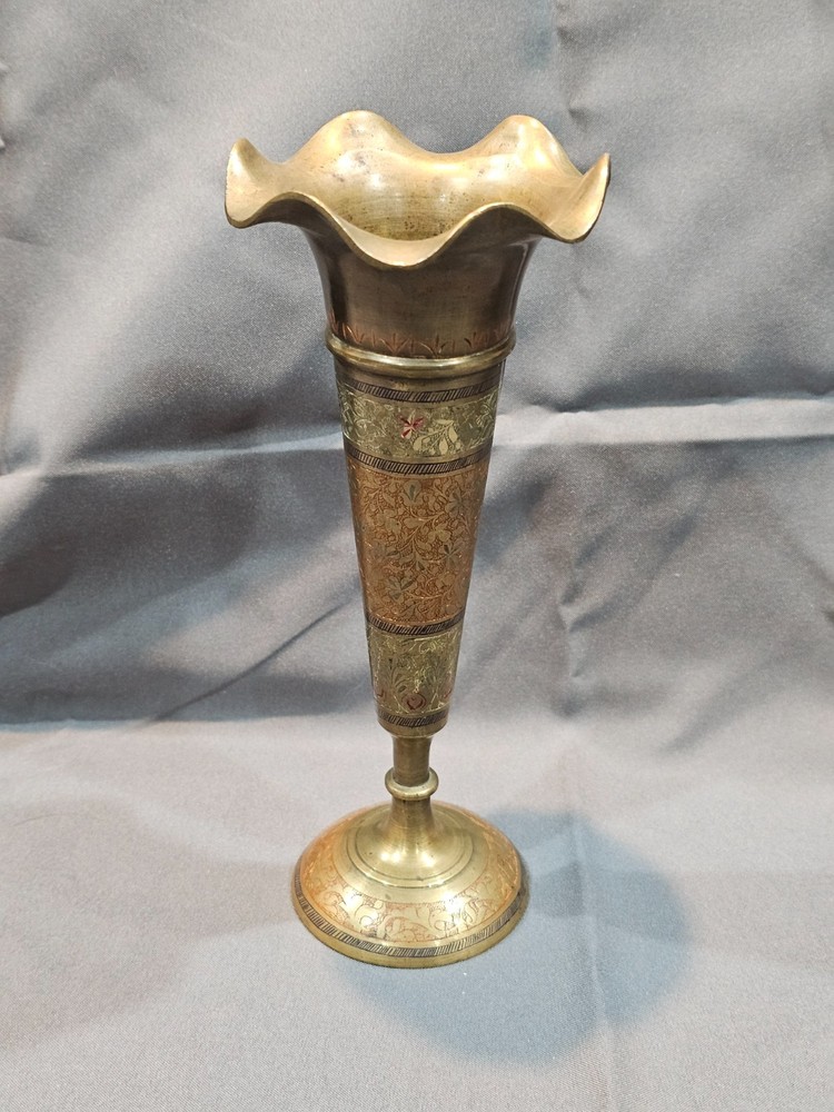 *Sizes are approximate Tall Vase: 12" x 4" Two Smaller: 7.5" x 2.5" Medium Vase: 9" x 3.5" Condition: Please keep in mind these authentic vintage brass items from India and/or China are pre-owned and display various signs of age and use. Each piece may have dents, scratches, discoloration, blemishes, or other imperfections that add to its character and patina. All items are sold in as-found condition; please review photos and descriptions carefully. If you have questions about a specific item’s condition, feel free to ask before purchasing. Please Read Before Buying: · All items are described and photographed to the best of my ability, including any known flaws, defects, or wear. Please review all photos and description details carefully before purchasing, as they represent the exact condition of the item. · Photos are considered part of the description — please zoom in to review them carefully before purchasing. · Item measurements, sizing, or fit are the buyer’s responsibility to confirm before purchase. · Color may vary slightly due to lighting, camera, or screen differences. · This item is sold as described in the listing. Returns are only accepted if the item significantly differs from the description, per eBay’s Money Back Guarantee policy. · The listing price reflects the condition, and all known defects are disclosed. · I cannot guarantee the item’s performance or longevity after purchase, as usage and care are beyond my control. · Only the items shown in the photos are included—no additional accessories, manuals, or boxes unless explicitly stated. · If you have any questions about the item’s condition, size, or features, please ask before placing your order. · As per eBay policy, buyers may still open cases under eBay’s Money Back Guarantee if the item significantly differs from the description. Buyer Advisory for Vintage Items and Antiques: · Please note that the information provided in this listing may be incomplete or inaccurate. It is recommended that you use the details as a starting point to form your own judgment. I appreciate any additional information that could enhance or clarify the history of the objects. · Given the uncertainty surrounding this piece, we advise potential buyers to proceed with caution. The purchase decision rests entirely with you, and you assume any associated risks. · We encourage interested parties to conduct their own research or seek expert opinion before making a purchase decision.