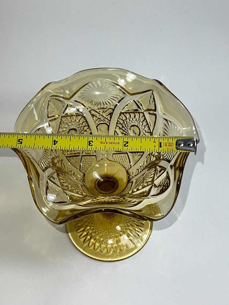 Indiana Amber Depression Glass Goblet Dessert Dish Compote Heavyweight Glass Gold ★ Material: Glass. ★ Approximate Size: 5.5" tall X 5.5" wide. ★ Brand/Maker: Indiana Glass. ★ Color: Amber/Gold. EXCELLENT VINTAGE CONDITION NO CHIPS, CRACKS, SCRATCHES, or CRAZING Photos part of the description