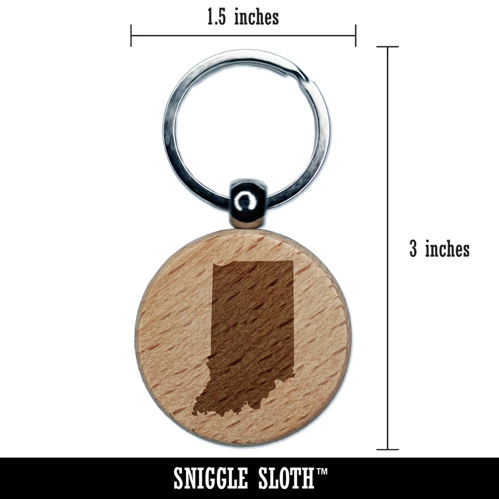 Indiana State Silhouette Engraved Wood Round Keychain Tag Charm