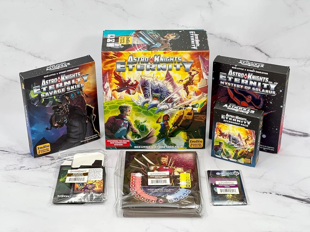Further Details Title: Indie Boards & Cards Astro Knights Eternity: Mystery of Solarus, Strategy Games Condition: New Brand: Indie Boards and Cards Release Date: 03/20/2024 MPN: IBCIBCAKEMS1 Material: Cardstock Theme: Fantasy Language: English Age Level: 14 years and up Min. Number of Players: 1 to 4 Genre: Strategy Item Length: 203mm Item Width: 165mm Item Height: 2mm Description: Deep within a ruined city, buried beneath the acidic clouds on the surface of the planet Eos, an archaeologist and her wife have made the greatest discovery of their lives. Two Star Cores, left abandoned when the Astro Knights vanished years ago, and the remnants of a shattered super weapon prophesied to have the power to destroy entire planets. They cannot let them fall into the wrong hands. Astro Knights Eternity: Mystery of Solarus continues the battle from the exciting base game. It brings a new nemesis, new minions, two new Astro Knights, and a new homeworld. The battle continues across another system as the Astro Knights continue to defend the universe! Item Weight: 270g Country/Region of Manufacture: China Type: Board Games Color: Nicht Zutreffend Age Level: Ab 14 Jahren "Astro Knights Eternity: Mystery of Solarus" is an extension of the base game, continuing the battle with new elements. The expansion introduces a new nemesis, minions, two Astro Knights, and a new homeworld, expanding the universe and storyline. The ongoing battle spans across another system as the Astro Knights strive to protect the universe from impending danger. Deckbuilding with no shuffling Variable turn order Missing Information? Please contact us if any details are missing and where possible we will add the information to our listing.