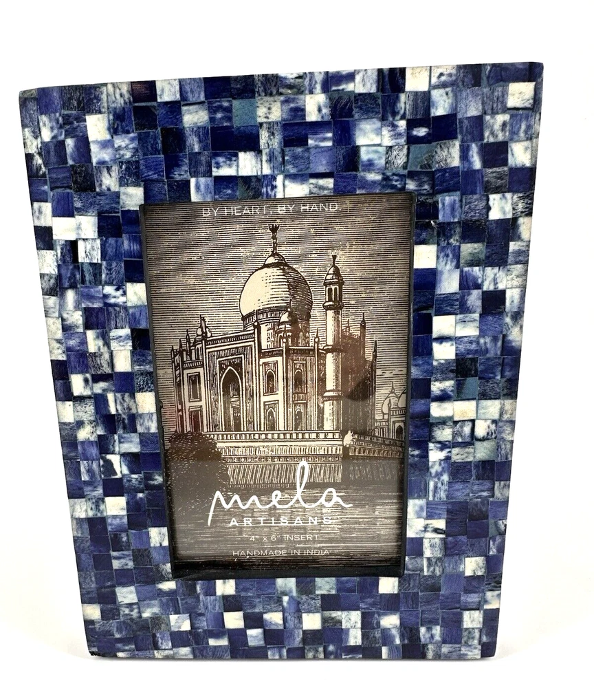 The Mela Artisans Indigo Hand Painted Photo Picture Frame is a contemporary designer piece featuring small indigo tiles in various shades of blue, creating a beautiful abstract pattern. Made by artisans in India, this 4x6 frame has a rear-loading photo insertion and a matte finish. The frame measures 8.5 inches in height, and 6.5 inches in width, with a portrait orientation and clear glass. This unique and stylish frame is suitable for all occasions and would make a stunning addition to any home decor. Great condition. Artist signature on back in metal. You will receive the picture frame that is in the picture. If you are new here, you may see if other items that will be listed this week or next week. So, you get a sneak peak of what is coming up next! :)!! Here is my Ebay shop: YouBeYou LLC If you have any questions even after you have purchased the item --- I am here for you to answer any questions that you may have! I strive to work diligently with every buyer to ensure they are a satisfied buyer, so please contact me anytime. This is a pre-owned item and I take great care to accurately describe the item but please see the pictures for full details. While we do our best to list every item in detail, these are vintage and pre-owned items, and some flaws are to be expected. Please see all photos/ video as they are a large part of the description of our items. Items come from a smoke-free environment. Each item is described in accurate detail with multiple measurements and various photos at different angles front and back, side to side, top and bottom. I have additional similar items that I have yet to list that you may be interested in. Feel free to follow my store ( YouBeYou LLC ) to see those when posted. Please see all photos/ video as they are a large part of the description of our items. I strive to make every purchase a pleasant experience. Please feel confidence in you purchase that I'll make every effort to correct any issues that may arise. If used, there are always some signs of wear -- well, because it is used, vintage, or antique. Most items are used -- Each item is inspected for quality. It is very important to us that you have a happy Ebay experience! Thank you for supporting a small business like ours! (Note: pictures may include measurements, and some have a video.)