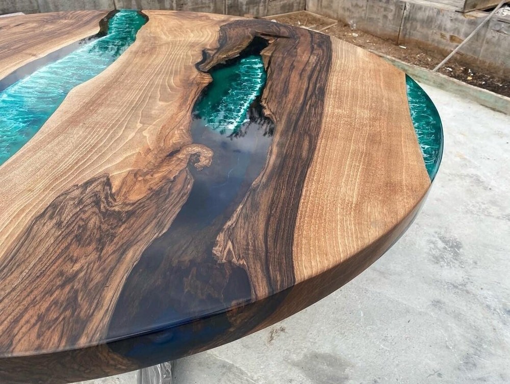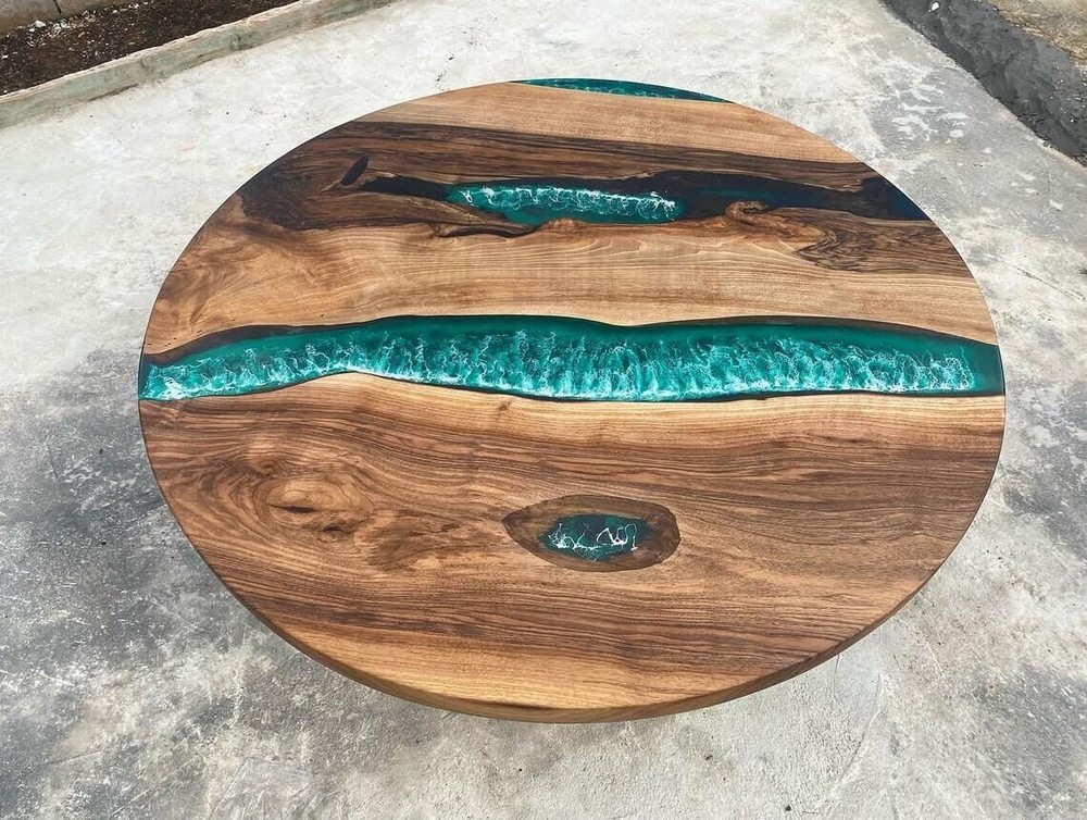 Indoor Green White Ocean Sea Round Epoxy Resin Dining Table Coffee Table Sea top