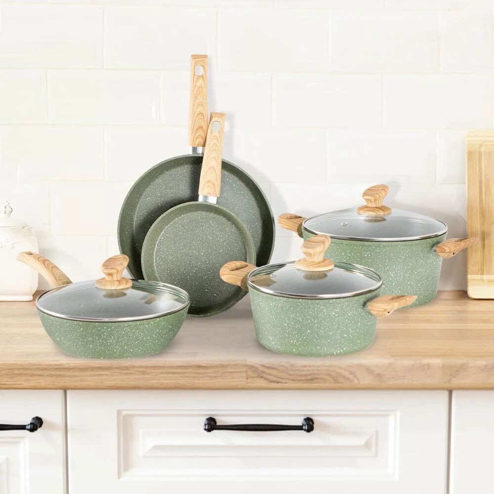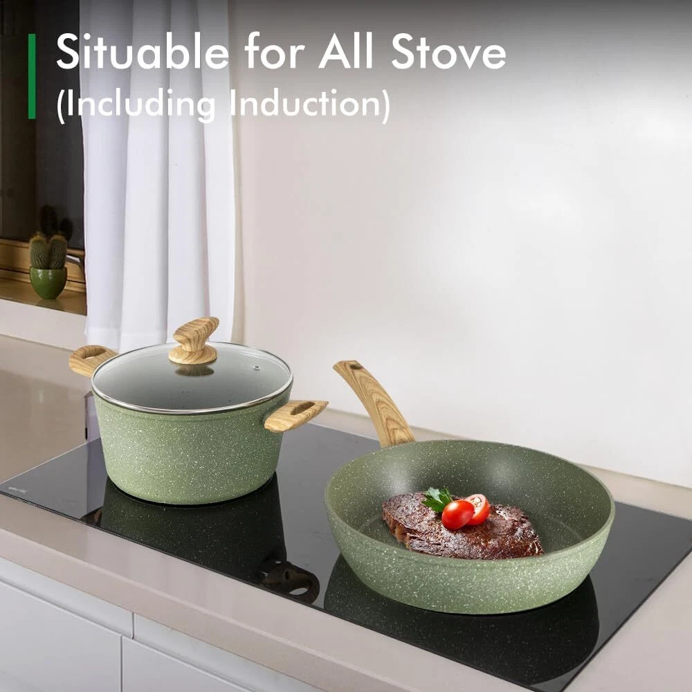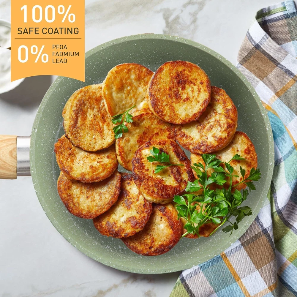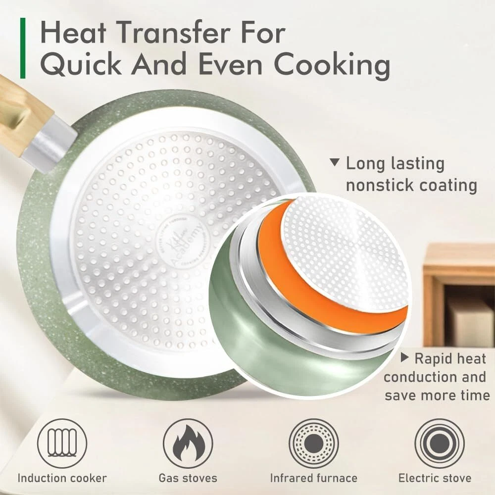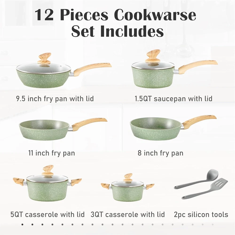 ๐๐ฏ๐๐ง ๐๐๐๐ญ๐ข๐ง๐ ๐๐๐๐ก๐ง๐จ๐ฅ๐จ๐ ๐ฒ: Our pots and pans set is excluding of PFOS,PFOA, The set's even heating technology guarantees uniformly cooked meals. No more hot spots or unevenly cooked food โ every dish is a masterpiece. Nonstick pot set for precise cooking ๐๐ ๐๐ข๐๐๐ ๐๐ซ๐๐ง๐ข๐ญ๐ ๐๐จ๐จ๐ค๐ฐ๐๐ซ๐ ๐๐๐ญ ๐๐ง๐๐ฅ๐ฎ๐๐๐ฌ: 8-inch fry pan / 11-inch fry pan / 9.7-inch Deep Fry Pan with lid / 1.5Q saucepan with lid / 3Q casserole with lid / 5Q casserole with lid / 2 pcs silicone utensils. Different size of non stick pots and pans set meets all your need for daily cooking ๐๐๐ฌ๐ฒ ๐ญ๐จ ๐๐ฅ๐๐๐ง: Say goodbye to scrubbing and soaking. Our cookware features a smooth, easy-to-clean surface, ensuring that tidying up is as simple as enjoying your delicious . Easy to clean granite pots and pans ๐๐จ๐ง๐ฌ๐ญ๐ข๐๐ค ๐๐จ๐ญ๐ฌ ๐๐ง๐ ๐๐๐ง๐ฌ ๐๐๐ญ: The non-stick material allows light oil and less fumes, and the pan set is wear-resistant and lightweight, which enhances the experience of stir-fry cooking and makes cooking healthier On Dec 15, 2024 at 18:42:38 PST, seller added the following information: