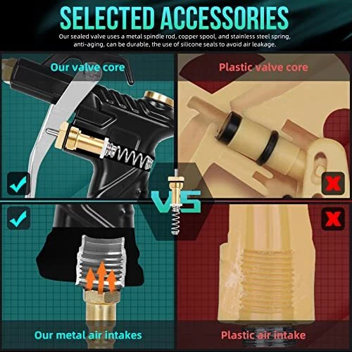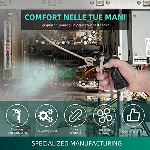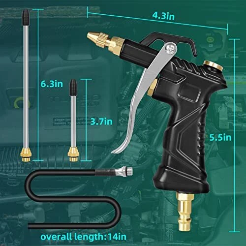 Industrial Air Blow Gun with Brass Adjustable Air Flow Nozzle Steel Air Flow Flexible Universal Air Blow Hose -- Easily clean hard-to-reach narrow gaps, inside pipes and machine parts. Short Nozzle -- Adjustable copper nozzle rotates to control air flow volume, suitable for general scenes. Straight Gun Nozzle -- 3.8 inches, used in the more difficult to enter the space, strongly concentrated air nozzle. Strong Airflow -- Quality air compressor tools with high volume air flow, ideal for carpentry workplace and industrial workshop dust or powders blow off. Also for automotive maintenance, car repair shop cleaning work, household blind corner blowing off Rugged and Durable -- The trigger and its matching accessories are the fundamental measures of an air blow gun's quality because it bears the most frequent movement force of the compressed air gun. The air blow gun tool adopts a steel trigger to ensure the trigger is constant. The sealed valve using metal spindle rod, copper spool and stainless steel spring, anti-aging, can be durable, the use of silicone seals to prevent air leakage, selected accessories, only for better air compressor gun. Detachable Air Blow Gun -- The buckle plate is fixed with sub screws, which is easy to disassemble and maintain the internal structure and seals to achieve a longer service life Air Tools and Accessories -- You will get: 1 x air blow gun with standard quick coupling, 1 x adjustable air flow short nozzle, 2 x steel air flow extension, 1 x universal blow hose, 6 x sealing ring. Product Description 2PCS air blow gun satisfies all your imagination of air blow gun with its excellent design ●The upgraded universal hose can easily clean the hard-to-reach gaps. ●The high-voltage inlet interface can be quickly connected or disconnected. ●The 360-degree rotating hook allows you to easily hang or store the blow gun. ●The sensitive trigger allows you to easily control the airflow according to your needs. ●High temperature resistant handle can increase grip and provide you with maximum comfort. ●The nozzle has a soft rubber tip to prevent scratches or damage to precision instruments. Product Details Package includes:2 Air Blow Gun+2Adjustable Nozzle + 2 universal hose+4Steel Air flow Extensions Air Inlet: 1/4” Copper Quick Plug+Bushing Fitting(optional); Maximum PSI: 150 PSI; Overall Dimensions:W-4-1/2” L - 5-1/2” H - 7/8”. Shipping We offer FREE shipping on all orders! We ship within Three business days of payment, usually sooner. We use a selection of shipping services such as UPS, FedEx, USPS etc. We only ship to the lower 48 states, no APO/FPO addresses or PO Boxes allowed. Local pickups and combined shipping options are not provided at this time. Return You can return a product for up to 30 days from the date you purchased it. Any product you return must be in the same condition you received it and in the original packaging. Please keep the receipt. Payment We accept payment by any of the following methods: PayPal Please pay as soon as possible after winning an auction, as that will allow us to post your item to you sooner! Feedback Customer satisfaction is very important to us. If you have any problem with your order, please contact us and we will do our best to make you satisfied. Contact Us If you have any queries, please contact us via ebay. We usually respond within 24 hours on weekdays. Please visit our eBay store to check out other items for sale! Thank you for shopping at our store.