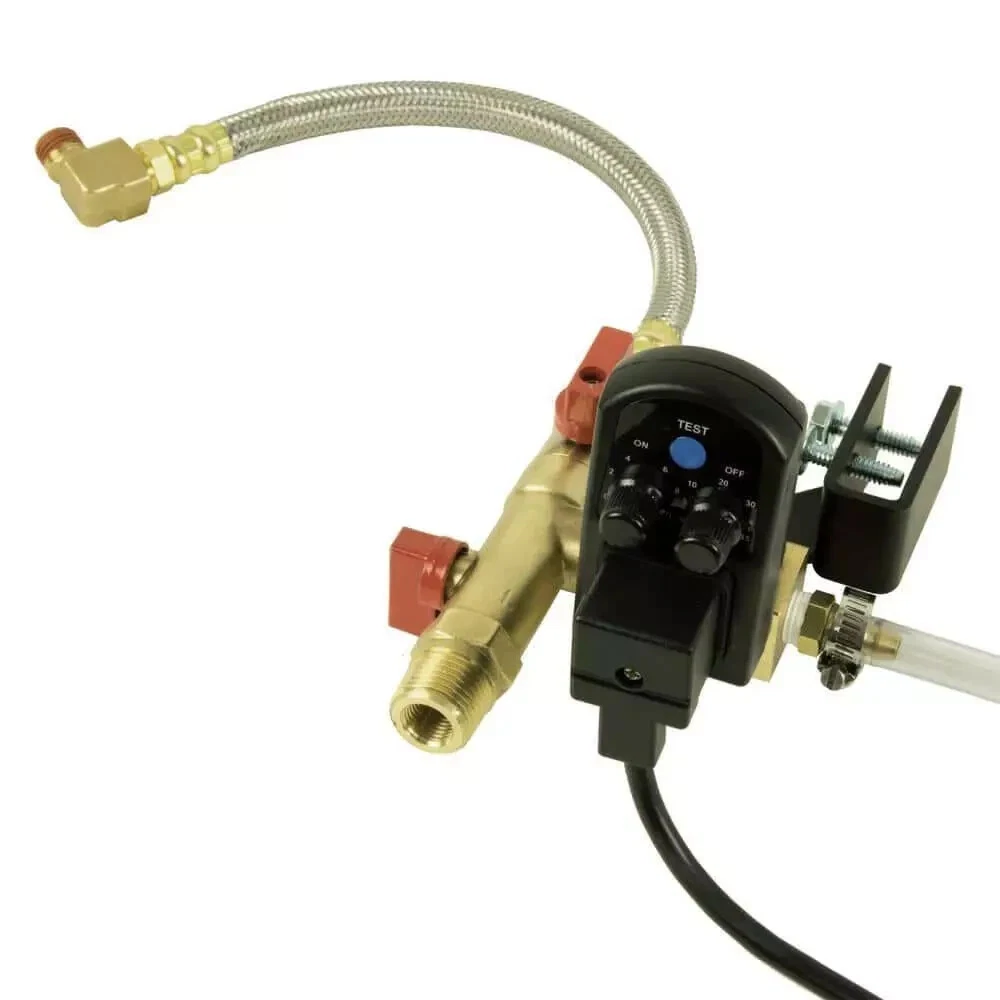 No more tedious tank draining with this Husky Automatic Electronic Tank Drain Kit. It eliminates the need to drain your tank by automatically draining the condensation from any air compressor tank. Easy to install and maintain, simply choose the cycle time and set the drain to activate between 30 seconds to 45 minutes. An LED light indicates on/off status. Highlights Eliminate manual draining Automatically drains condensation from the air compressor tank Designed for use with all air compressors Easy to install and maintain Set the drain to activate anytime between 30 seconds and 45 minutes Includes: electronic auto tank drain with 6 ft. power cord, clean out strainer valve, 10 braided stainless steel tank drain tubes with 1/4 NPT elbow, 3 ft. drain hose with hose clamp, and universal multi-purpose mounting bracket