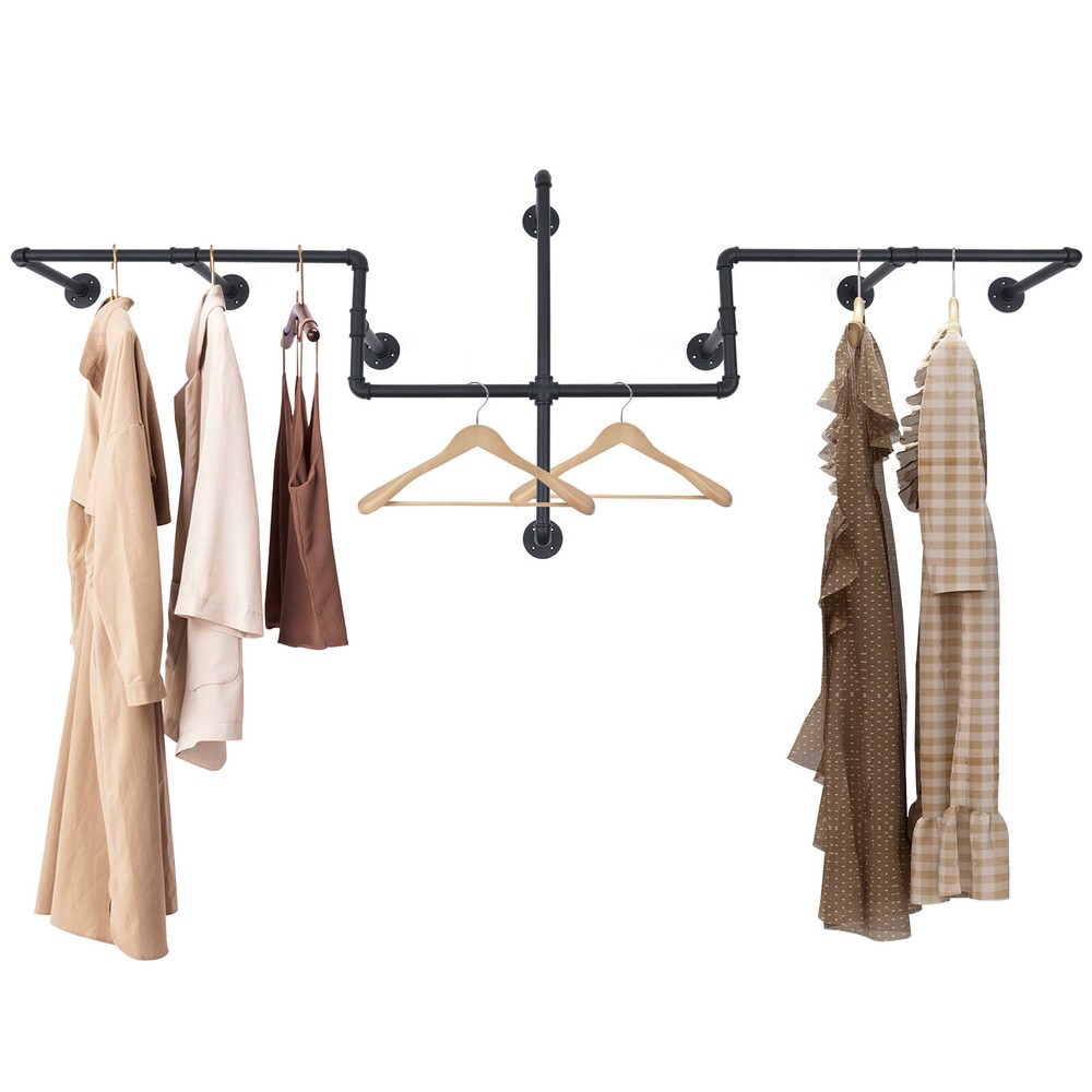Industrial Pipe Wall-Mounted Garment Rack for Clothing Storage and Organization
