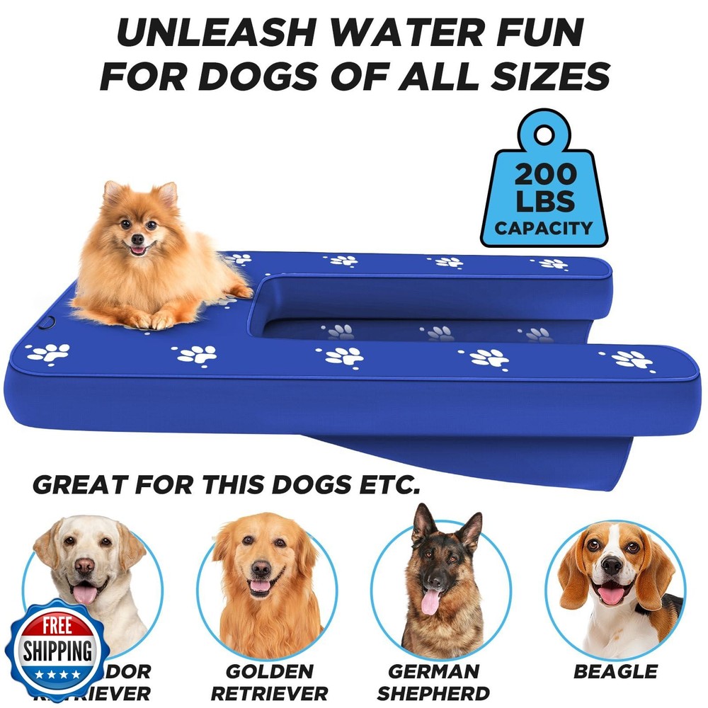 NGNFZQ Inflatable Dock Platform with Electric Pump, Dog Boat Ramp Floating Non-Slip Oxford and PVC with Water Ramp for Dogs Pool, Dock, Lake with Traction Rope Blue (4.7ft x 3ft x 6in) Features [Joint-Support Water Access] - Specially angled ramp reduces stress on hips and joints, allowing puppies to senior dogs to exit water effortlessly. Hydrodynamic grooves stabilize movement - perfect for arthritic dogs or post-surgery recovery [Effortless & Time-Saving Inflation] Say goodbye to tedious manual pumping! Our electric dog float pump inflates most dog floats in just ~2 minutes—2x faster than manual options—so you can spend less time prepping and more time splashing with your pup. Just press start, and watch it fill evenly and quickly. Perfect for busy pet parents, beach days, or lake adventures where every minute counts—get your furry friend water-ready in a flash! [Safety Inflatable Dock Platform] - The surface is made of anti slip Oxford cloth, which helps prevent slipping when climbing in and out of the water surface. Dual non-slip Oxford and PVC entry system combines stabilizing mesh, graduated traction platforms, and low-profile buoyancy control. Ensures confident water entry/exit for dogs of more sizes while preventing ramp displacement [200LBs Loading Capacity] - Engineered with an expanded 4.7 ft long x 3ft wide x 6 in high anti-tip platform, this dog ramp delivers high-grade buoyancy to securely support pets from Chihuahuas to Great Danes (up to 200lbs). Dual-layer Oxford & PVC structure. 17% heavier loads than standard docks - folds to 16"x12" for instant trunk/boat locker storage [Sustainably Usable for Years] - Durable oxford and PVC construction delivers featherlight maneuverability without compromising durability. Features collapsible design with integrated grab handles and compact storage bag – deploy your portable dog marina quickly. Perfect for RV trips or spontaneous beach days [Fully Equipped - 2025 Pro Series] - This inflatable dog ramp for pool comes with a manual pump, 10fT*2 tie-down ropes, and a storage bag. Equip with D-rings anchor securely to docks/boats, great for a variety of water environments. Secure your dog float wherever you go, including pools, boats, marinas, lakes, the ocean and the RV Shipping Free & Fast Shipping: We offer free shipping to most of the USA with a normal delivery time of 3-7 days. However, due to the current situation, additional delivery time (up to 3 weeks) may be required for some items. Alternative Carriers: We may use alternative carriers (e.g., USPS, FedEx, UPS) to ensure your package arrives safely and on time. Due to the use of multiple carriers, we are unable to provide a tracking number automatically. Handling Time: Orders are processed and shipped within 1-2 business days of receiving cleared payment. Shipping Restrictions: Shipping to Alaska, Hawaii, Puerto Rico, Guam, and other US territories may incur shipping charges or delivery restrictions. Please contact us before ordering, or your order can be refunded/cancelled. State Restrictions: Certain items may not be shipped to California due to state regulations. Contact for Tracking Updates: If you require tracking updates or have any concerns about the delivery of your order, please feel free to contact us, and we will be happy to assist you. Return Policy 30-Day Hassle-Free Returns: If you are not completely satisfied with your purchase, you can return the item for free within 30 days of receiving it for a full refund or exchange. Easy Return Process: Contact us, and we will provide you with a prepaid return shipping label and detailed instructions. No Restocking Fee: There are no restocking fees for returns. However, the buyer is responsible for return shipping costs if the return is not due to a seller"s error. Refund Processing: Refunds will be processed within 1 business day of receiving the returned item in its original condition. Feedback Your feedback is extremely important to us. We strive to provide the best products and customer service possible. If you are satisfied with your purchase, please take a moment to leave us a positive review. If you have any concerns or issues with your order, please contact us before leaving negative feedback. We are committed to resolving any problems and ensuring your satisfaction. Contact Us If you have any questions or concerns, please feel free to reach out to our customer support team. You can contact us through the eBay messaging system. We are available Monday to Friday, 9:00 am to 5:00 pm EST, and we will do our best to respond to your inquiry within 24 hours. Thank you for supporting our small family business!