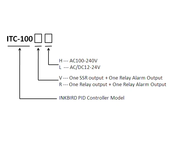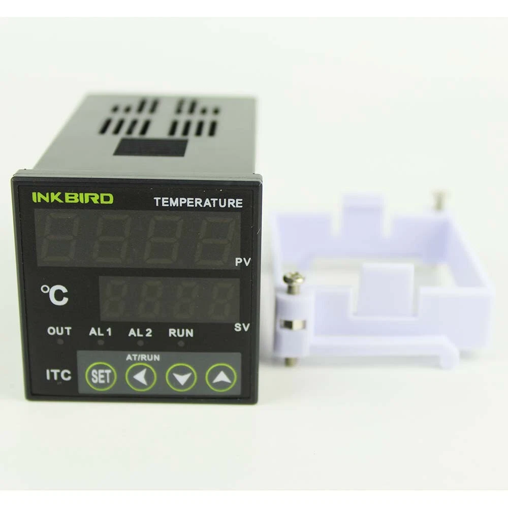 ITC-100VH One SSR Output + One Relay Alarm Output 100V-240V AC Warranty: 1 Year Main Features: ●Front Panel Dimension: DIN (48WmmX48Lmm), Cutout size: 45x45mm ●Support Multiple Thermocouples and Resistance Sensors (K, S, Wre, T, E, J, B, N, CU50, PT100) ● Wide Controlling Range: -50~1300ºC(Please note the k sensor temperature range: 0~400℃) ●Power Supply Voltage: AC 100-240V ±10% 50/60Hz ●Main Output: Voltage Pulses Output (ITC-100V): DC 12V, 30mA; Alarm 1 AC250V 3A (Resistive load) ON/NC ● High Accuracy of Displaying and Controlling 0.1ºC, Accuracy of Measurement ±0.2%FS ● PID and ON/OFF Control Mode, High Standard Self-adjusting Function ● Multiple Outputs and Alarm Modes ● Build-in Adjustable Digital Filter Reduce Interference ● The Self-adjusting Function and Intelligent Control of the Instrument Ensure the Long-term Stability ● High Luminance, 0.39” height LED display, Anti-glare panel ● Built-in Switch Power Supply, Wide Voltage Range and Low-power Consumption Specification: ●Units: Degree Celsius (<1000ºC) ●Operating voltage range: 85~110% Rated voltage ●Power Consumption: Approx. 5VA(100~240VAC) Approx. 4VA(12~24VAC) Approx. 3W(12~24VDC) ●Display Character: PV: 4 digital 9.9mm height Red LED Letters SV: 4 digital 8mm height Green LED Letters ●Display Accuracy: ±0.2%FS 0.1ºC(<1000ºC);1ºC(≥1000ºC) ●Period of Sampling: 0.5S ●Temperature Compensation: 0-50ºC ●Life Expectancy of Relay: Mechanical≥10,000,000 operations Electrical≥10,000,000 operations ● Weight: Approx. 140g ●Environmental Conditions: -10~55ºC(no icy or condensation), RH 35-85% Humidity ●Storage Temperature: -25~65ºC(no icy or condensation) ●Data Storage: 10year ●Mounting Method: Flush mounting and screw terminals K-Type Thermocouple Temperature Sensing For Temperature Controller . - Temperature rang : 0-400 ºC - Sensor Dia: 4.5mm - Cable Length: 2m(6.6ft) - External Shielding: Insulated Shielding - Internal Insulation: Fiberglass 25A SSR SOLID STATE RELAY for temperature controller About SSR: - A solid state relay (SSR) is an electronic switch, which, unlike an electromechanical relay, contains no moving parts. - The types of SSR are photo-coupled SSR, transformer-coupled SSR, and hybrid SSR. - A photo-coupled SSR is controlled by a low voltage signal which is isolated optically from the load. - The control signal in a photo-coupled SSR typically energizes an LED which activates a photo-sensitive diode. - The diode turns on a back-to-back thyristor,silicon controlled rectifier, or MOSFET transistor to switch the load. Features: - Reliable SMT technology - High ultra insulation resistance over 50Mω/500V DC - High dielectric over more than 2.5KV - Low enable current less than 7.5mA/12V DC, compatible with CMOS IC or TTL - Low EMI/EFI & surge by zero cross trigger method - High surge current over 410A/one cycle (60Hz) - High surge voltage duration by snubber circuit Specifications: - Load Voltage: 24-380VAC - Load Current: 25A - Input Voltage: DC 3-32V Package included: 1pcs × INKBIRD AC 220V Dual PID Digital Temp Controller ITC-100VH 1pcs × K Sensor 2M 1pcs × 25DA SSR SOLID STATE RELAY 1pcs × Heat Sink On May-27-21 at 01:18:10 PDT, seller added the following information: