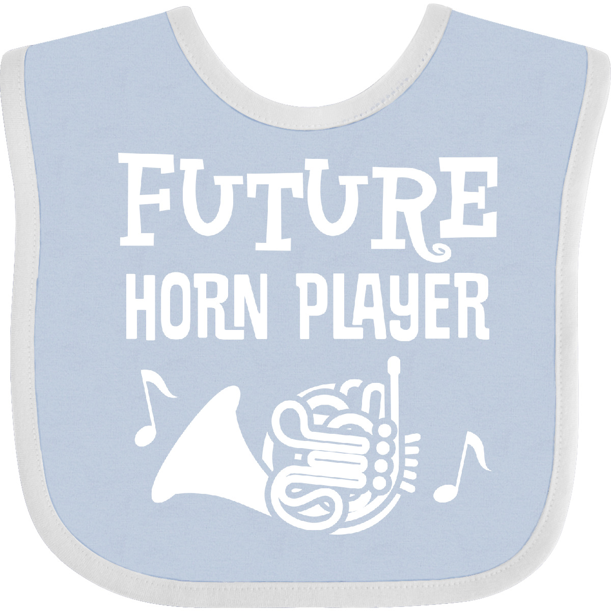Future horn player Baby Bib has music instrument musical silhouette for boys or girls. Our Baby Bib is rated high in convenience and durability and with a variety of fashionable colors, your baby can be trendy. Mix and match to any outfit. 100% cotton ring spun combed heather colors are cotton-poly. Width 7.75", Length 11.75" Baby Bib. Our eBay Store Future French Horn Player Childs Music Gift Baby Bib Navy and Red One Size 14.99 Future horn player Baby Bib has music instrument musical silhouette for boys or girls. Our Baby Bib is rated high in convenience and durability and with a variety of fashionable colors, your baby can be trendy. Mix and match to any outfit. 100% cotton ring spun combed heather colors are cotton-poly. Width 7.75", Length 11.75" Baby Bib. Our bibs are combed ring-spun cotton. Reinforced with a hook and loop closure. Created with only the finest and softest of materials that allow the little one to stay clean and comfortable. Printed with the best direct to garment printing technology using only ECO-FRIENDLY ink, creating a safe and comfortable bib. Our bibs are heat cured so the bibs are able to be washed countless of times and not show any fading, cracking, or loss of color. Inktastic, is a family owned business who prints all products in the USA with pride and integrity ensuring the best customer experience from start to finish.
