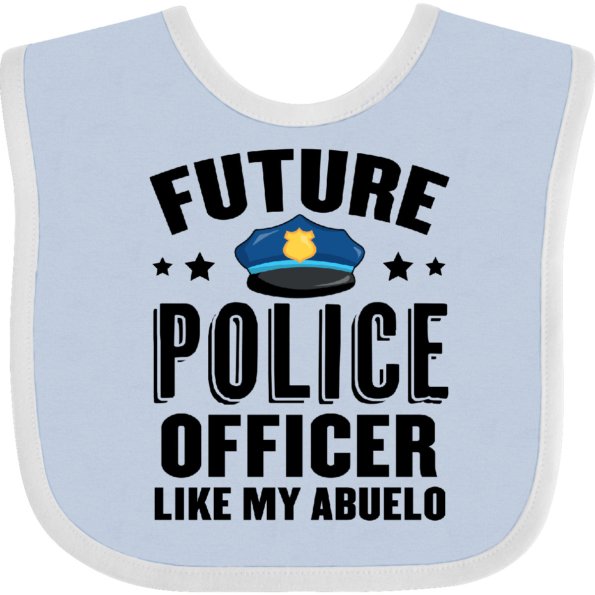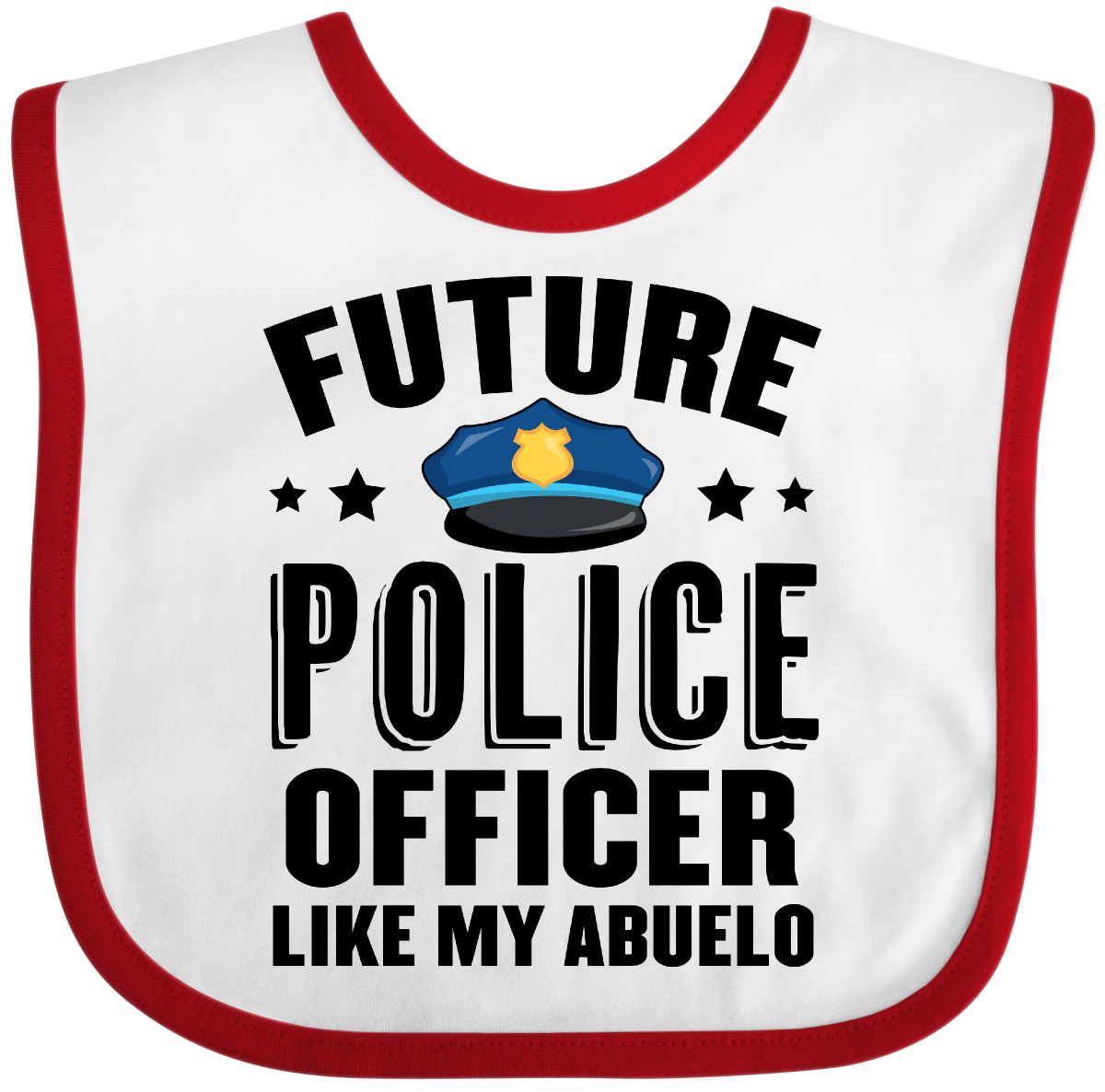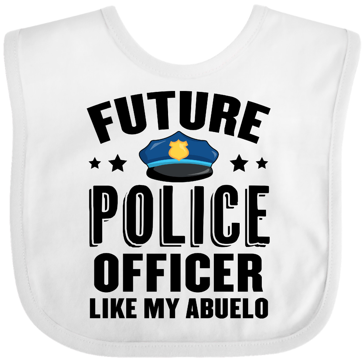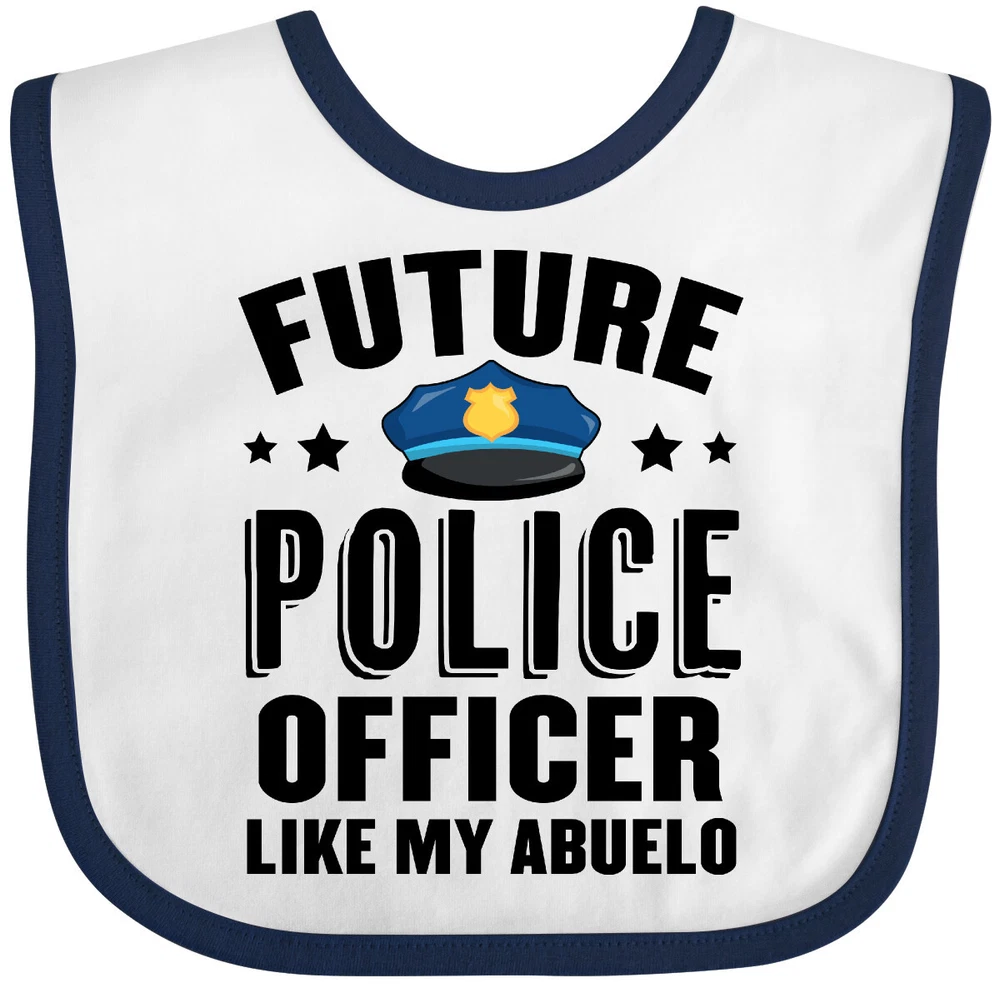 Our cute Future Police Officer Like My Abuelo Baby Bib makes the perfect baby shower gift for Law Enforcement families! Fun pregnancy announcement for your future police officer! Our Baby Bib is rated high in convenience and durability and with a variety of fashionable colors, your baby can be trendy. Mix and match to any outfit. 100% cotton ring spun combed heather colors are cotton-poly. Width 7.75", Length 11.75" Baby Bib. Our eBay Store Future Police Officer Like My Abuelo Baby Bib White and Blue One Size 13.99 Our cute Future Police Officer Like My Abuelo Baby Bib makes the perfect baby shower gift for Law Enforcement families! Fun pregnancy announcement for your future police officer! Our Baby Bib is rated high in convenience and durability and with a variety of fashionable colors, your baby can be trendy. Mix and match to any outfit. 100% cotton ring spun combed heather colors are cotton-poly. Width 7.75", Length 11.75" Baby Bib. Ideal birthday gift for your son or daughter who can't wait to attend the Police Academy. Fun pregnancy announcement for your future police officer! Our cute Future Police Officer Like My Abuelo Baby Bib makes the perfect baby shower gift for Law Enforcement families! Our bibs are combed ring-spun cotton. Reinforced with a hook and loop closure. Created with only the finest and softest of materials that allow the little one to stay clean and comfortable. Printed with the best direct to garment printing technology using only ECO-FRIENDLY ink, creating a safe and comfortable bib.