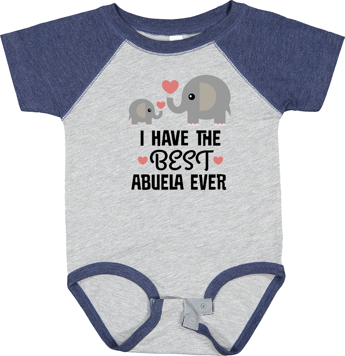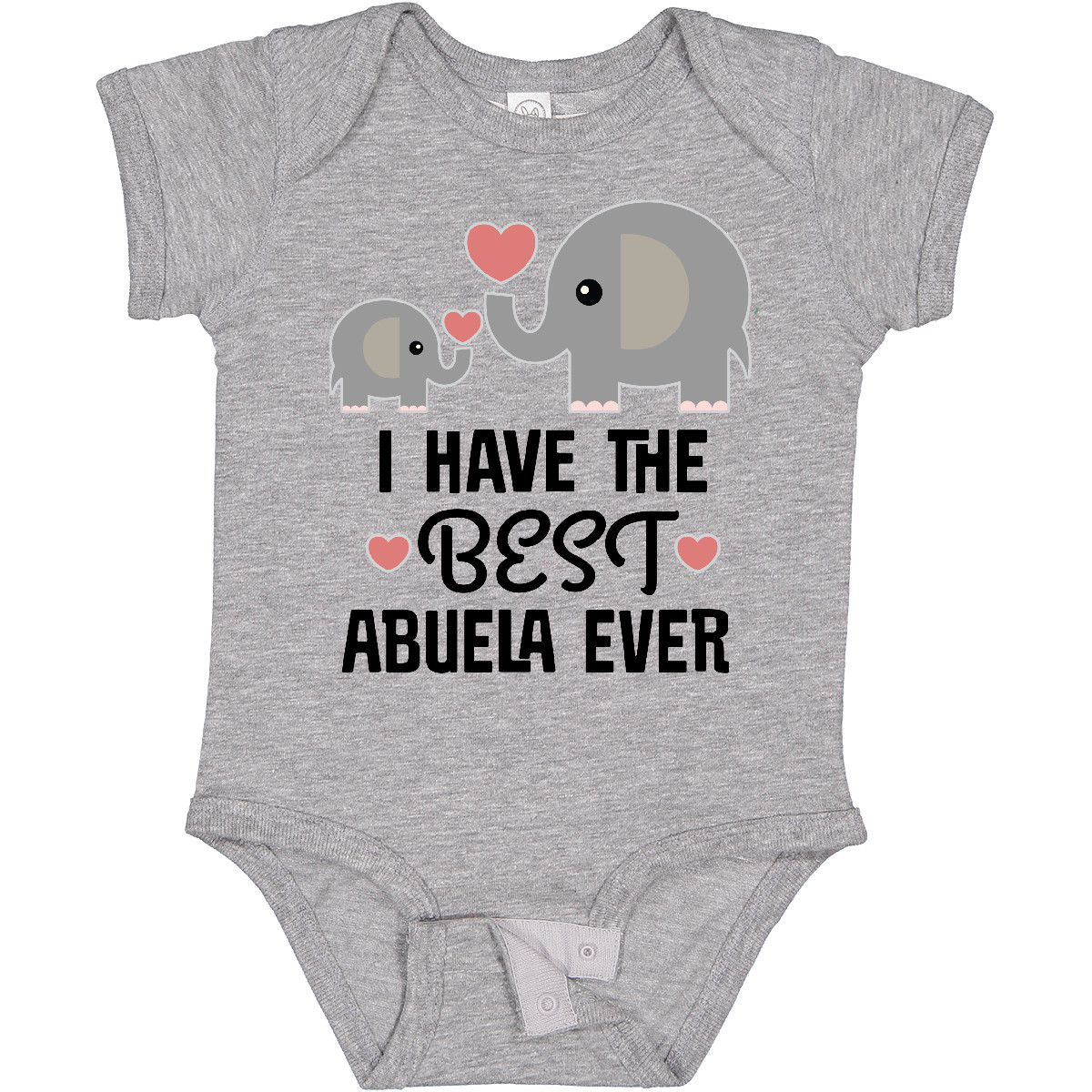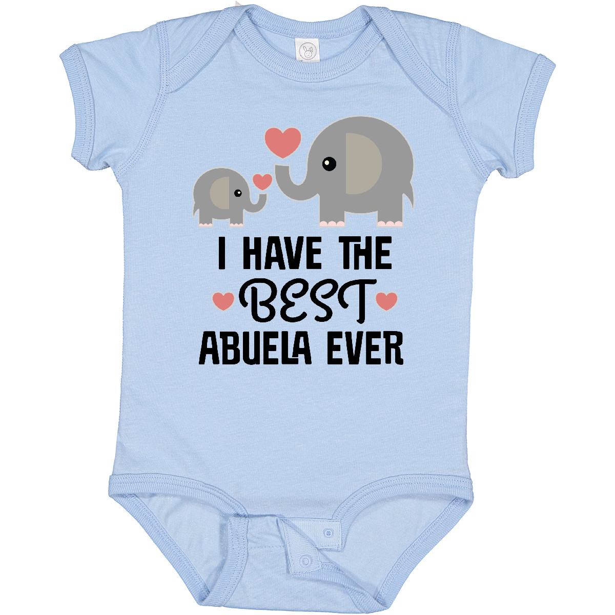 Cute grandkids Baby Bodysuit with slogan that says I have the best Abuela ever and a design of elephant and heart, perfect for a grandson or granddaughter from their grandmother. Our one piece baby bodysuit make great gift for newborns, babies, infants, baby showers and expectant moms. An ideal gift for any new parent who will want one in every color. Baby Bodysuit. Our eBay Store Grandchild Best Abuela Ever Baby Bodysuit 0100 Light Blue 12 Months 18.99 Cute grandkids Baby Bodysuit with slogan that says I have the best Abuela ever and a design of elephant and heart, perfect for a grandson or granddaughter from their grandmother. Our one piece baby bodysuit make great gift for newborns, babies, infants, baby showers and expectant moms. An ideal gift for any new parent who will want one in every color. Baby Bodysuit. Granddaughter baby gift with elephants from a grandparent Best Abuelita ever grandchild quote Baby Bodysuit for girls or boys Our one piece baby bodysuit makes a unique clothing gift for newborns, babies, infants, baby showers and expectant moms. Quick & easy diaper changing with reinforced three-snap closure. Solid colors are 100% cotton, other are cotton/polyester or cotton/polyester/viscose Blend.