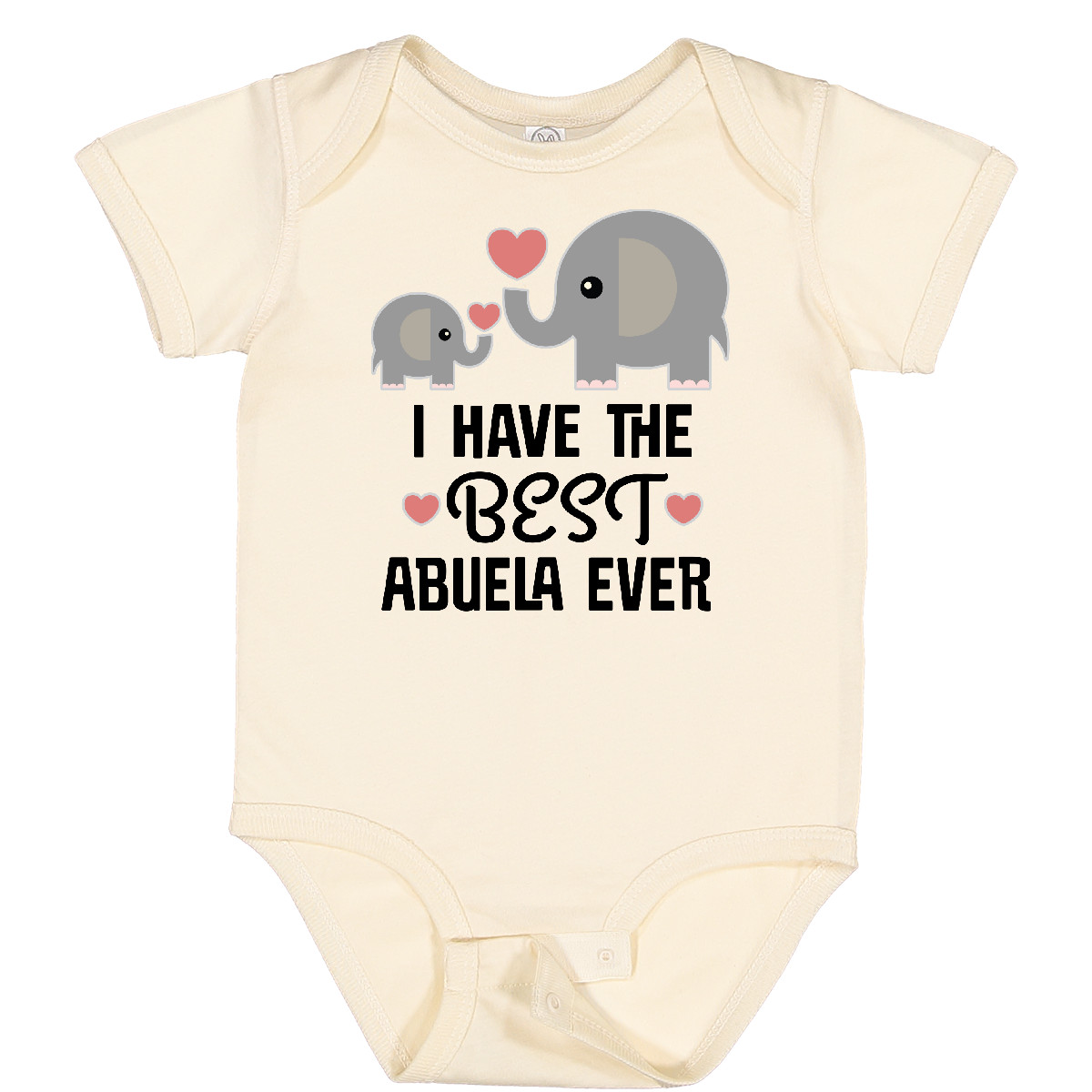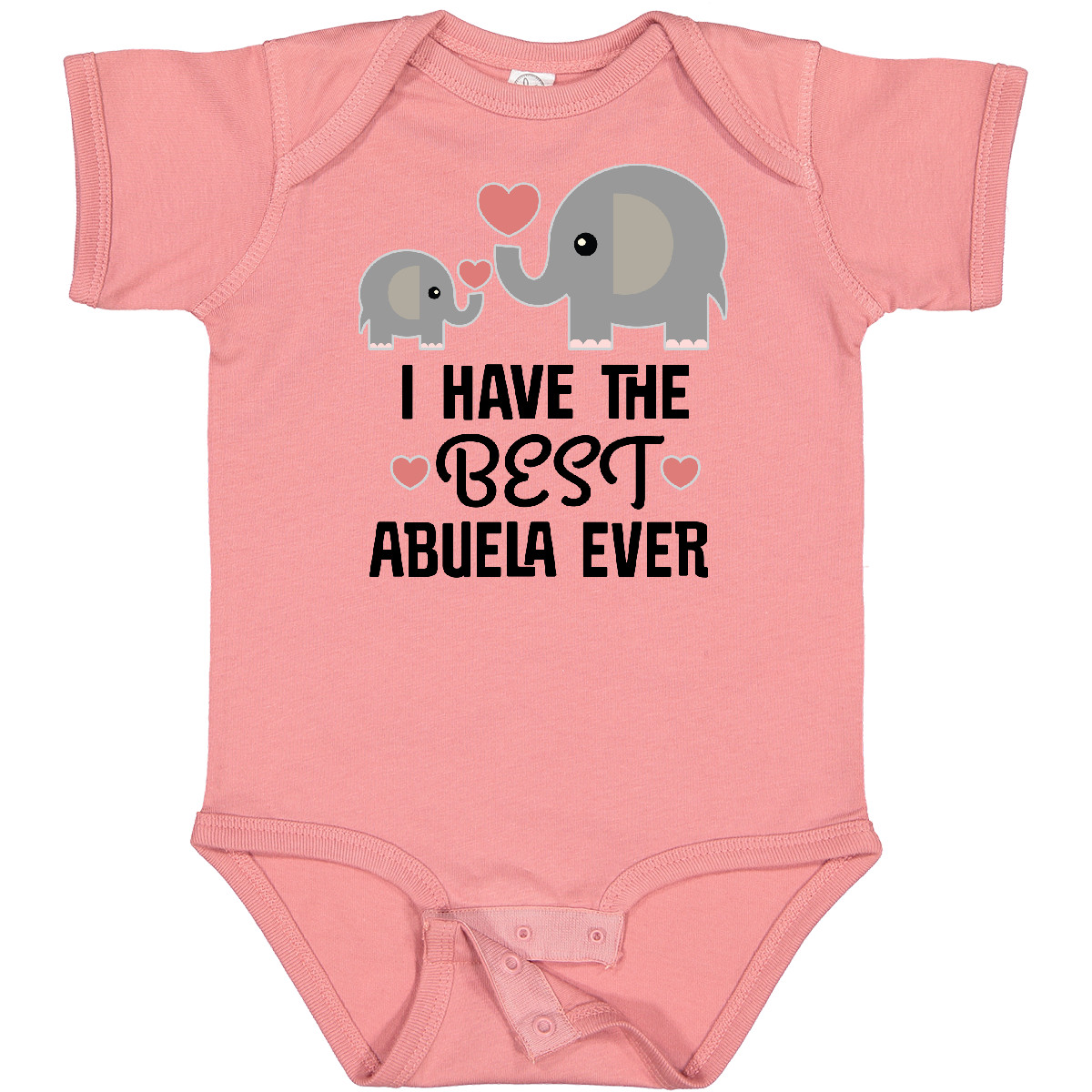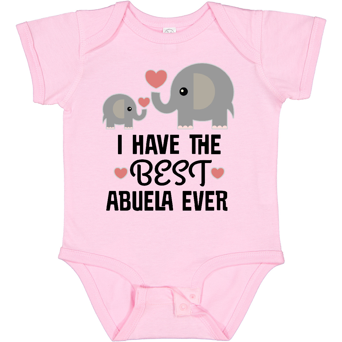 Cute grandkids Baby Bodysuit with slogan that says I have the best Abuela ever and a design of elephant and heart, perfect for a grandson or granddaughter from their grandmother. Our one piece baby bodysuit make great gift for newborns, babies, infants, baby showers and expectant moms. An ideal gift for any new parent who will want one in every color. Baby Bodysuit. Our eBay Store Grandchild Best Abuela Ever Baby Bodysuit 0100 Light Blue 12 Months 18.99 Cute grandkids Baby Bodysuit with slogan that says I have the best Abuela ever and a design of elephant and heart, perfect for a grandson or granddaughter from their grandmother. Our one piece baby bodysuit make great gift for newborns, babies, infants, baby showers and expectant moms. An ideal gift for any new parent who will want one in every color. Baby Bodysuit. Granddaughter baby gift with elephants from a grandparent Best Abuelita ever grandchild quote Baby Bodysuit for girls or boys Our one piece baby bodysuit makes a unique clothing gift for newborns, babies, infants, baby showers and expectant moms. Quick & easy diaper changing with reinforced three-snap closure. Solid colors are 100% cotton, other are cotton/polyester or cotton/polyester/viscose Blend.