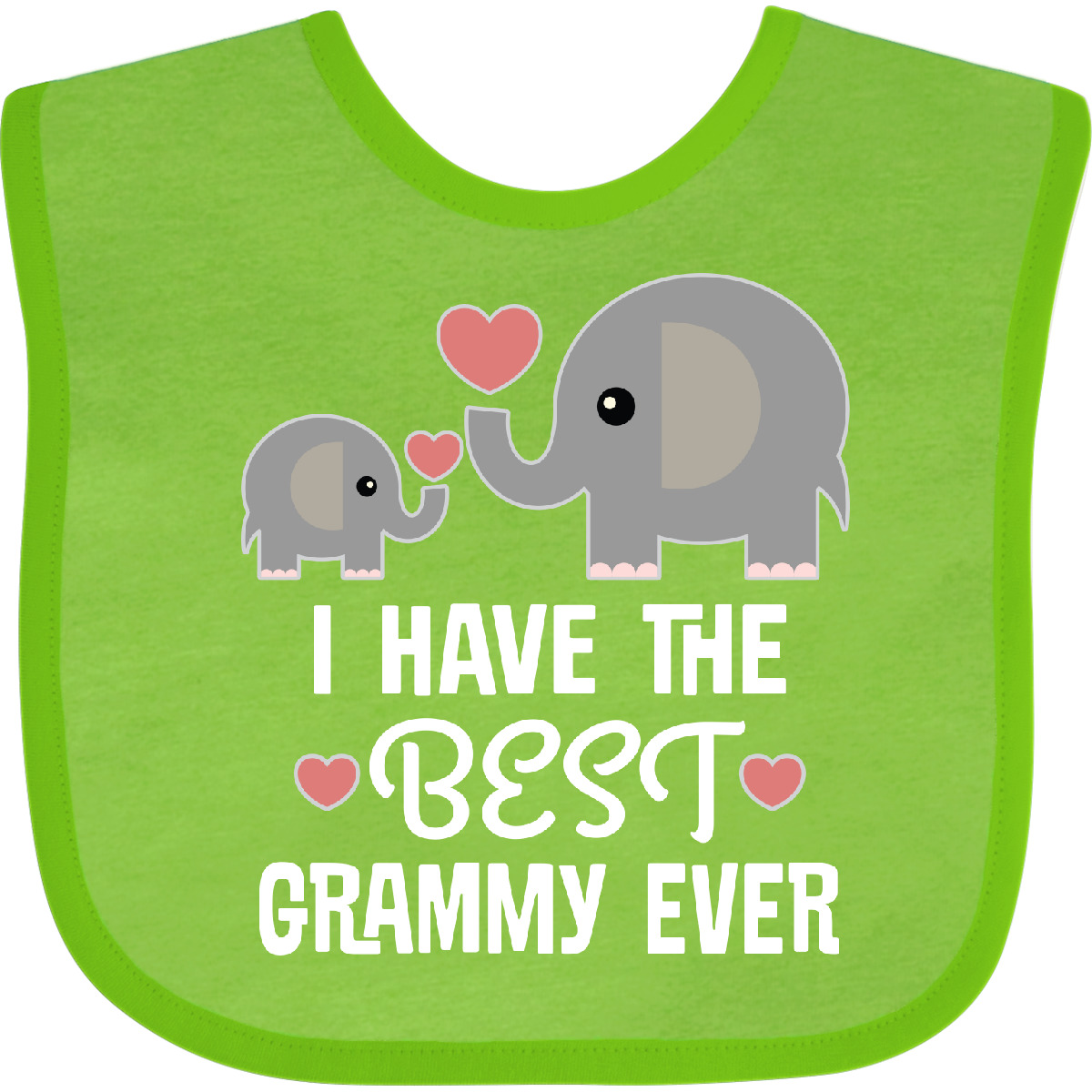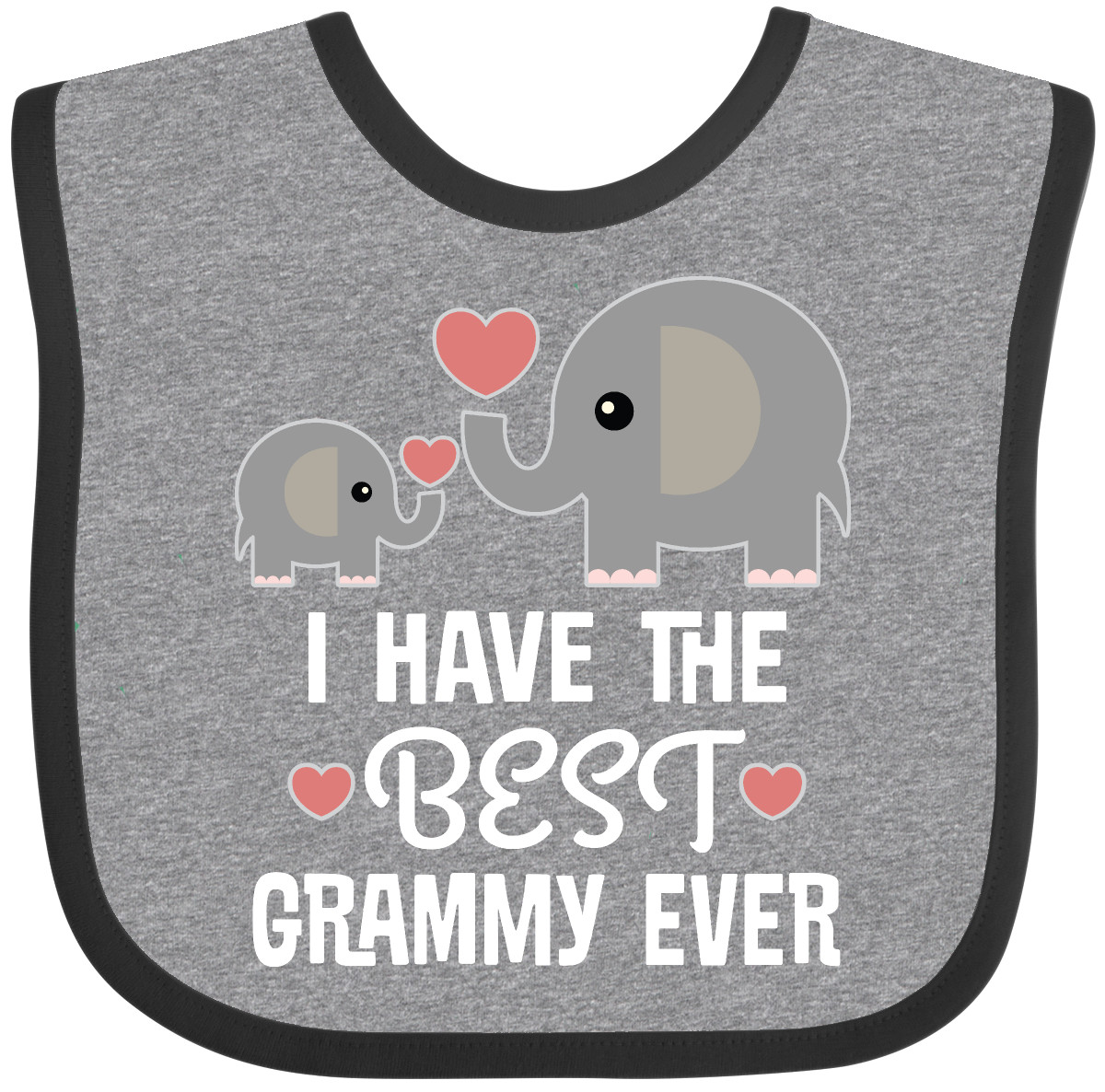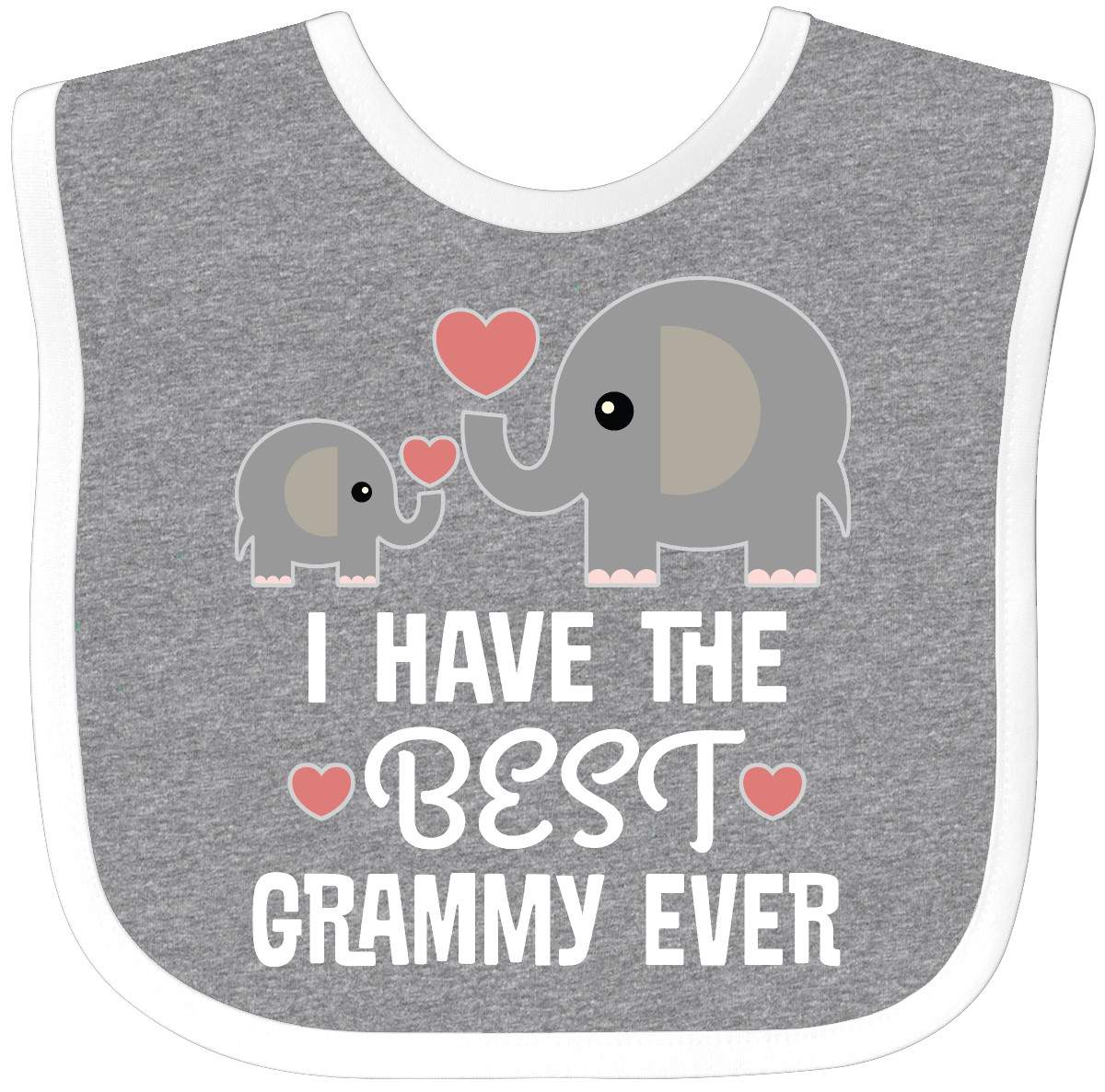 Cute grandkids Baby Bib with slogan that says I have the best Grammy ever and a design of elephant and heart, perfect for a grandson or granddaughter from their grandmother. Our Baby Bib is rated high in convenience and durability and with a variety of fashionable colors, your baby can be trendy. Mix and match to any outfit. 100% cotton ring spun combed heather colors are cotton-poly. Width 7.75", Length 11.75" Baby Bib. Our eBay Store Grandkids Best Grammy Ever Baby Bib Heather and White One Size 14.99 Cute grandkids Baby Bib with slogan that says I have the best Grammy ever and a design of elephant and heart, perfect for a grandson or granddaughter from their grandmother. Our Baby Bib is rated high in convenience and durability and with a variety of fashionable colors, your baby can be trendy. Mix and match to any outfit. 100% cotton ring spun combed heather colors are cotton-poly. Width 7.75", Length 11.75" Baby Bib. Our bibs are combed ring-spun cotton. Reinforced with a hook and loop closure. Created with only the finest and softest of materials that allow the little one to stay clean and comfortable. Printed with the best direct to garment printing technology using only ECO-FRIENDLY ink, creating a safe and comfortable bib. Our bibs are heat cured so the bibs are able to be washed countless of times and not show any fading, cracking, or loss of color. Inktastic, is a family owned business who prints all products in the USA with pride and integrity ensuring the best customer experience from start to finish.