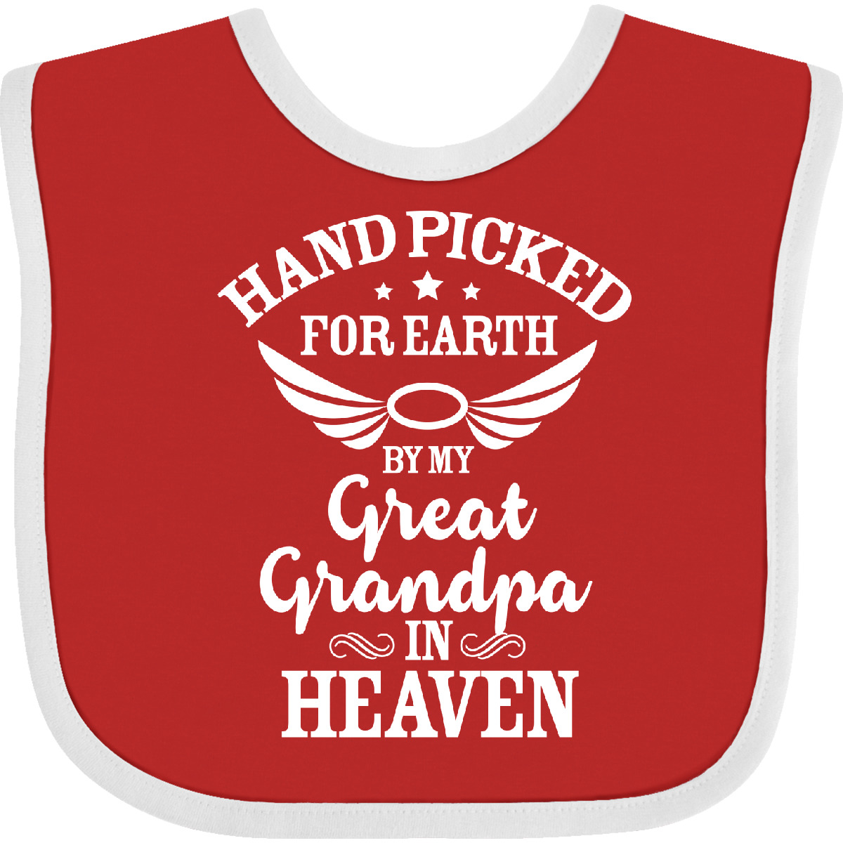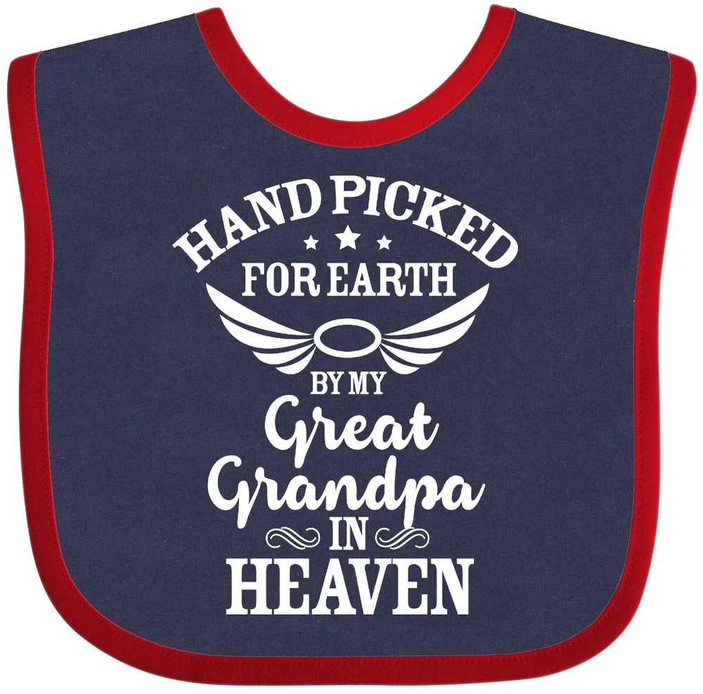 Handpicked for Earth By My Great Grandpa in Heaven with Angel Wings Baby Bib. Makes an adorable and touching baby shower gift for the mom-to-be! Our Baby Bib is rated high in convenience and durability and with a variety of fashionable colors, your baby can be trendy. Mix and match to any outfit. 100% cotton ring spun combed heather colors are cotton-poly. Width 7.75", Length 11.75" Baby Bib. Our eBay Store Handpicked for Earth by My Great Grandpa in Heaven Baby Bib Pink One Size 14.99 Handpicked for Earth By My Great Grandpa in Heaven with Angel Wings Baby Bib. Makes an adorable and touching baby shower gift for the mom-to-be! Our Baby Bib is rated high in convenience and durability and with a variety of fashionable colors, your baby can be trendy. Mix and match to any outfit. 100% cotton ring spun combed heather colors are cotton-poly. Width 7.75", Length 11.75" Baby Bib. Perfect for newborn photos or pregnancy announcements! Makes an adorable and touching baby shower gift for the mom-to-be! Handpicked for Earth By My Great Grandpa in Heaven with Angel Wings Baby Bib. Our bibs are combed ring-spun cotton. Reinforced with a hook and loop closure. Created with only the finest and softest of materials that allow the little one to stay clean and comfortable. Printed with the best direct to garment printing technology using only ECO-FRIENDLY ink, creating a safe and comfortable bib.
