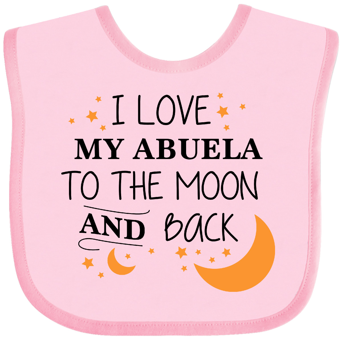 I Love My Abuela To The Moon and Back Baby Bib are a great way to show your unwavering love for your family member! Our Baby Bib is rated high in convenience and durability and with a variety of fashionable colors, your baby can be trendy. Mix and match to any outfit. 100% cotton ring spun combed heather colors are cotton-poly. Width 7.75", Length 11.75" Baby Bib. Our eBay Store I Love My Abuela To The Moon and Back Baby Bib Heather and Black One Size 14.99 I Love My Abuela To The Moon and Back Baby Bib are a great way to show your unwavering love for your family member! Our Baby Bib is rated high in convenience and durability and with a variety of fashionable colors, your baby can be trendy. Mix and match to any outfit. 100% cotton ring spun combed heather colors are cotton-poly. Width 7.75", Length 11.75" Baby Bib. Our bibs are combed ring-spun cotton. Reinforced with a hook and loop closure. Created with only the finest and softest of materials that allow the little one to stay clean and comfortable. Printed with the best direct to garment printing technology using only ECO-FRIENDLY ink, creating a safe and comfortable bib. Our bibs are heat cured so the bibs are able to be washed countless of times and not show any fading, cracking, or loss of color. Inktastic, is a family owned business who prints all products in the USA with pride and integrity ensuring the best customer experience from start to finish.
