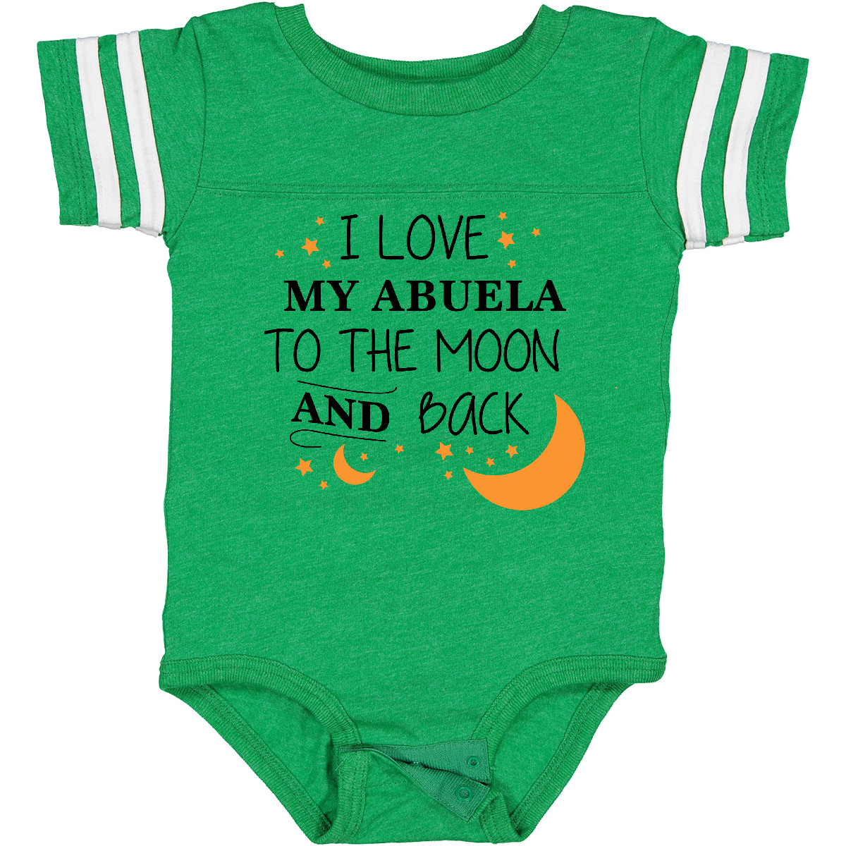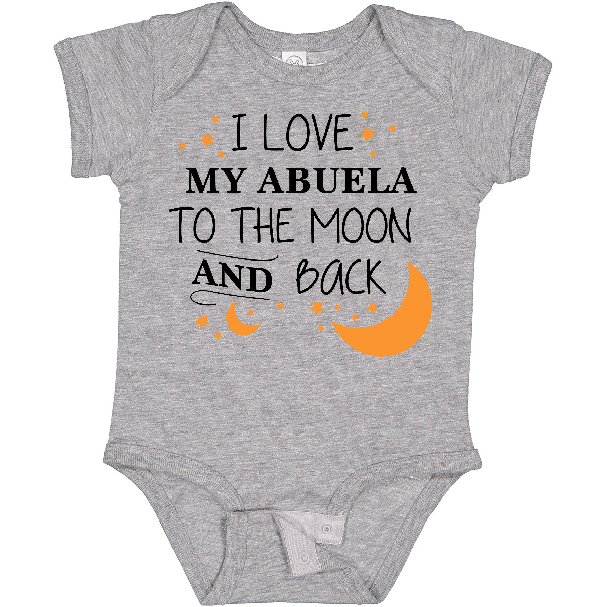 I Love My Abuela To The Moon and Back Baby Bodysuit are a great way to show your unwavering love for your family member! Our one piece baby bodysuit make great gift for newborns, babies, infants, baby showers and expectant moms. An ideal gift for any new parent who will want one in every color. Baby Bodysuit. Our eBay Store I Love My Abuela to the Moon and Back Baby Bodysuit 0020 White Newborn 13.99 I Love My Abuela To The Moon and Back Baby Bodysuit are a great way to show your unwavering love for your family member! Our one piece baby bodysuit make great gift for newborns, babies, infants, baby showers and expectant moms. An ideal gift for any new parent who will want one in every color. Baby Bodysuit. Our one piece baby bodysuit makes a unique clothing gift for newborns, babies, infants, baby showers and expectant moms. Quick & easy diaper changing with reinforced three-snap closure. Solid colors are 100% cotton, other are cotton/polyester or cotton/polyester/viscose Blend. Clothes printed In the USA.