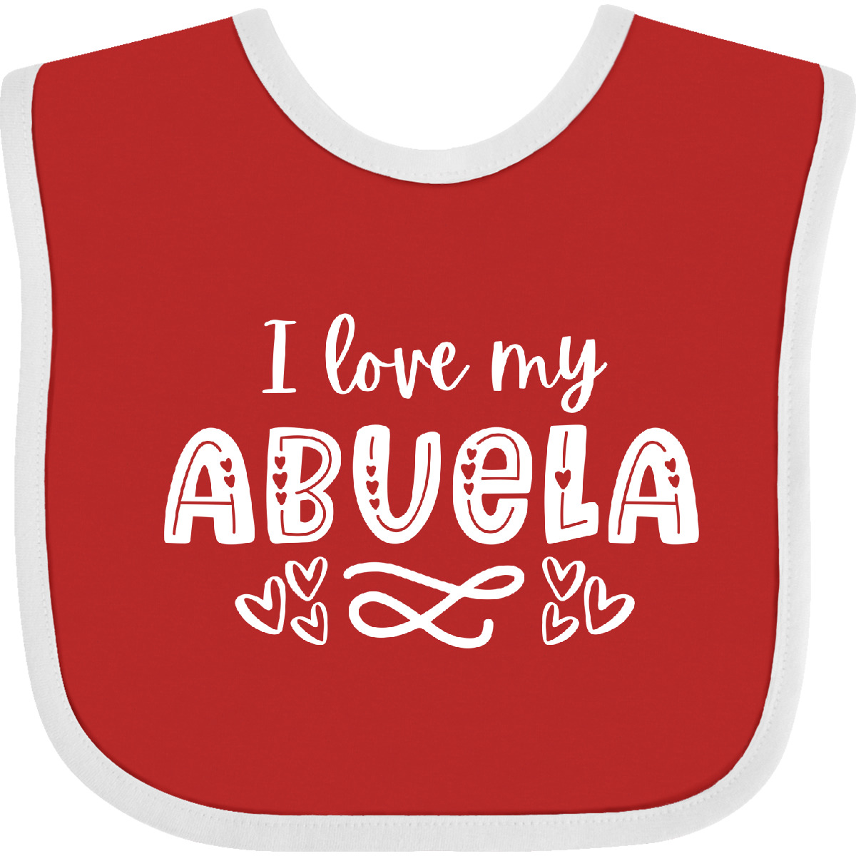 Show Abuela some love in these, I Love My Abuela Baby Bib. Our Baby Bib is rated high in convenience and durability and with a variety of fashionable colors, your baby can be trendy. Mix and match to any outfit. 100% cotton ring spun combed heather colors are cotton-poly. Width 7.75", Length 11.75" Baby Bib. Our eBay Store I Love My Abuela with Hearts Baby Bib Red One Size 15.99 Show Abuela some love in these, I Love My Abuela Baby Bib. Our Baby Bib is rated high in convenience and durability and with a variety of fashionable colors, your baby can be trendy. Mix and match to any outfit. 100% cotton ring spun combed heather colors are cotton-poly. Width 7.75", Length 11.75" Baby Bib. Perfect baby shower gift for baby girl from Abuela. Makes a cute child birthday gift for a nieta from Abuela. Show Abuela some love in these, I Love My Abuela Baby Bib with hearts. Our bibs are combed ring-spun cotton. Reinforced with a hook and loop closure. Created with only the finest and softest of materials that allow the little one to stay clean and comfortable. Printed with the best printing technology using only ECO-FRIENDLY ink, creating a safe and comfortable bib.