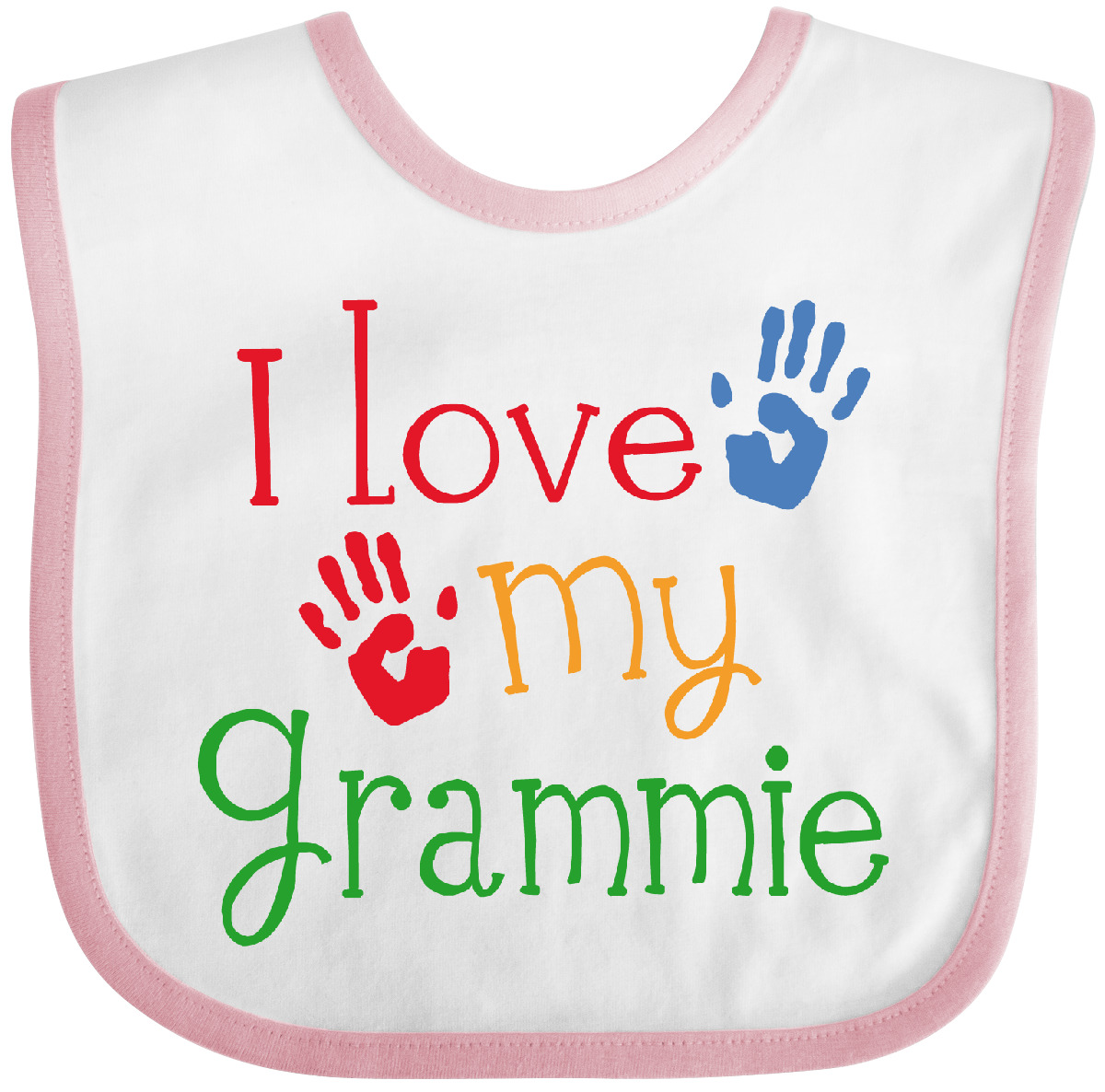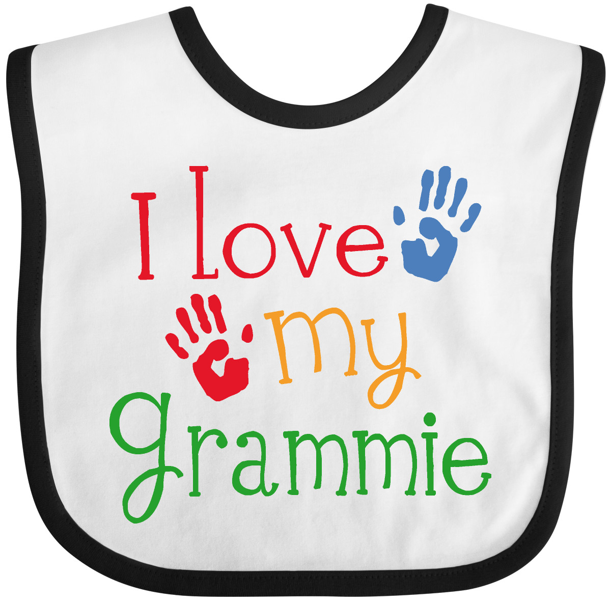 Cute design for grandkids has I Love My Grammie quote on this Baby Bib with fun handprint logo. Our Baby Bib is rated high in convenience and durability and with a variety of fashionable colors, your baby can be trendy. Mix and match to any outfit. 100% cotton ring spun combed heather colors are cotton-poly. Width 7.75", Length 11.75" Baby Bib. Our eBay Store I Love My Grammie Baby Bib White and Navy One Size 14.99 Cute design for grandkids has I Love My Grammie quote on this Baby Bib with fun handprint logo. Our Baby Bib is rated high in convenience and durability and with a variety of fashionable colors, your baby can be trendy. Mix and match to any outfit. 100% cotton ring spun combed heather colors are cotton-poly. Width 7.75", Length 11.75" Baby Bib. Our bibs are combed ring-spun cotton. Reinforced with a hook and loop closure. Created with only the finest and softest of materials that allow the little one to stay clean and comfortable. Printed with the best printing technology using only ECO-FRIENDLY ink, creating a safe and comfortable bib. Our bibs are heat cured so the bibs are able to be washed countless of times and not show any fading, cracking, or loss of color. Inktastic is a family owned business who prints all products in the USA with pride and integrity ensuring the best customer experience from start to finish.