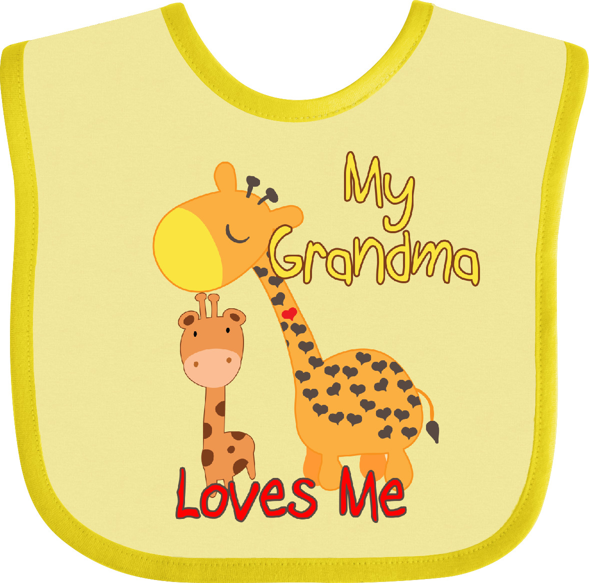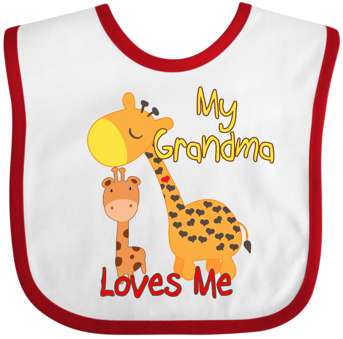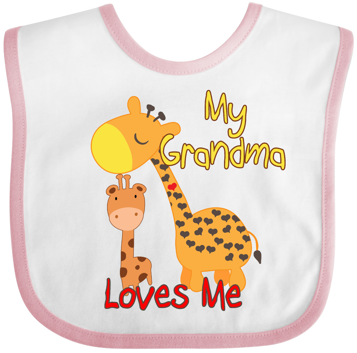 My Grandma Loves Me - A cute little giraffe stands next to grandma giraffe who is filled with hearts. Adorable gift for your favorite grandchild! Our Baby Bib is rated high in convenience and durability and with a variety of fashionable colors, your baby can be trendy. Mix and match to any outfit. 100% cotton ring spun combed heather colors are cotton-poly. Width 7.75", Length 11.75" Baby Bib. Our eBay Store My Grandma Loves Me Giraffe Baby Bib White One Size 13.99 My Grandma Loves Me - A cute little giraffe stands next to grandma giraffe who is filled with hearts. Adorable gift for your favorite grandchild! Our Baby Bib is rated high in convenience and durability and with a variety of fashionable colors, your baby can be trendy. Mix and match to any outfit. 100% cotton ring spun combed heather colors are cotton-poly. Width 7.75", Length 11.75" Baby Bib. My Grandma Loves Me - A cute little giraffe stands next to grandma giraffe who is filled with hearts. Adorable gift for your favorite grandchild! Our bibs are combed ring-spun cotton. Reinforced with a hook and loop closure. Created with only the finest and softest of materials that allow the little one to stay clean and comfortable. Printed with the best direct to garment printing technology using only ECO-FRIENDLY ink, creating a safe and comfortable bib. Our bibs are heat cured so the bibs are able to be washed countless of times and not show any fading, cracking, or loss of color. Inktastic, is a family owned business who prints all products in the USA with pride and integrity ensuring the best customer experience from start to finish.