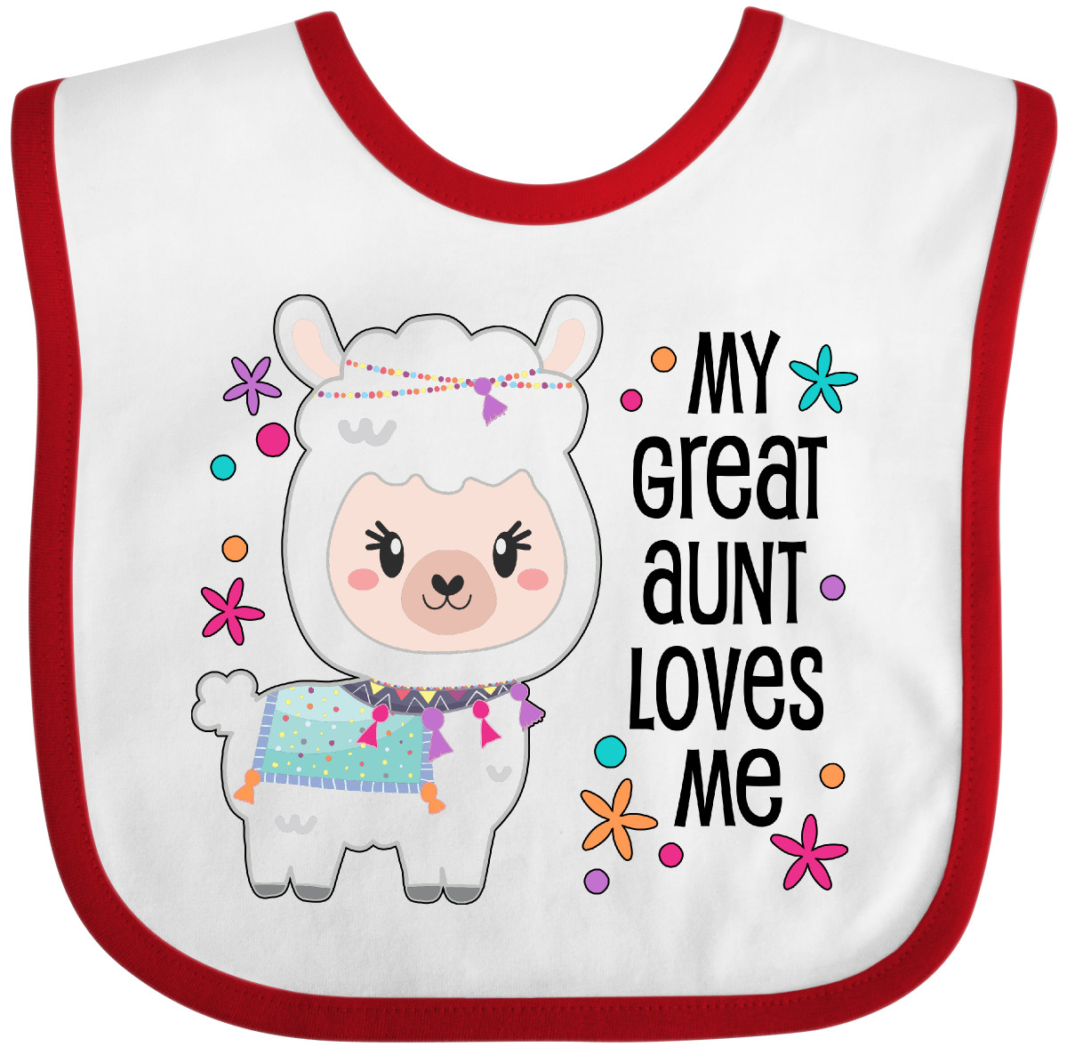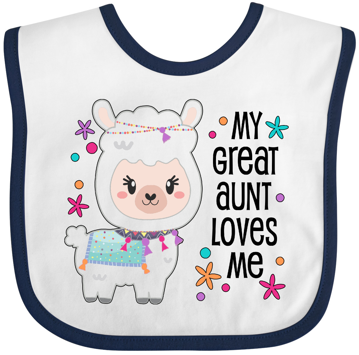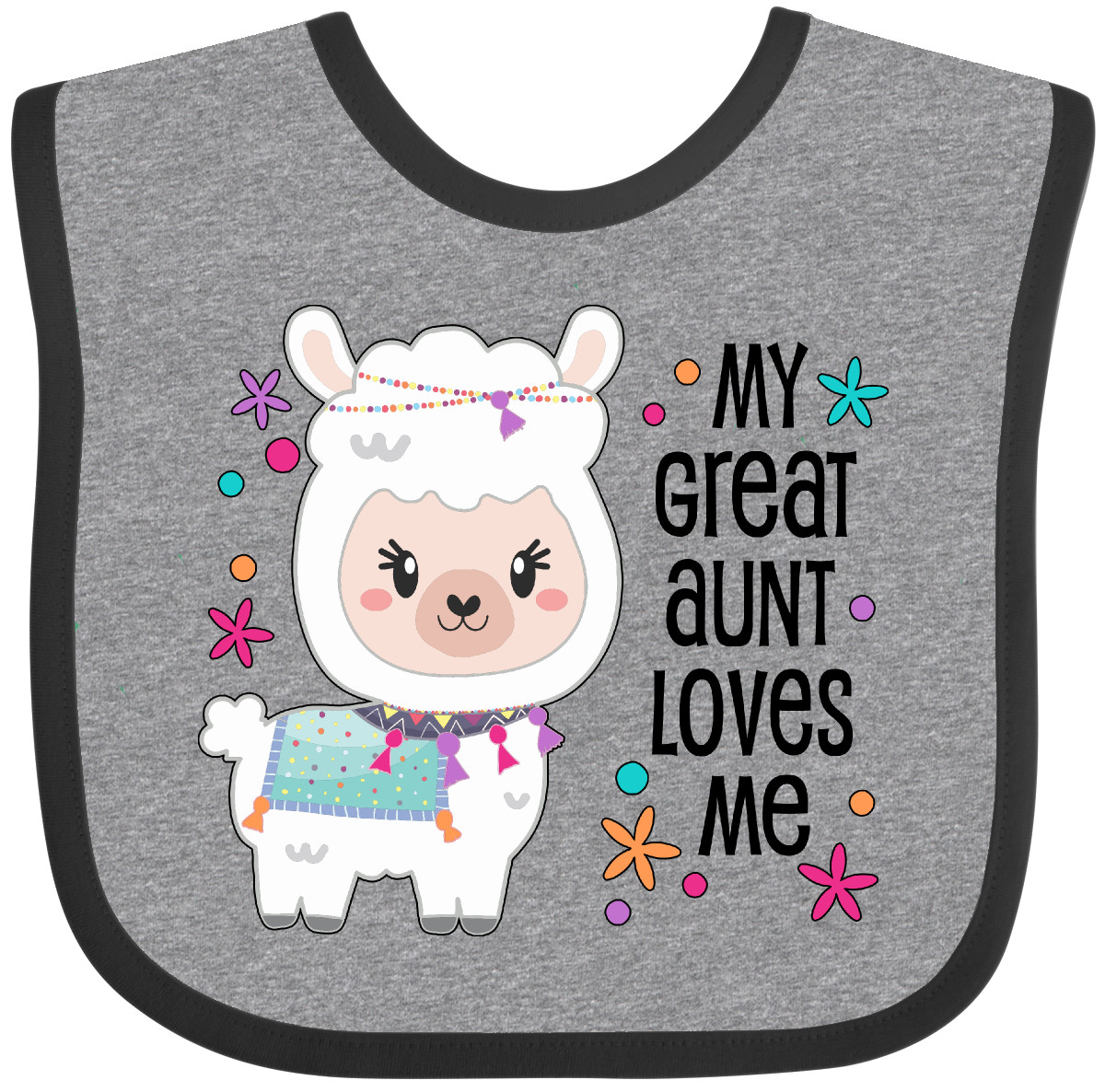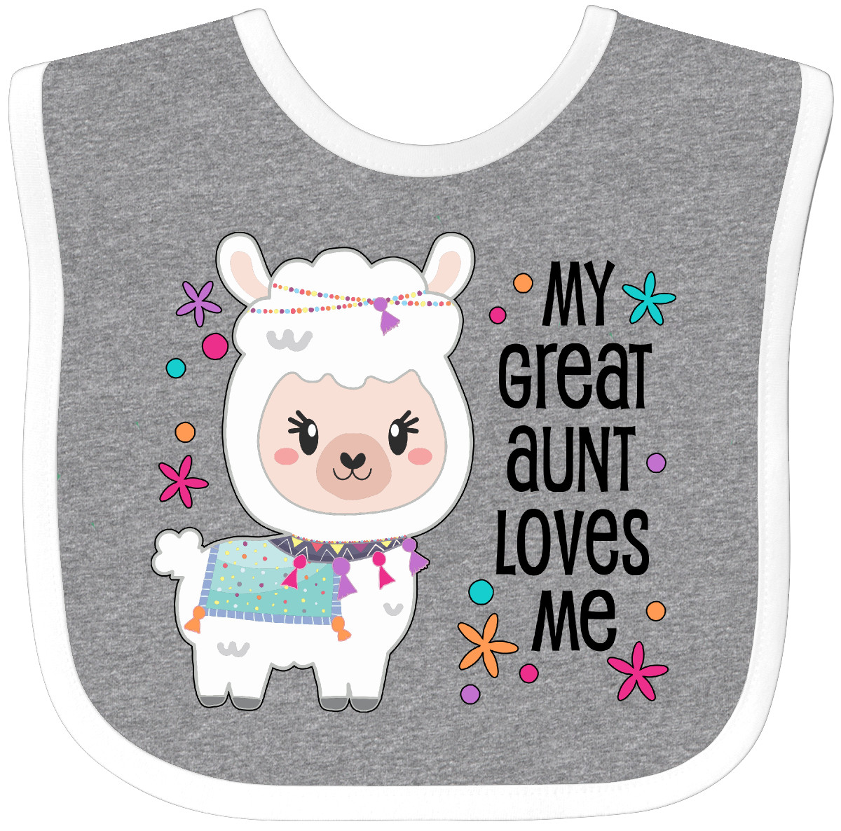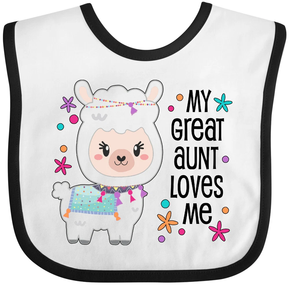 My Great Aunt Loves Me- cute and happy llama Baby Bib. Any child would love to celebrate with this adorable fluffy llama. Our Baby Bib is rated high in convenience and durability and with a variety of fashionable colors, your baby can be trendy. Mix and match to any outfit. 100% cotton ring spun combed heather colors are cotton-poly. Width 7.75", Length 11.75" Baby Bib. Our eBay Store My Great Aunt Loves Me- Cute and Happy Llama Baby Bib Heather and White One Size 14.99 My Great Aunt Loves Me- cute and happy llama Baby Bib. Any child would love to celebrate with this adorable fluffy llama. Our Baby Bib is rated high in convenience and durability and with a variety of fashionable colors, your baby can be trendy. Mix and match to any outfit. 100% cotton ring spun combed heather colors are cotton-poly. Width 7.75", Length 11.75" Baby Bib. Perfect for Cinco de Mayo. My Great Aunt Loves Me- cute and happy llama Baby Bib. Great gift for any grand niece or grand nephew. Our bibs are combed ring-spun cotton. Reinforced with a hook and loop closure. Created with only the finest and softest of materials that allow the little one to stay clean and comfortable. Printed with the best direct to garment printing technology using only ECO-FRIENDLY ink, creating a safe and comfortable bib. Our bibs are heat cured so the bibs are able to be washed countless of times and not show any fading, cracking, or loss of color.