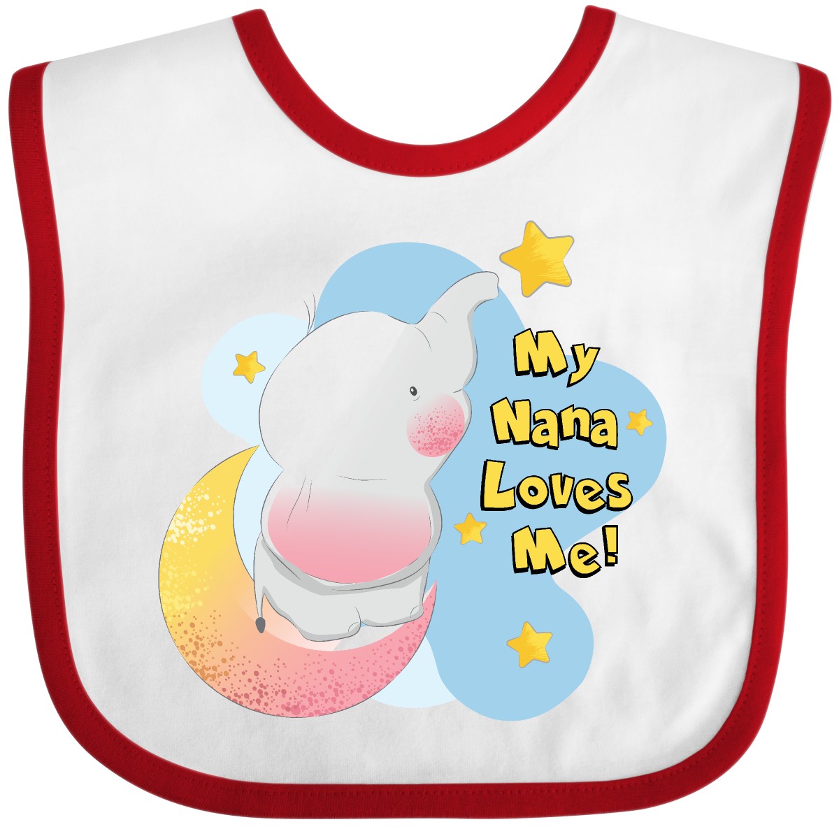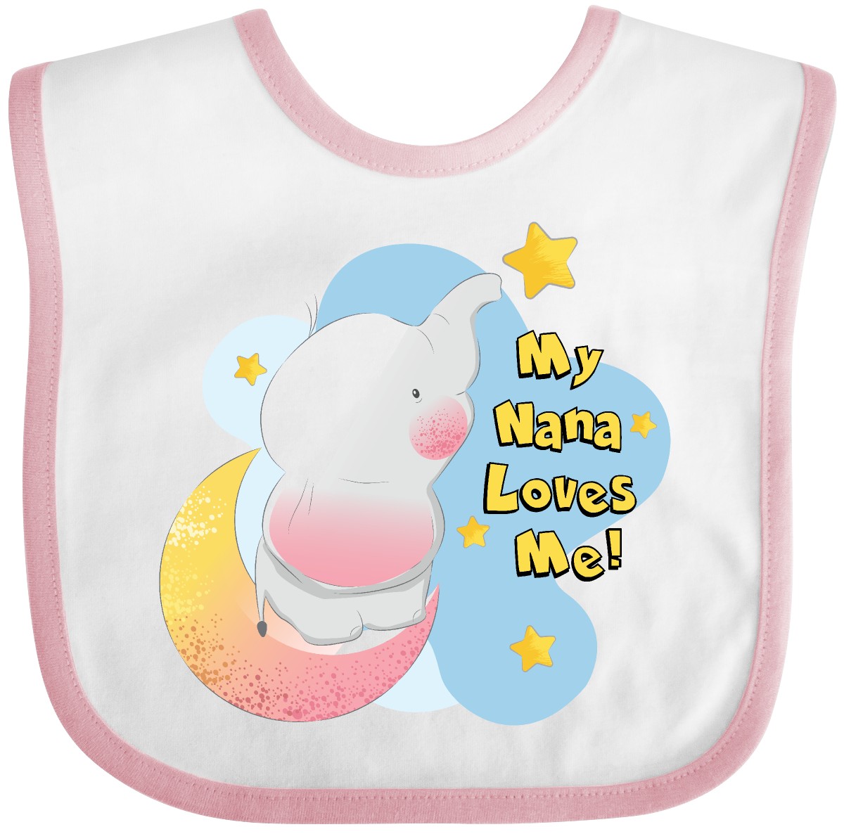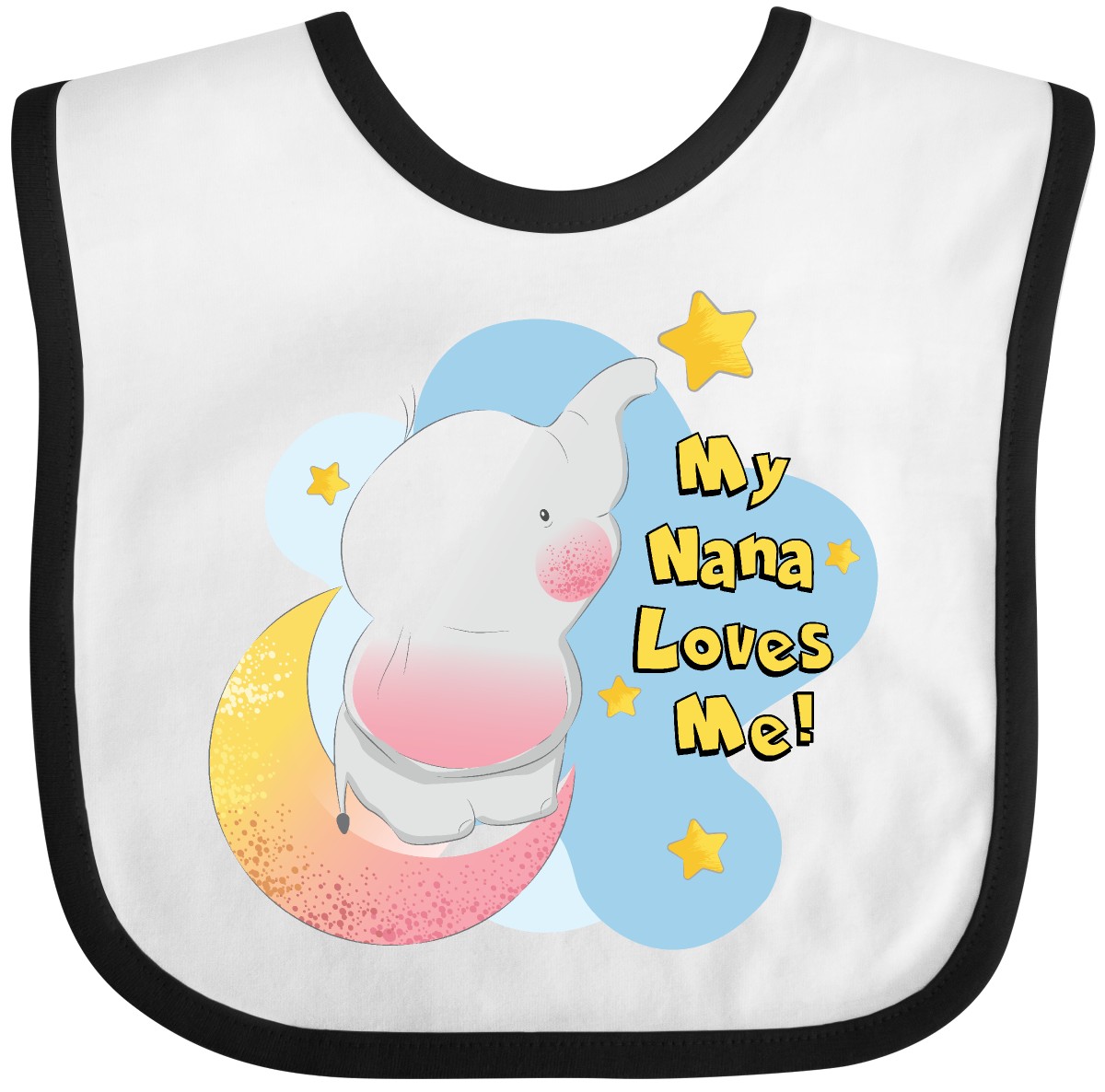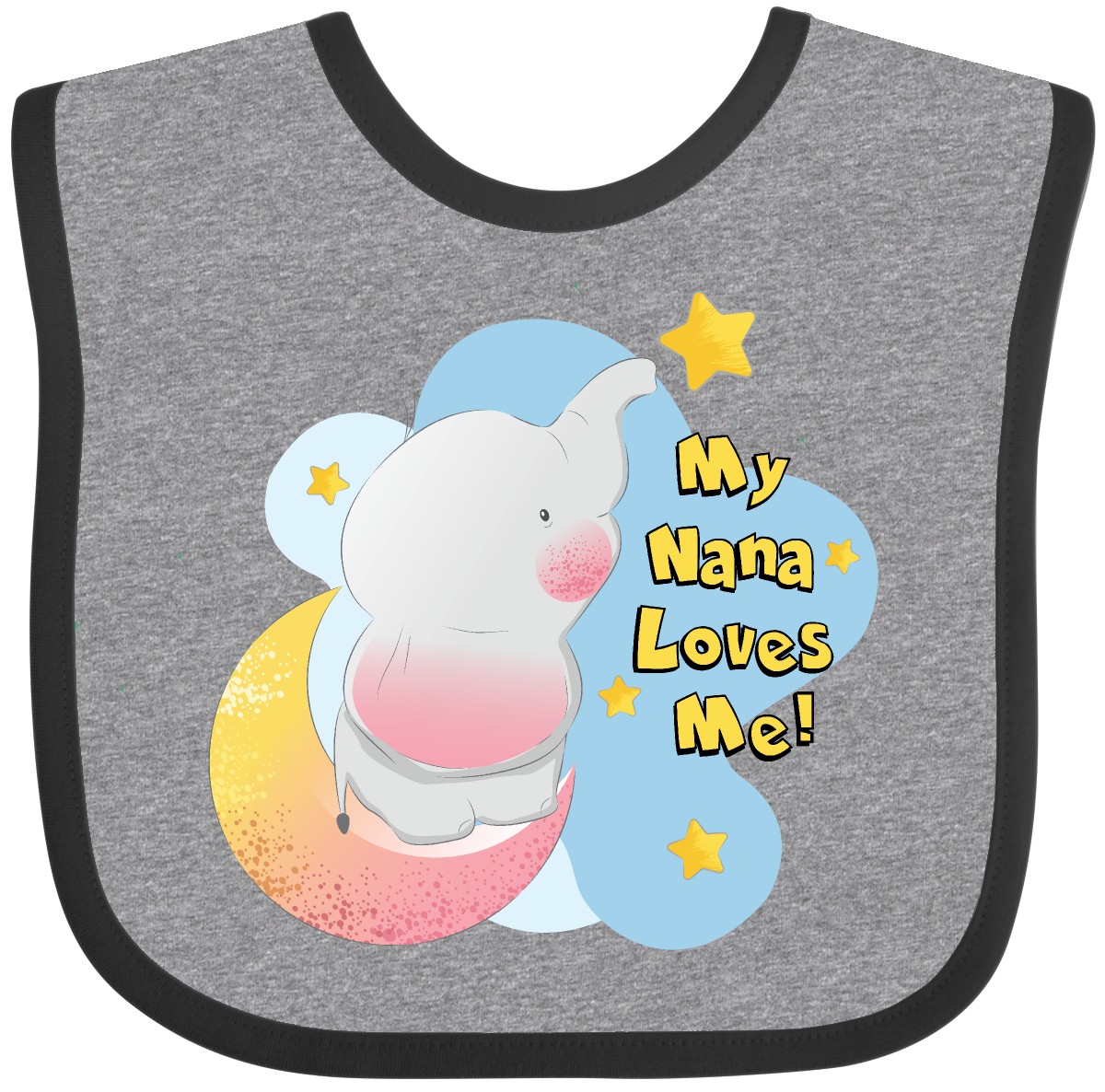 My Nana Loves Me! A cute baby elephant reaches for the stars with its trunk as it sits on a crescent moon. Cute gift for any grandchild from nana! Our Baby Bib is rated high in convenience and durability and with a variety of fashionable colors, your baby can be trendy. Mix and match to any outfit. 100% cotton ring spun combed heather colors are cotton-poly. Width 7.75", Length 11.75" Baby Bib. Our eBay Store My Nana Loves Me Baby Bib Heather and Black One Size 14.99 My Nana Loves Me! A cute baby elephant reaches for the stars with its trunk as it sits on a crescent moon. Cute gift for any grandchild from nana! Our Baby Bib is rated high in convenience and durability and with a variety of fashionable colors, your baby can be trendy. Mix and match to any outfit. 100% cotton ring spun combed heather colors are cotton-poly. Width 7.75", Length 11.75" Baby Bib. Our bibs are combed ring-spun cotton. Reinforced with a hook and loop closure. Created with only the finest and softest of materials that allow the little one to stay clean and comfortable. Printed with the best direct to garment printing technology using only ECO-FRIENDLY ink, creating a safe and comfortable bib. Our bibs are heat cured so the bibs are able to be washed countless of times and not show any fading, cracking, or loss of color. Inktastic, is a family owned business who prints all products in the USA with pride and integrity ensuring the best customer experience from start to finish.