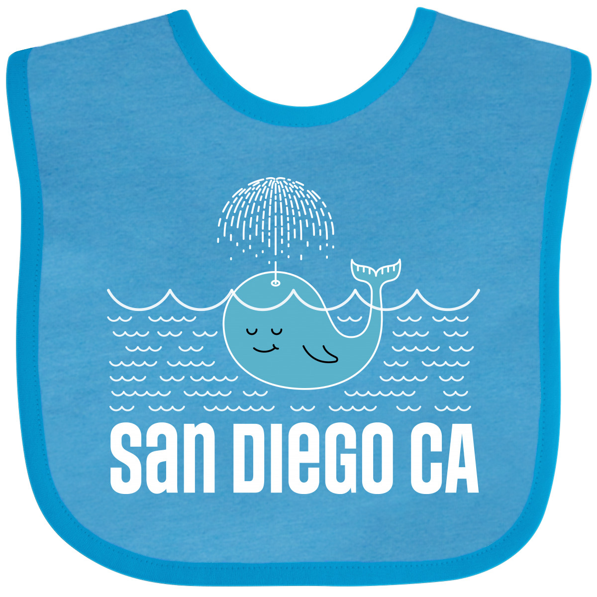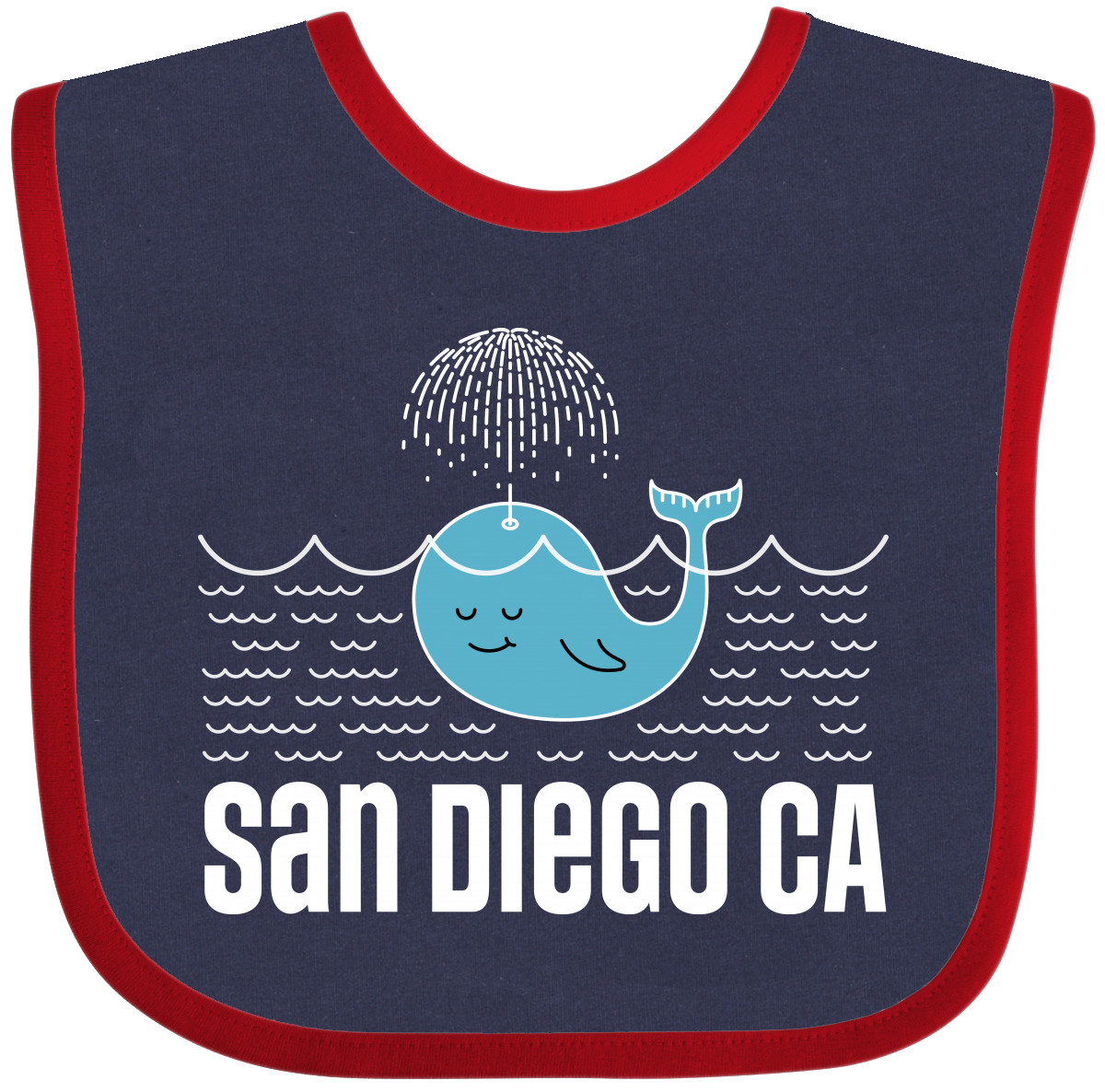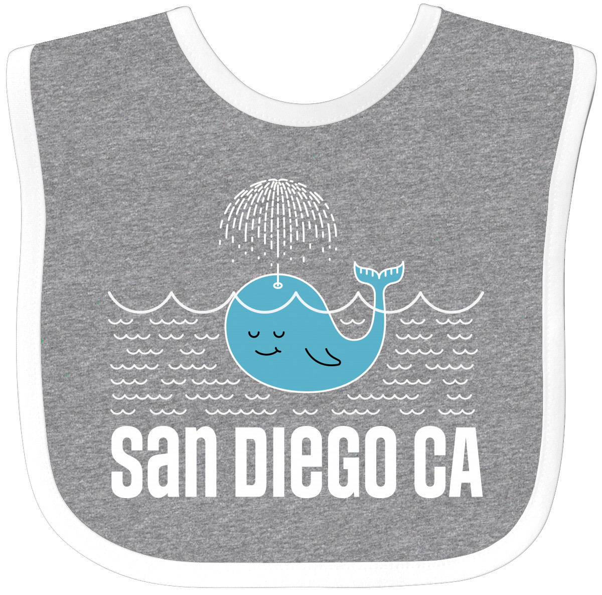 San Diego California travel Baby Bib with cute whale watching design that makes a fun vacation souvenir. Our Baby Bib is rated high in convenience and durability and with a variety of fashionable colors, your baby can be trendy. Mix and match to any outfit. 100% cotton ring spun combed heather colors are cotton-poly. Width 7.75", Length 11.75" Baby Bib. Our eBay Store San Diego California Whale Baby Bib Heather and White One Size 14.99 San Diego California travel Baby Bib with cute whale watching design that makes a fun vacation souvenir. Our Baby Bib is rated high in convenience and durability and with a variety of fashionable colors, your baby can be trendy. Mix and match to any outfit. 100% cotton ring spun combed heather colors are cotton-poly. Width 7.75", Length 11.75" Baby Bib. San Diego California whale Baby Bib souvenir travel vacation apparel Our bibs are combed ring-spun cotton. Reinforced with a hook and loop closure. Created with only the finest and softest of materials that allow the little one to stay clean and comfortable. Printed with the best direct to garment printing technology using only ECO-FRIENDLY ink, creating a safe and comfortable bib. The bibs are heat cured so the bibs are able to be washed countless of times and not show any fading, cracking, or loss of color. Inktastic, is a family owned business who prints all products in the USA with pride and integrity ensuring the best customer experience from start to finish.