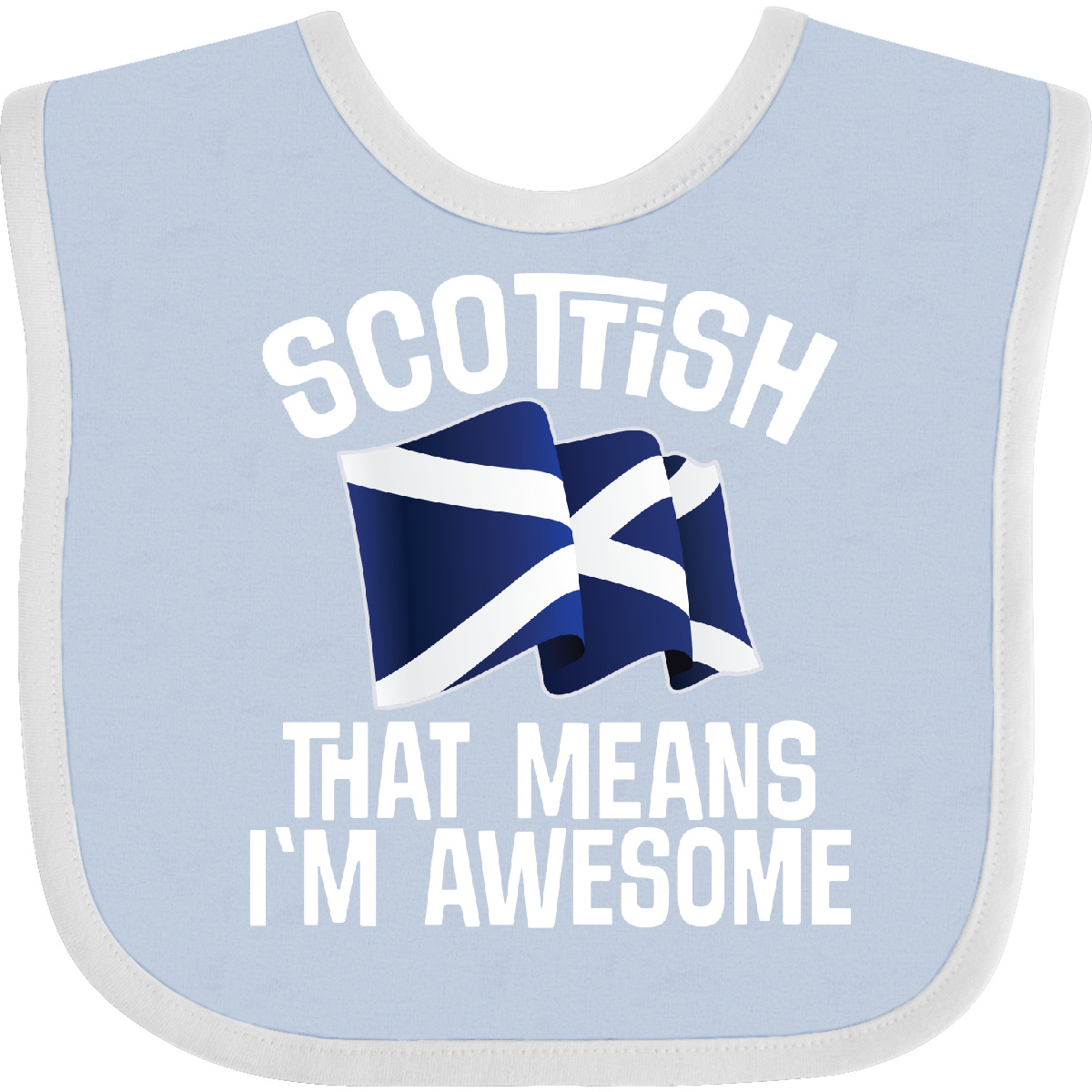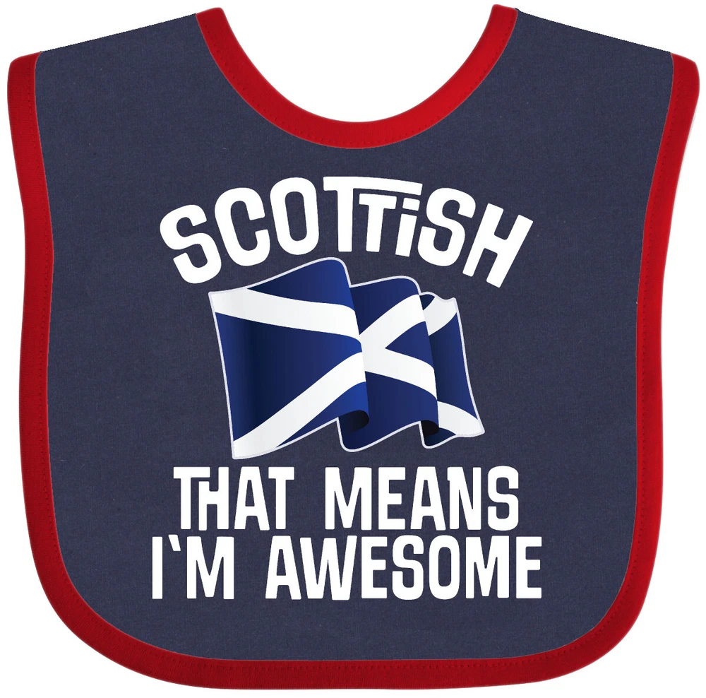 Funny Scottish flag design for someone from Scotland comes on a Baby Bib with quote that says Scottish that means I'm awesome Our Baby Bib is rated high in convenience and durability and with a variety of fashionable colors, your baby can be trendy. Mix and match to any outfit. 100% cotton ring spun combed heather colors are cotton-poly. Width 7.75", Length 11.75" Baby Bib. Our eBay Store Scottish Pride Scotland Flag Baby Bib Heather and White One Size 14.99 Funny Scottish flag design for someone from Scotland comes on a Baby Bib with quote that says Scottish that means I'm awesome Our Baby Bib is rated high in convenience and durability and with a variety of fashionable colors, your baby can be trendy. Mix and match to any outfit. 100% cotton ring spun combed heather colors are cotton-poly. Width 7.75", Length 11.75" Baby Bib. Scottish that means I'm awesome Baby Bib with Scotland flag for showing pride in your ancestry or country Our bibs are combed ring-spun cotton. Reinforced with a hook and loop closure. Created with only the finest and softest of materials that allow the little one to stay clean and comfortable. Printed with the best direct to garment printing technology using only ECO-FRIENDLY ink, creating a safe and comfortable bib. Our bibs are heat cured so the bibs are able to be washed countless of times and not show any fading, cracking, or loss of color. Inktastic, is a family owned business who prints all products in the USA with pride and integrity ensuring the best customer experience from start to finish.