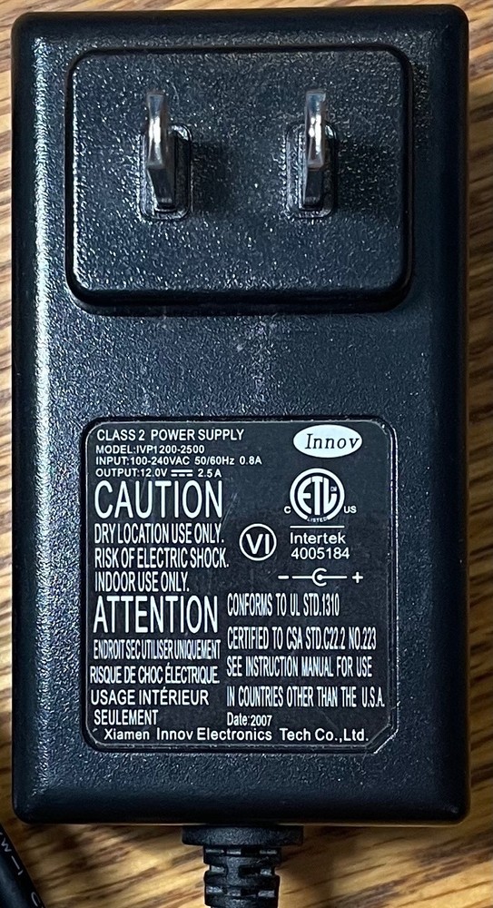 SILENT AUCTION CHARITY EVENT! THIS ITEM WAS DONATED BY AN ANONYMOUS DONOR!!! This is an Innov Class 2 Power Supply, model IVP1200-2500. It is a switching power adapter commonly used for various household electronics. Key specifications from the unit include: Input: 100–240V AC, 50/60Hz, 0.8A Output: 12.0V DC, 2.5A Polarity: Center positive (++) Replacement Options While specific "Innov" branded replacements can sometimes be found on secondary markets like eBay, you can use any universal AC/DC adapter that matches these critical specs: Voltage: Must be exactly 12V DC. Amperage: Must be 2.5A or higher (a 3A adapter will work safely, but a 1A adapter will not). Connector: Most units like this use a standard 5.5mm x 2.1mm barrel plug, though you should verify the fit with your specific device. WE ALWAYS ISSUE COMBINED SHIPPING DISCOUNTS ON MULTIPLE AUCTION PURCHASES!!! SURPRISE!!! 3 FREE BONUS GIFTS ARE INCLUDED WITH THIS AUCTION JUST FOR YOU! COMPLIMENTS OF THE "UNITED CHILDREN'S HOSPITALS OF AMERICA" : A 2 Night Stay in Fabulous Las Vegas or Magical Orlando (YOUR CHOICE) A $100 Dining Advantage Gift Card Plus An Additional Bonus 2 Night Stay (AT YOUR CHOICE OF 30 DIFFERENT LOCATIONS) The additional bonus 2 night stay destination choices include: Atlantic City, NJ Anaheim, CA Asheville, NC Austin, TX Bahamas Branson, MO Cancun, MX Cape Cod Area, MA Destin, FL Daytona Beach, FL Denver, CO Galveston, TX Jamaica Las Vegas, NV Lake Tahoe Area, CA Los Cabos, MX Miami, FL Myrtle Beach, SC New Orleans, LA Oahu, HI Orlando, FL Palm Springs, CA Reno, NV San Juan, PR San Diego, CA San Francisco, CA Scottsdale, AZ Smoky Mountains, TN Virginia Beach, VA Williamsburg, VA The additional bonus trip has an OPTIONAL time share pitch. You do not have to do it. Here are the conditions. The additional bonus trip has an OPTIONAL time share pitch. You do not have to do it. Here are the conditions. Valid for two adults over 21 years of age only. 30 days advanced scheduling required for reservations. Dates are subject to availability. Valid for Sunday through Thursday nights (Friday & Saturday nights may be available for a surcharge.) Transportation, incidentals, and daily resort fees not included. One voucher per household. No cash value. Group travel is strictly prohibited. Group travel is defined as multiple certificates being used by groups and/or related parties for concurrent or consecutive stays. Valid for two adults over 21 years of age only. 30 days advanced scheduling required for reservations. Dates are subject to availability. Valid for Sunday through Thursday nights (Friday & Saturday nights may be available for a surcharge.) Transportation, incidentals, and daily resort fees not included. One voucher per household. No cash value. Group travel is strictly prohibited. Group travel is defined as multiple certificates being used by groups and/or related parties for concurrent or consecutive stays. Bonus gifts (Dining Advantage Card and Bonus Trip Certificate) are issued at the optional Sharelife Vacations Orientation offered during the initial trip to Las Vegas or Orlando. Bonus gifts (Dining Advantage Card and Bonus Trip Certificate) are issued at the optional Sharelife Vacations Orientation offered during the initial trip to Las Vegas or Orlando. A refundable deposit of $100 is required for booking reservations; the deposit will be refunded in full. A refundable deposit of $100 is required for booking reservations; the deposit will be refunded in full upon completion of both trips. The United Children's Hospitals of America has no affiliation with the provider of these gifts and receive's no compensation or monies whatsoever. MAKING THIS AUCTIONS TOTAL VALUE OVER $330.00!!! We are the United Children’s Hospitals of America, a 501(c)(3) Non-Profit and our goal is to help paying for uncovered children's medical costs, children's prescriptions, and helping with the costly day to day financial burdens and necessities that their families need during one of the most difficult times in their lives.