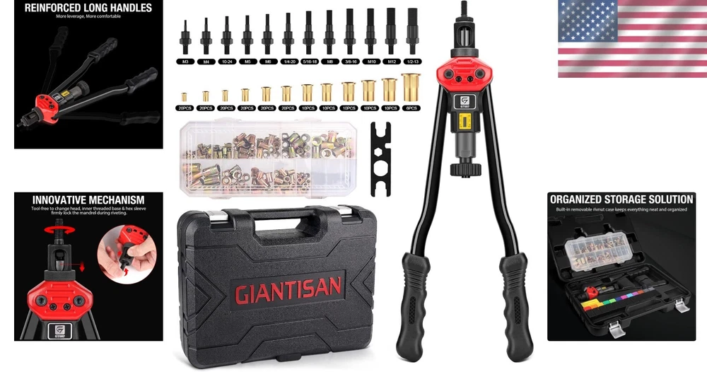 Innovative 16-Inch Rivet Nut Tool with 12 Mandrels & Organized Storage Solution ‹ › ‹ › ‹ › ‹ › ‹ › ‹ › ‹ › ‹ › ‹ › ‹ › ‹ › Innovative 16-Inch Rivet Nut Tool Discover the epitome of precision and functionality with our Innovative 16-Inch Rivet Nut Tool, featuring 12 interchangeable mandrels and an organized storage solution designed for convenience and efficiency. Features: Innovative Mechanism: Enjoy tool-less operation to swiftly change heads. The inner threaded base and hex sleeve securely lock the mandrel during riveting. Strong and Durable: Crafted from thick carbon steel with heat-treated and black phosphating finish to resist corrosion. The robust U cross-section arm enhances reliability and prevents bending. Various Use-Case Scenarios: Perfect for metal plate riveting, bicycle or car attachments, and more. A professional solution for all your riveting needs. Organized Storage Solution: Comes with 12 interchangeable mandrels including M3, M4, M5, M6, M8, M10, M12, 10-24, 1/4-20, 3/8-16, 5/16-18, and 1/2-13 sizes, alongside 176 rivnuts, a spanner, and a rugged carrying case to keep everything seamlessly organized. Premium Service: Your satisfaction is our priority. Reach out with any questions or concerns, and our dedicated team will assist you promptly. Why Choose Our Rivet Nut Tool? Unleash your creativity with a tool that embodies innovative design. The ergonomic approach of our 16-Inch Rivet Nut Tool allows you to save up to 50% more effort compared to standard options, making intricate projects effortless and enjoyable. The combination of durability and versatility ensures that you'll achieve superior results in every endeavor. Step into the future of riveting and redefine your toolkit. Elevate your crafting experience with this must-have tool! Shipping Free & Fast Shipping - We offer free shipping to most of the USA with a normal delivery time of 3-7 days. However, due to the current situation, additional delivery time (up to 3 weeks) may be required for some items. Alternative Carriers - We may use alternative carriers (e.g. USPS, FedEx, UPS, etc.) to ensure your package arrives safely and on time. Due to the use of multiple carriers, we are unable to provide a tracking number automatically. Handling Time - Orders are processed and shipped within 1-2 business days of receiving cleared payment. Shipping Restrictions - Shipping to Alaska, Hawaii, Puerto Rico, Guam, and other US territories may incur shipping charges or delivery restrictions. Please contact us before ordering, or your order can be refunded/cancelled. State Restrictions - There may be restrictions based on your state of purchase. For example, certain items may not be shipped to California due to state regulations. Contact for Tracking Updates - If you require tracking updates or have any concerns about the delivery of your order, please feel free to contact us, and we will be happy to assist you. Return Please see our eBay Return Policy. Thank you. Payment We accept all major credit cards, PayPal, and Apple Pay for your convenience. Your payment information is secure and encrypted to ensure a safe and seamless transaction. Please complete your payment within 3 days of purchase to avoid any delays in shipping. Feedback Your feedback is extremely important to us. We strive to provide the best products and customer service possible. If you are satisfied with your purchase, please take a moment to leave us a positive review. If you have any concerns or issues with your order, please contact us before leaving negative feedback. We are committed to resolving any problems and ensuring your satisfaction. Contact Us If you have any questions or concerns, please feel free to reach out to our customer support team. You can contact us through the eBay messaging system. We are available Monday to Friday, 9:00 am to 5:00 pm EST, and we will do our best to respond to your inquiry within 24 hours. Thank you for supporting our small family business! UPC: Not Set Model: Not Set Item Width: Not Set Item Length: Not Set Item Height: Not Set Item Diameter: 16 Item Weight: 9.83 lb Unit Quantity: 1 Material: Carbon Steel,Plastic,Steel Brand: Unbranded Type: Rivet Nut Tool Number of Pieces: 176 Manufacturer Warranty: Not Set MPN: Not Set Color: Black Country/Region of Manufacture: Not Set Unit Type: lb