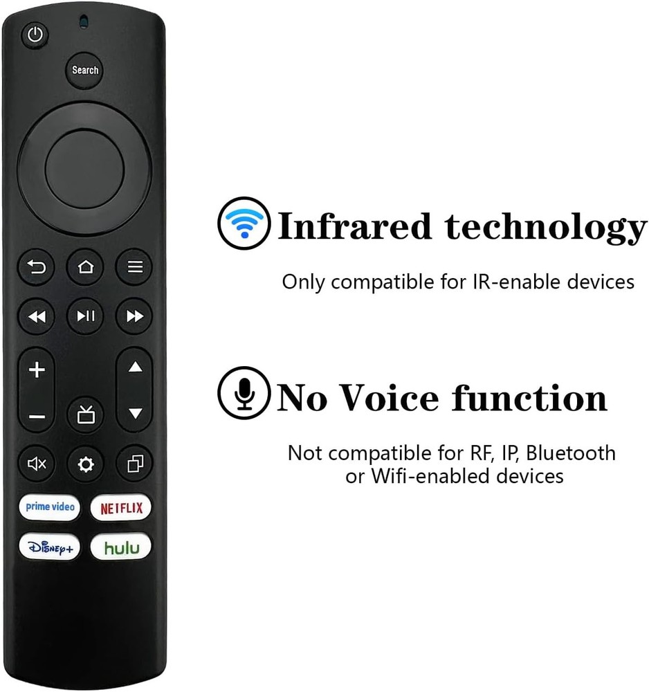 Replacement Remote Control for Insignia, Toshiba, Pioneer Smart TV, Compatible with Fire Series Device (Not for Stick and Cube) Product Details Product Dimensions: 6.25 x 1.51 x 0.71 inches Item Weight: 1.44 ounces Batteries: 2 AAA batteries required. Manufacturer: Luyeper Country of Origin: China Brand: Luyeper Special Feature: Ergonomic Max Number of Supported Devices: 1 Compatible Devices: Television Connectivity Technology: Infrared Applicable: Replacement TV remote control compatible for Insignia, Toshiba, Pioneer, Amz Omni Series, 2-Series, and 4-Series smart TVs with FireOS built-in (no voice function) No Need to Setup: This is an infrared smart TV remote that works out of the box, please do not restore the original factory settings of the TV Quality: This smart TV remote replacement can accurately control distances up to 32 feet, has a maximum response time of 0.2 seconds to the TV, and supports tests with more than 120,000 clicks 4 Shortcut Keys: The replacement TV remote control features 4 shortcuts for popular streaming channels. Remote with shortcut buttons can quickly take you to the app. It makes your life easier Premium After-Sale Service: We offer 30 days after-sale service. If you have any questions about your order, please feel free to contact us directly and we will get back to you within 24 hours