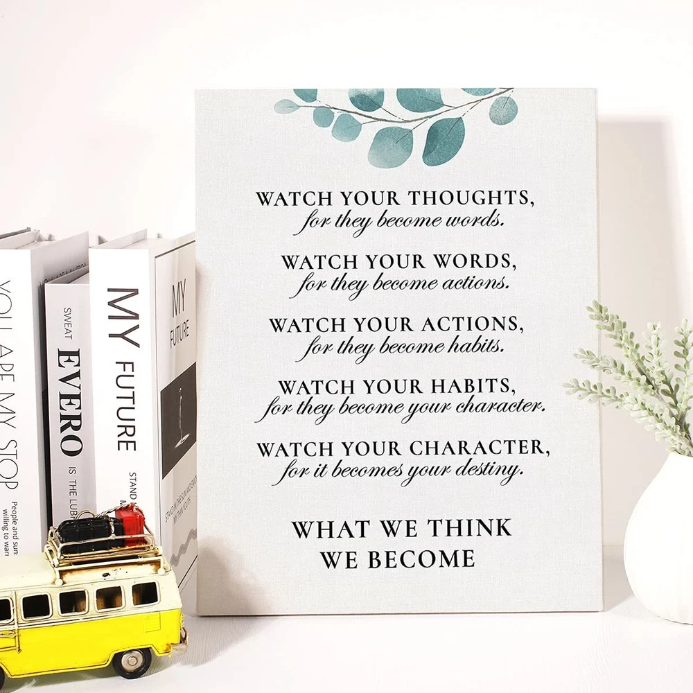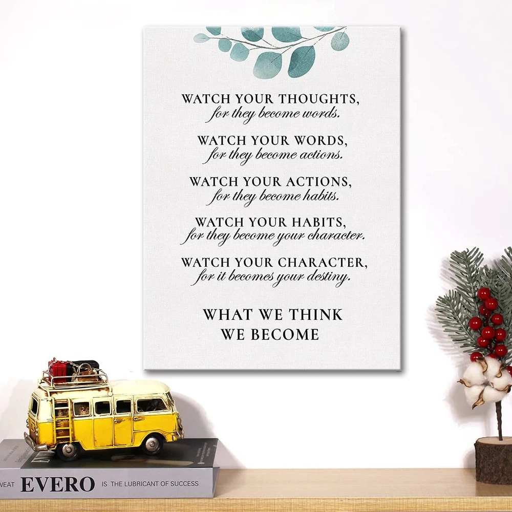 Inspirational Canvas Wall Art Motivational Watch Your Thoughts Quote Canvas P...