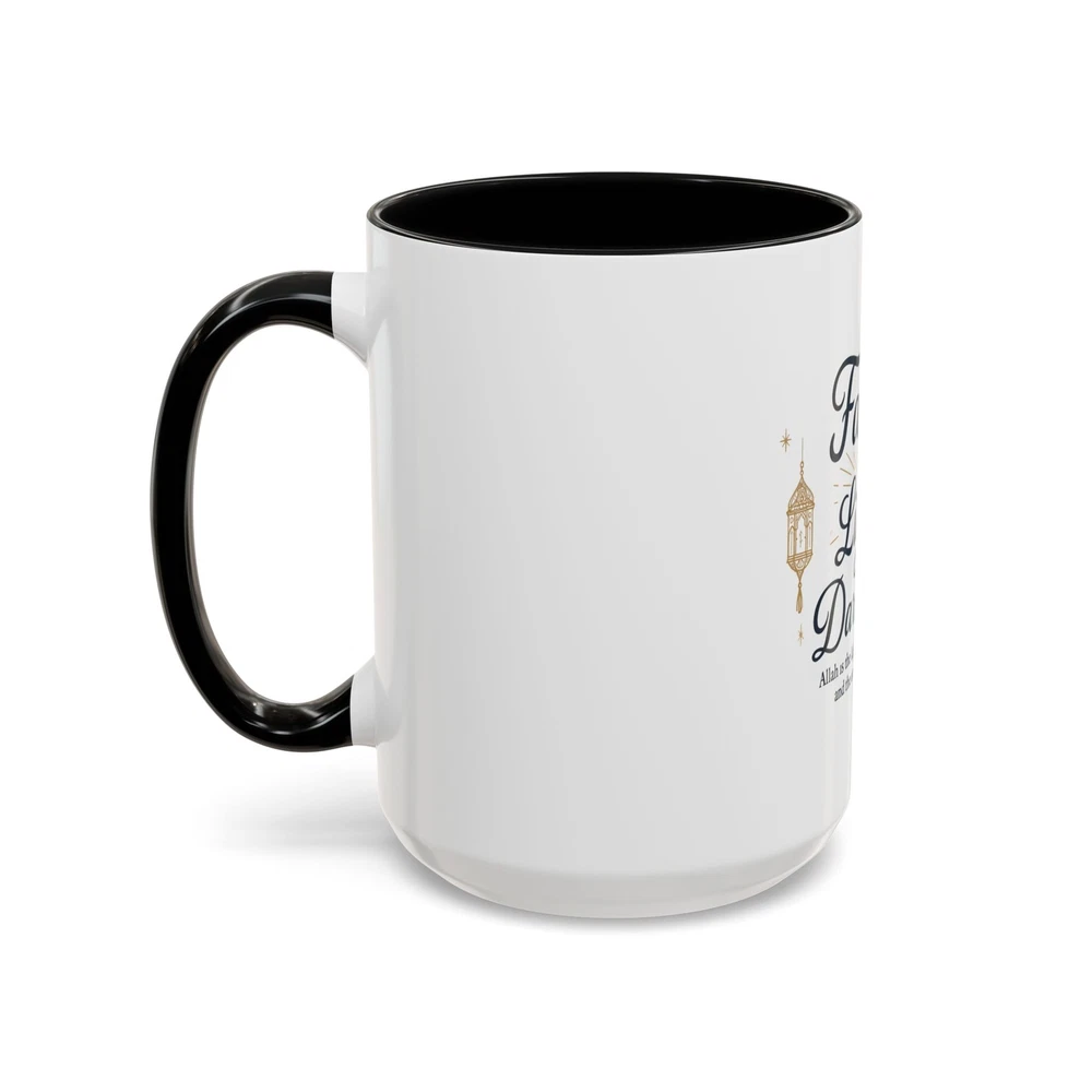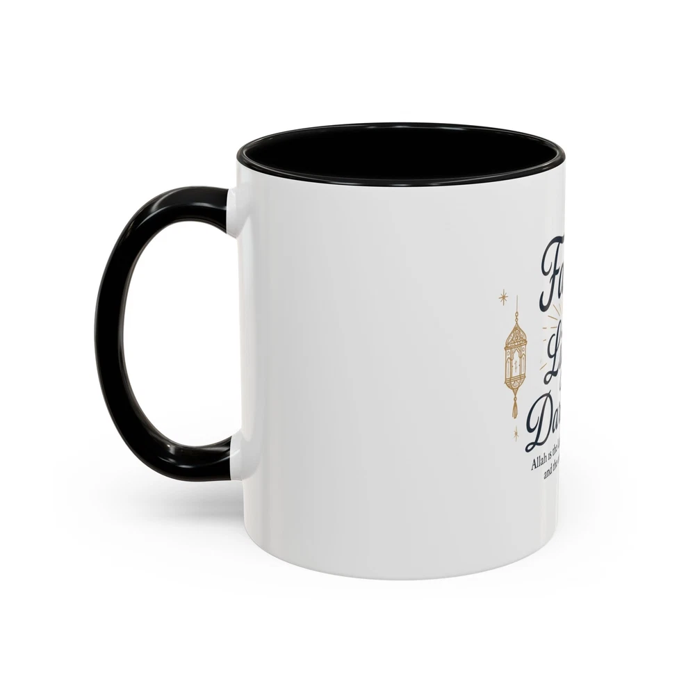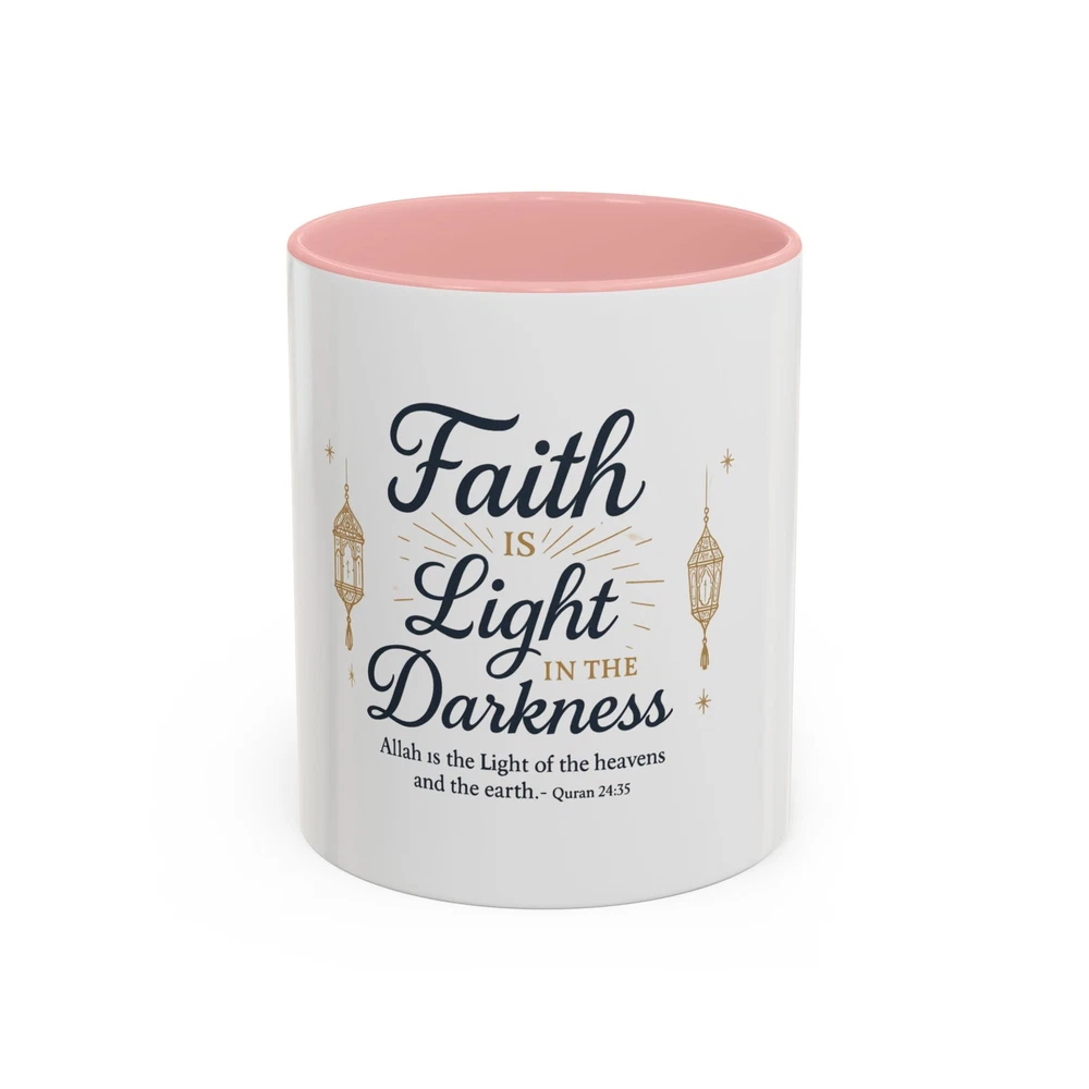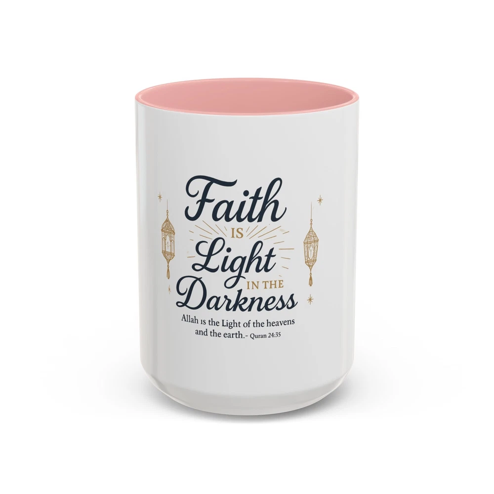 Introducing a vibrant Accent Coffee Mug that adds a splash of personality to your morning routine! Made from durable white ceramic, this mug features a stunning color contrast with a glossy finish that makes even the dullest days feel bright. Ideal for coffee lovers and tea enthusiasts alike, its generous sizes of 11oz and 15oz cater to your caffeine cravings perfectly. The C-shaped handle offers a comfortable grip, ensuring that every sip feels delightful. Whether you’re enjoying a quiet moment at home, sharing laughs with friends, or gifting it to someone special, this mug is perfect for various occasions like birthdays, holidays, or even as a thoughtful 'just because' gift. Celebrate your faith or inspire a loved one during Ramadan, Christmas, or any season of giving with this beautiful piece that reminds us that 'Faith is Light in the Darkness'. Embrace your unique style with this expressive addition to your drinkware collection! Product features - Microwave-safe for easy heating - Dishwasher-safe for effortless cleaning - Vibrant colors with crisp designs - Made from lead and BPA-free ceramic - Available in two sizes for your preference Care instructions - Clean in dishwasher or wash by hand with warm water and dish soap EU representative : HONSON VENTURES LIMITED, 3, Gnaftis House flat 102, Limassol, Mesa Geitonia, 4003, CY Product information : Generic brand, 2 year warranty in EU and Northern Ireland as per Directive 1999/44/EC Care instructions : Clean in dishwasher or wash by hand with warm water and dish soap