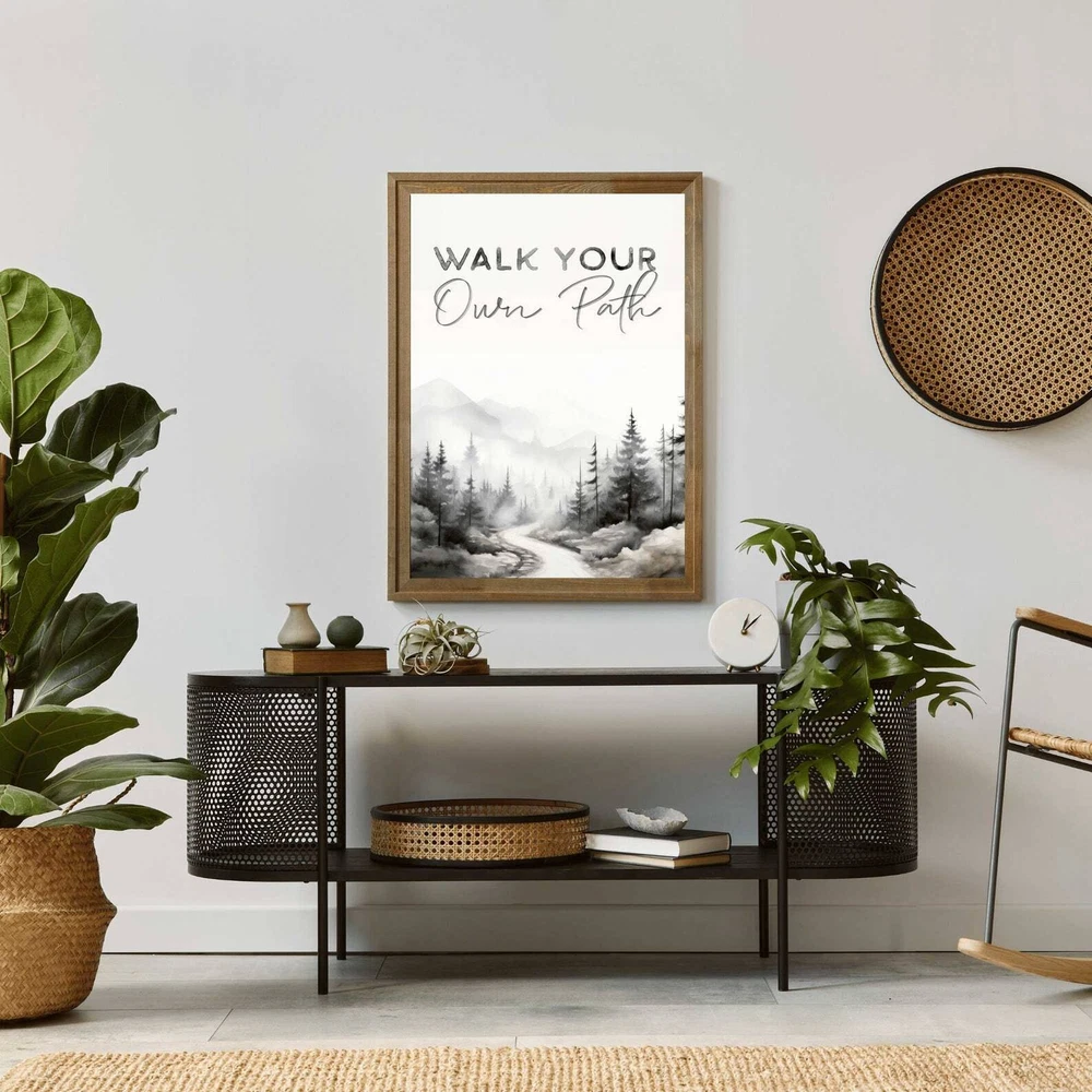 Inspirational Quote Print Walk Your Own Path Motivational Art Quote Wall Art Watercolor Forest Decor Art Material: Premium luster photo paper Print type: Inkjet printing One side printed + The finish provides the highest possible resolution and color saturation + Lasts up to 200 years in color and 400 years in black-and-white + Printed on high-quality resin-coated photo base paper medium + Posters can be hung with double-sided tape, tacks, or framed + Hand washing with a gentle cry cloth is recommended for extended durability I will hand select the best choice of paper for your chosen design to ensure top quality results for a beautiful, bright and luxurious print. All prints are sealed in cellophane slips for protection during transportation, and are shipped in a protective cardboard envelope.
