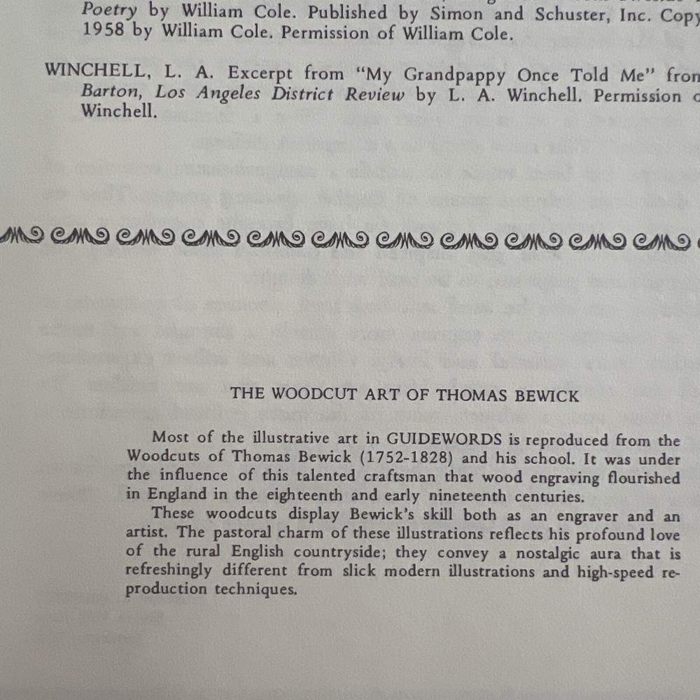 ISBN:Does not applyBook Title:Guidewords An Anthology of Inspiration and HumorTopic:QuotationsGenre:HumorFormat:Faux Leather BoundAuthor:Miriam HunterPublisher:HunterLanguage:EnglishFeatures:Illustrated, Faux Leather BoundPublication Year:1971Number of Pages:256gtin13:Does not apply