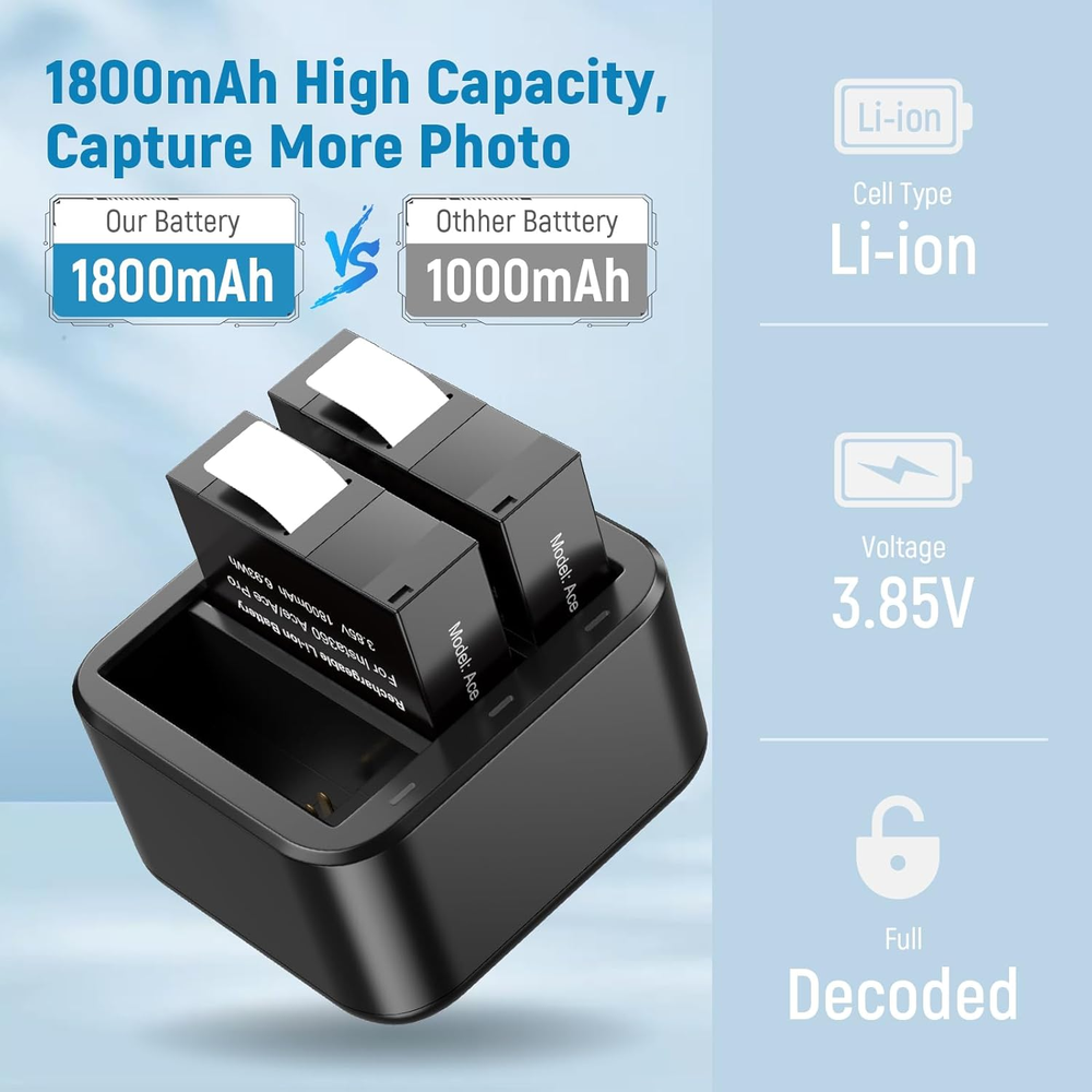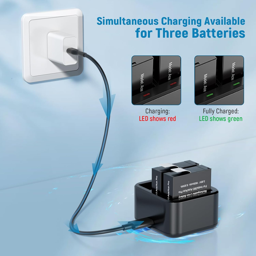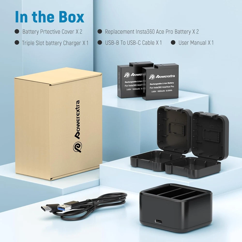 Store New Arrivals Add to Favorite View Feedback Contact Insta360 Ace Pro Battery 1800Mah and 3-Channels Charger Station for Insta360 Ace Pro, for Insta360 Ace Pro Action Camera Accessories Description Color black Product Dimensions 6.1"D x 2.32"W x 3.97"H Country of Origin China Item Weight 6.5 ounces Batteries 2 Lithium Ion batteries required. (included) Input Voltage 5 Volts Output Voltage 7.4 Volts 【High Capacity &Fully Compatible 】 2-pack battery 1800mAh fully charged can provide your camera up to 2 times longer, battery are designed for insta360 ace pro camera, 100% Compatible with insta360 ace Pro action camera. 【Multiple Safety protections & service】Powerextra 360 ace pro battery has a built-in smart chip, which provides overvoltage protection, overcurrent protection, short circuit protection, high temperature, overcharge protection for your camera. And we provide 24-hour online customer service and three-year product service. 【Flexible Charging Method】 3-channel charger can charge 3 batteries simultaneously,and each charging slot works independently.Universal Micro-USB and Type-C input enables battery adapter to be powered by any USB 5V output, such as wall chargers, laptops, car adapters, power bank.suitable for traveling, camping, and other outdoor/indoor activities. 【Intelligent LED Charger】Built-in LED indicator shows the charging status of each battery intuitively. RED light means charging, GREEN light means full charge or no battery inserted. dual charger can charge three batteries simultaneously, effectively saving charging time. 【Product List 】2*360 ace pro Li-ion battery,1*triple slot USB fast charger hub.1*USB type-C cable. insta 360 ace pro battery case built-in micro SD card storage slots,safe storage to prevent loss Product Description The video showcases the product in use. The video guides you through product setup. The video compares multiple products. The video shows the product being unpacked. Powerful Battery Battery Replaces: insta360 ace pro Battery Type: Lithium-ion Battery Battery Parameter: 1800mAh 3.85V 6.93Wh (2Pack) Triple Slot Battery Charger Charger Input: Micro-USB/Type-C, 5V/2.4A Charger Output: 3.85V/700mA*1, 550mA*2, 350mA*3 Perfectly designed for insta360 ace pro battery ABOUT US We offer the best prices around on high quality products. Our E-store includes media such as books, movies, music and games while offering electronics, toys, sporting apparel, clothing, tools, general home, garden items and more. SHIPPING We are always working hard to ensure your package arrives as soon as possible. Please understand that some factors like weather, high postal traffic, and the performance of shipping companies are outside of our control. We offer free shipping to the lower 48 states and ship within 2 business days of payment, usually sooner. We do not accept P.O. Boxes. Please provide a physical address. For shipping outside of the continental USA, we only use eBay's Global Shipping Program.The item is shipped to KY and then sent to the rest of the world. International customers are responsible for all duties and taxes. Continue to check out in order to calculate costs for shipping the item to your country. Messages regarding eBay's Global Shipping Program MUST be directed at eBay EXCLUSIVELY. RETURNS We offer a 30-Day Return Policy on items which you are not completely satisfied with. You have the option for a full-refund or an exchange of the item. No returns are available on items shipped outside of the USA. PAYMENT We accept PayPal. CONTACT US This page content is yet to come Please ad us to your favorite seller and visit again later Thank You CUSTOMER SATISFACTION We try our very best to make sure every customer is completely satisfied. If there's a problem, message us! We're happy to help. WE ACCEPT Copyright © 2021 AutoDS. | All Rights Reserved