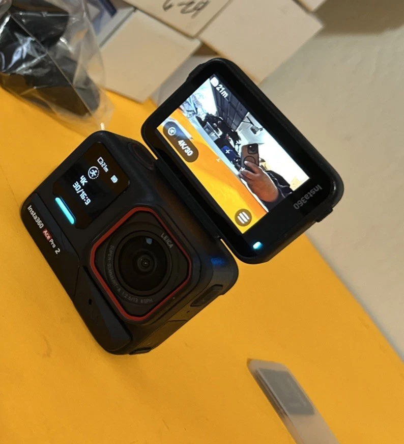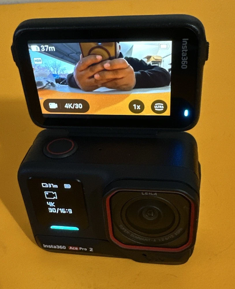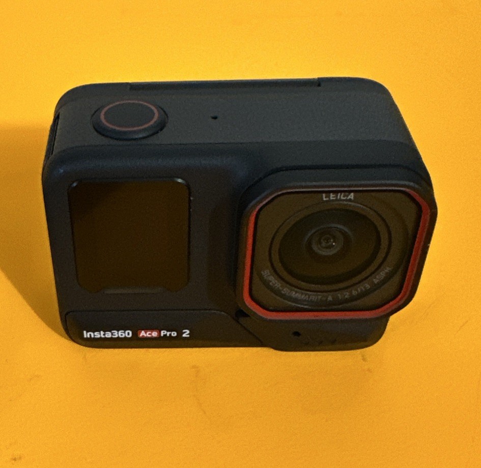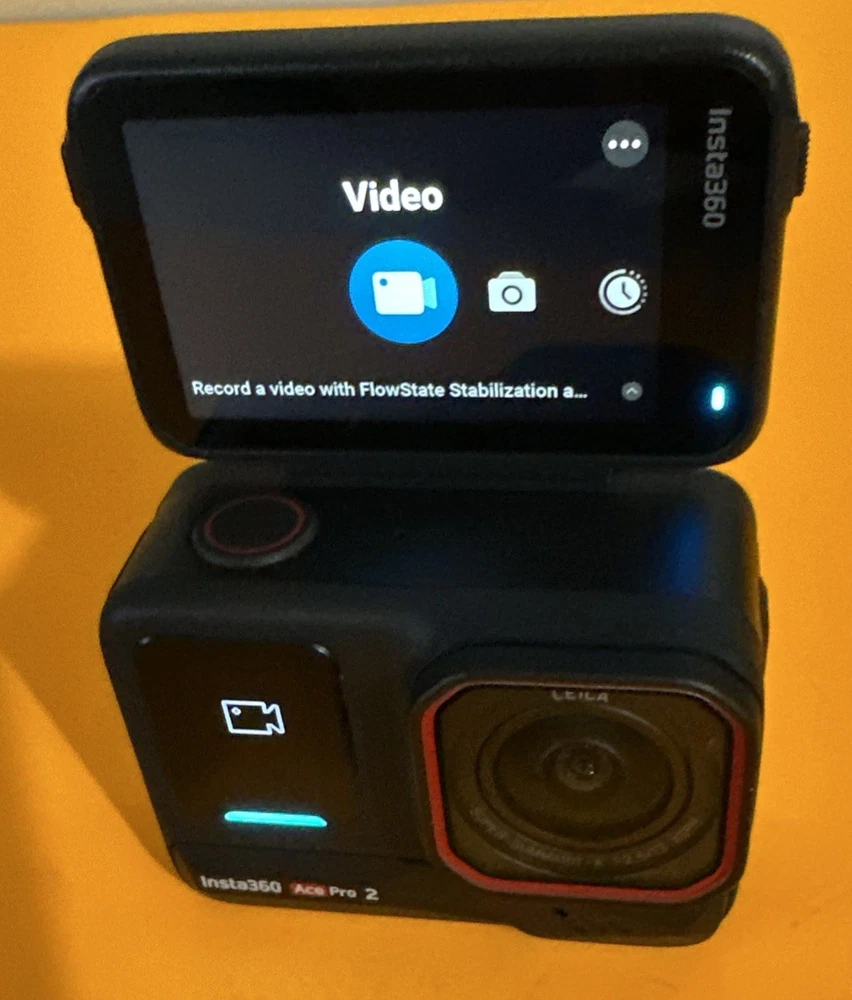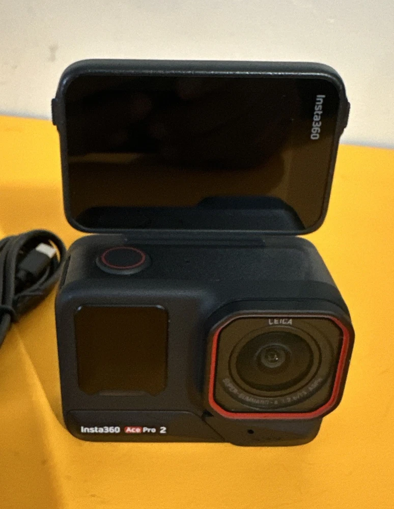 The Insta360 Ace Pro 2 is a high-definition, AI-powered action camera with built-in Wi-Fi and image stabilization features. It is designed for helmet/action recording with a 2.5-inch screen size and a sleek black color. The camera is waterproof, dustproof, and comes with a built-in microphone. It also offers USB-C connectivity and utilizes SD media format for storage. This kit includes 1 batteries and comes with freebies, making it a great option for capturing adventurous moments in high-resolution detail. Please look at the photos; they are part of the description. What you see in the photos is what you will receive. The camera is basically new; it was only taken out of the box. It has some small scratches on the back glass, but nothing major