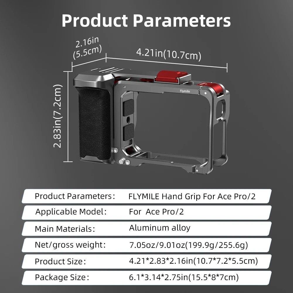 If available stock is too low, please advise the desired quantity. Product Highlights Swipe, compare and decide with confidence. 1 Overview 2 Gallery 3 Details & Specs 4 Support & FAQ Image gallery Tap thumbnails or arrows to switch the view. ‹ › ‹ › ‹ › ‹ › ‹ › ‹ › 1 / 6 2 / 6 3 / 6 4 / 6 5 / 6 6 / 6 Key benefits Why this product stands out Core features in a compact overview – ideal for quick comparison on eBay. Durable aluminum build Lightweight, rigid aluminum construction resists wear during field use. Shutter button & controls Integrated shutter button enables quick one-handed capture for action shots. At a glance Quick summary Clear & concise Improve steadiness and control on every shot with the Insta360 Ace Pro Pro 2 Aluminum Grip Kit. Built from durable aluminum, this accessory mounts with the Insta360 Ace Pro Pro 2 to offer a secure, case-style grip and long-lasting durability. The integrated shutter button enables quick one-handed capture, keeping your focus on action rather than controls. Includes a handle, shutter button, rabbit cage, hand rope, and lens cover to shield components and simplify transport. The kit preserves a slim profile while enhancing grip for stable pans and rapid shoots, whether you’re traveling light or filming in dynamic environments. Details & Specs Technical Specifications Mobile-friendly Mobile: stacked view. Desktop: table view. Model Number Insta360 Type Case Material Aluminum Weight (Net) 199.9 g Product Size 4.21 x 2.83 x 2.16 in Package Weight 255.6 g Model Number Insta360 Type Case Material Aluminum Weight (Net) 199.9 g Product Size 4.21 x 2.83 x 2.16 in Package Weight 255.6 g Service & help Our promise, support & FAQs What’s included, service promise and answers to common questions. Included Scope of delivery – what is in the box 1× Handle 1× Shutter button 1× Rabbit cage 1× Hand rope 1× Lens cover Our Service Promise Shipping, delivery window & tracking Efficient logistics: We ship via selected partner warehouses to ensure fast, direct delivery. Shipped from: Ships most likely from CN; in some cases may be fulfilled from another location. Carrier varies; delays possible. Optimized carrier choice: The best carrier is selected dynamically based on the fastest route. Reliable delivery window: The shown delivery time is an overall estimate incl. handling and transit. Transparent tracking: The tracking number is provided as soon as the parcel reaches the distribution center. Frequently Asked Questions (FAQ) Answers to common buyer questions What cameras is the Insta360 Ace Pro / Pro 2 Aluminum Grip Kit compatible with? Designed for Insta360 Ace Pro and Pro 2; not compatible with other models. What’s included in the grip kit? An aluminum grip with integrated shutter button and mounting hardware for Insta360 Ace Pro/Pro 2. What are the dimensions and weight of the grip kit? Product size: 4.21 x 2.83 x 2.16 inches. Net weight: 199.9 g. How do I install and use the shutter button? Attach to the camera using the standard mounting points and tighten the screws. Use the built-in shutter button for convenient control. How should I care for the grip kit? Wipe with a soft, dry cloth; avoid harsh chemicals and prolonged exposure to moisture. Structured product overview Designed for mobile & desktop Helpful support section © 2026 WARENGUT. All rights reserved. Item number: 6256809902617993