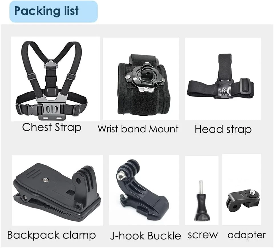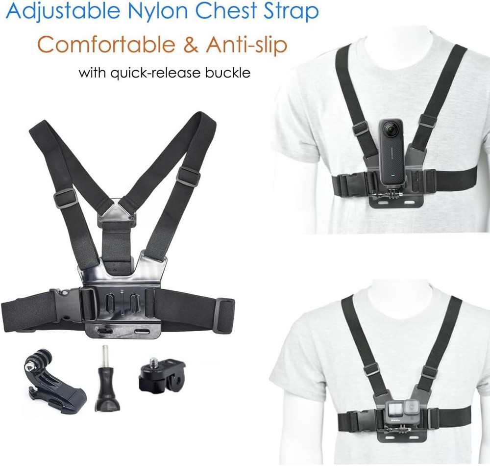 Camera Chest Mount Kit for Insta360 X4/X3/Ace Pro/Go3S, with Black Product Details Package Dimensions: 9.49 x 8.23 x 2.56 inches Item Weight: 8 ounces Item model number: VG Manufacturer: VG Brand: vgsion Color: Black Compatible Devices: GoPro Hero 12, Hero 11, Hero 10, Hero 9, Hero 8, Insta360 X4, insta360 X3, insta360 Ace Pro, Ace, Go 3, Insta360 One RS GoPro Hero 12, Hero 11, Hero 10, Hero 9, Hero 8, Insta360 X4, insta360 X3, insta360 Ace Pro, Ace, Go 3, Insta360 One RSGoPro Hero 12, Hero 11, Hero 10, Hero 9, Hero 8, Insta360 X4, insta360 X3, insta360 Ace Pro, Ace, Go 3, Insta360 One RS See more Compatible Phone Models: compatible with action cameras Mounting Type: body wear The accessories kit includes a chest mount, backpack clamp mount, head strap mount, and wrist strap mount for Insta360 X4, X3, X2, Ace, go pro hero 11, hero 10 and other action cameras Wide compatibility: Compatible with Insta360 x4, X3,X2, Ace, Ace Pro,One RS, One R, GoPro Hero 10, Hero 9, and other most action cameras in the market Comfortable, Non-Slip, Adjustable: The straps are made of nylon and soft elastic microfiber for a better experience Camera Angle Easy Adjustable: The backpack clamp support 360-degrees rotation, the wrist band supports 180 degrees rotation Wide Application: Fit hiking, climbing, cycling, exercise, hunting, skating, skateboard, water sports, winter sports