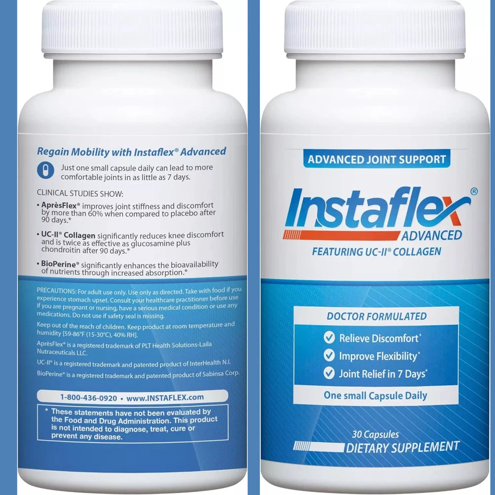 Instaflex Advanced Joint Support – Premium Relief in Just 7 Days! Say goodbye to joint discomfort and hello to improved mobility with Instaflex Advanced Joint Support , the next-generation formula trusted by men and women across the USA. Backed by clinical research, this doctor-formulated supplement combines cutting-edge ingredients to deliver fast, effective relief in as little as 7 days. Why Choose Instaflex Advanced? Clinically Proven Relief : Experience significant improvement in joint stiffness and knee discomfort in just one week. Enhanced Mobility : Boost your flexibility and support an active lifestyle with high-quality, potent ingredients. Twice as Effective as Glucosamine : Powered by UC-II Collagen , proven to be 2x more effective than glucosamine and chondroitin combined. Convenient & Easy to Use : Just one small capsule a day delivers powerful, fast-acting results. Formulation : Created with your joint health in mind, using ultra-premium, safe, and effective ingredients. Benefits You ’ ll Love ✔ Relieves Joint Discomfort ✔ Improves Flexibility and Mobility ✔ Supports an Active, Pain-Free Lifestyle ✔ Helps Reduce Stiffness for Daily Activities Perfect for Active Individuals Whether you're tackling a busy day or staying active with your favorite hobbies, Instaflex Advanced is your go-to joint support solution. With a proven formula and glowing reviews, it ’ s time to take control of your joint health!