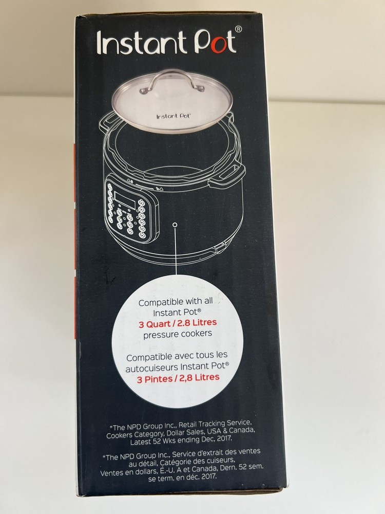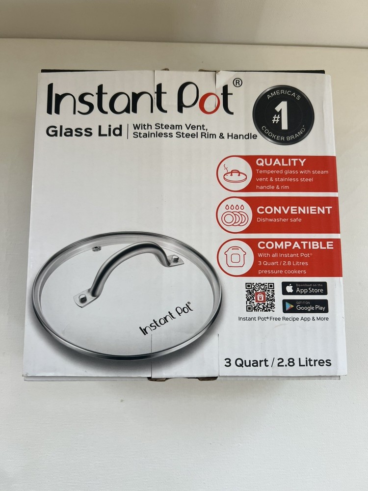 This genuine Instant Pot tempered glass lid is designed for the 3‑quart Instant Pot models. It features a clear viewing window, built‑in steam vent, and a durable stainless steel rim and handle. Perfect for sautéing, slow cooking, and keeping food warm without using the pressure lid. Features: • Compatible with all 3‑Qt Instant Pot models • Tempered glass for safe, clear viewing • Steam vent to prevent boil‑overs • Stainless steel rim & handle for durability • Dishwasher‑safe for easy cleanup • Ideal for sauté, slow cook, and keep‑warm modes Condition: • New / Open Box (adjust based on your item) • No cracks, chips, or defects • Packaging included (if applicable) Shipping: Ships securely with protective padding to ensure safe delivery.