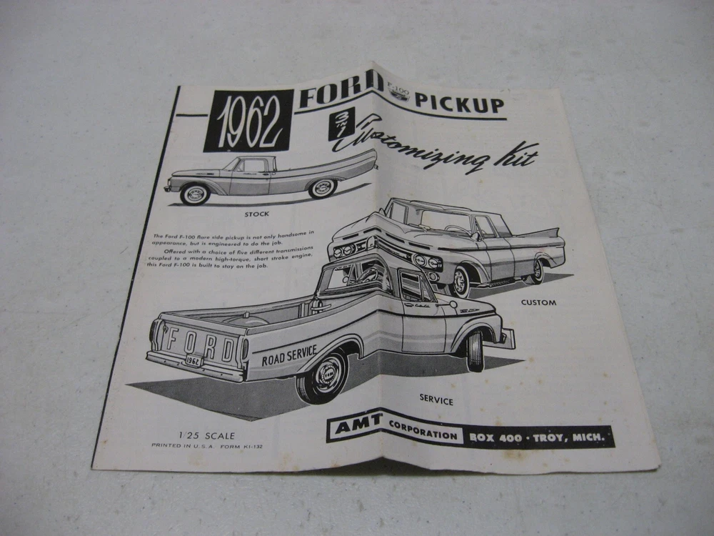 First, I want to thank you for taking the time to view my listing!! In this listing you are bidding on - Instruction Sheet Only -AMT 1962 F-100 Ford Pickup Truck Model Kit #K-132-200. See pics.! I am not an expert on anything I sell. I purchase estates and buy abandoned storage units. The items I list for sale are just items I have found in one of these ways. The items are listed as found! I do not clean or repair the items! If you have any questions about an item then please ask! I will only contact you through eBay Messages, so DO NOT send any personal contact information! For those who send this information anyway, you will be reported to eBay. I will only ship to the continental U.S., Alaska & Hawaii. You will receive tracking numbers through eBay showing that your item was shipped!