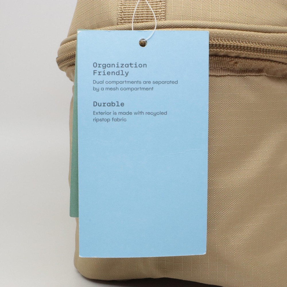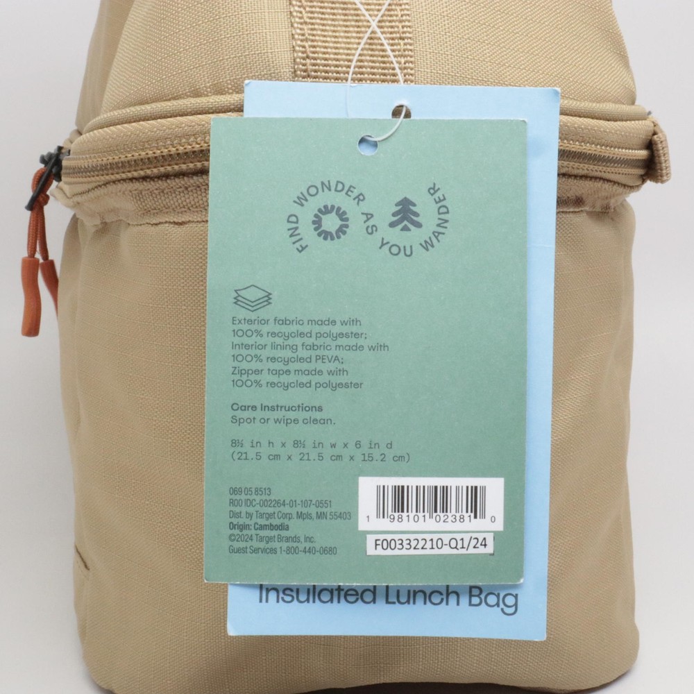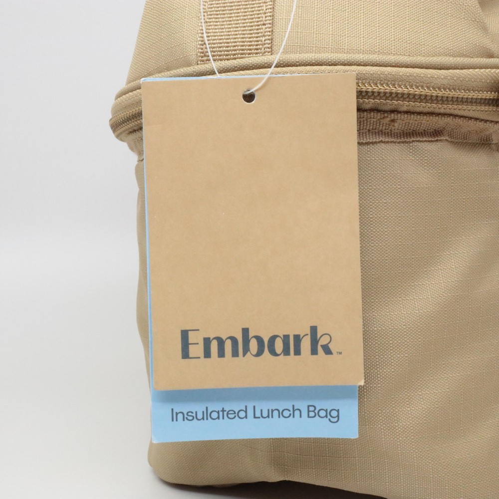 Embark Insulated Durable Dual-Compartment Lunch Bag/Tote/Box - Tan Carry your lunch in convenient style in this Dual-Compartment Classic Molded Lunch Bag from Embark. Crafted from 100% recycled polyester in a solid hue, this lunch bag features a dome-like structure with a main compartment that offers plenty of space for different foods and beverages. Plus, a mesh zippered compartment comes in handy for carrying small utensils, condiment sachets, tissue papers and more. Secured by a zipper closure, this 5-liter lunch bag features a name tag on the inside, while a tote handle makes it easy to carry. Embark: Find Wonder As You Wander Features Details Shipping Weight: 0.0 pounds Item model number: 89731125 Fast & Free Shipping Orders are shipped out within 2-3 business days usually and delivered to your doorstep as quickly as possible. Competitive Pricing Our competitive prices are some of the lowest that you will find on the internet. Rest assured that you're getting a good deal when purchasing from us. 30-day Money Back Guarantee We are committed to making sure that you leave this transaction satisfied. If you're unhappy with the product for any reason, you may return it back for your money-back or a replacement if available within 30 days.