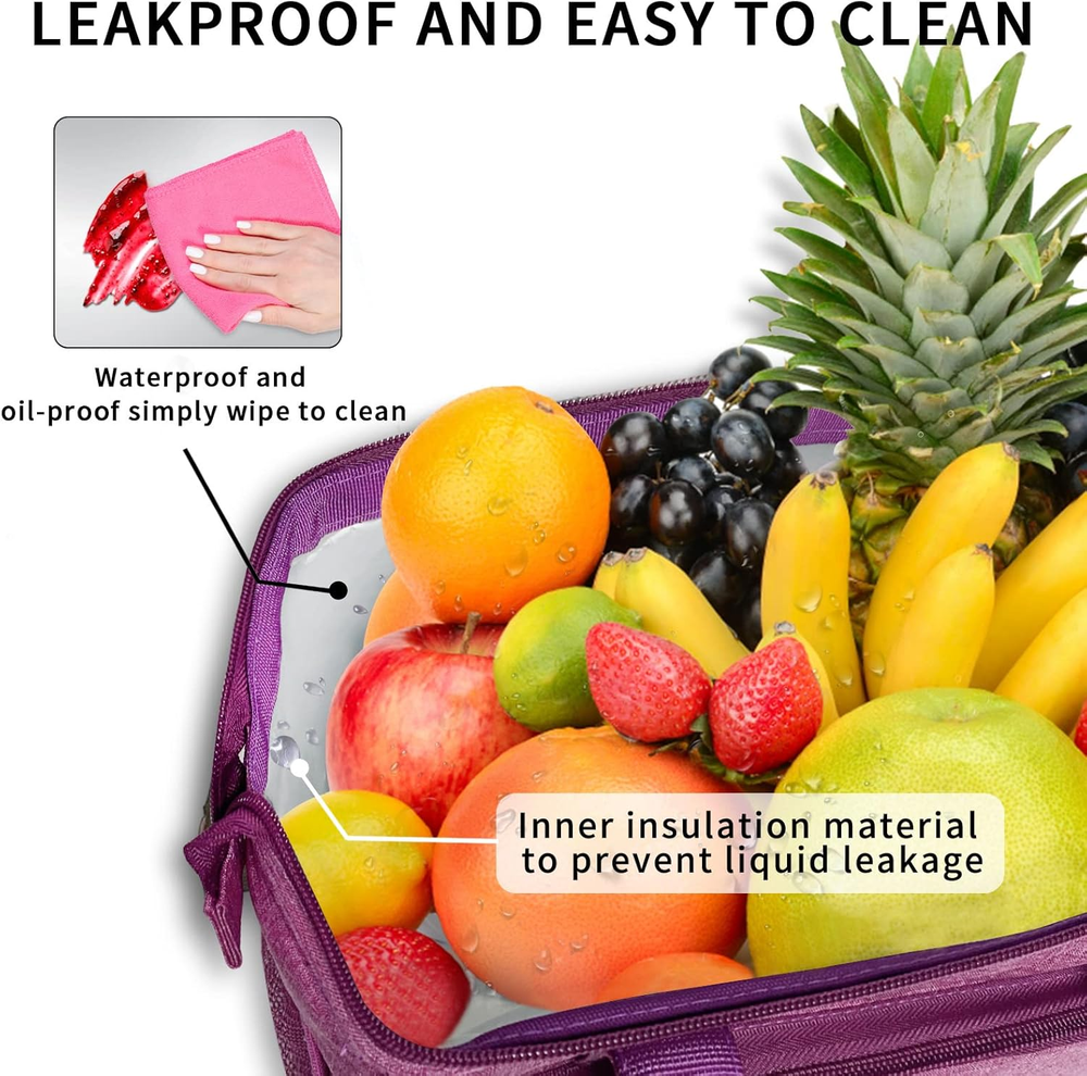 Insulated Lunch Bag for Women, Reusable Leakproof Large Lunch Box with Adjust...