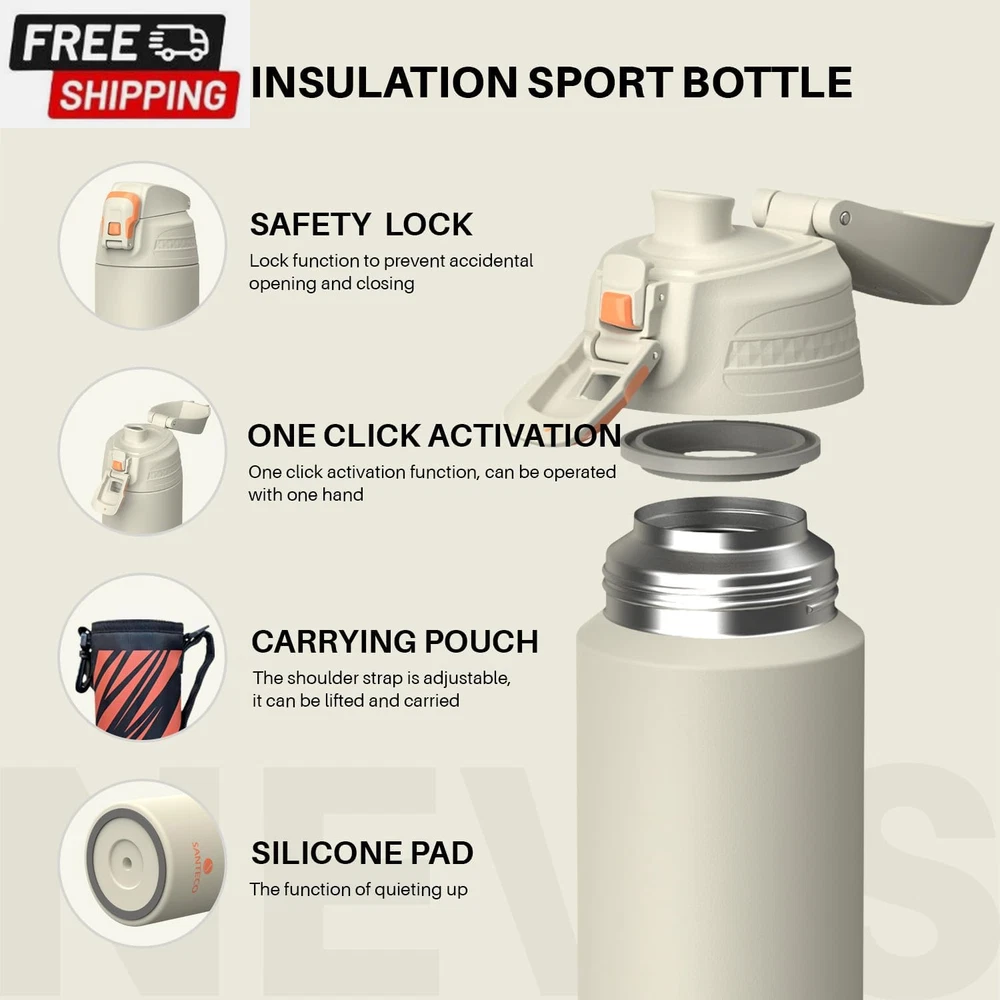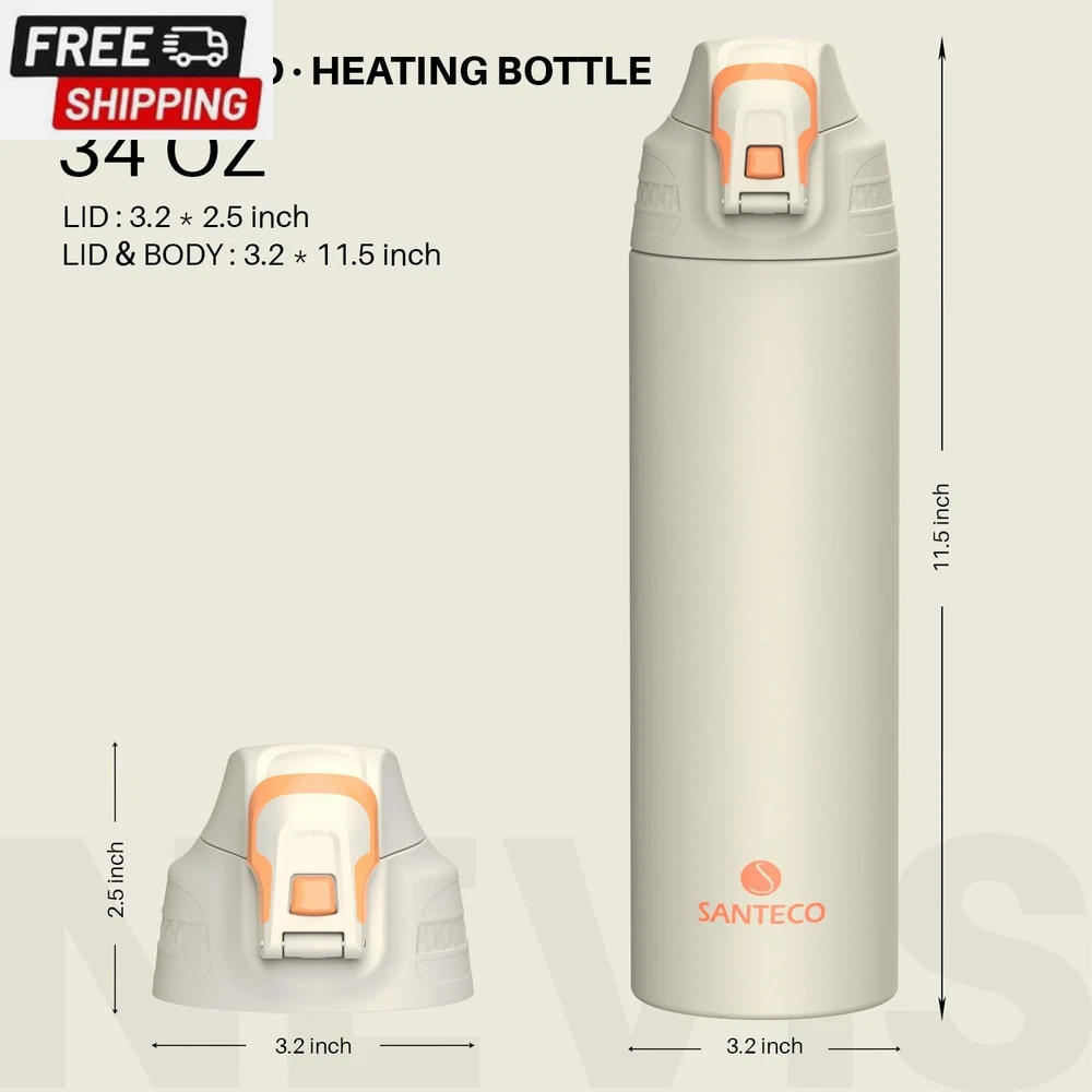 Fast Shipping On All Items 30 Days Money Guarantee Customer Support Excellent Service 100% Satisfaction Satisfaction Guaranteed Insulated Sports Water Bottle, Stainless Steel Water Bottles with Locking Flip Top Lid, Insulated Bottle with Double-Wall Vacuum Insulation for Fitness and Outdoor Enthusiasts Specification Age Range Description Adult Capacity 1 Liters Number of Items 1 Color Light Grey Material Type Stainless Steel Cap Type Flip Top Cap Theme Sport With Lid Yes Age Range (Description) Adult Item Dimensions W x H 4.2"W x 13.5"H Included Components Lid Special Feature Leakproof Special Features Leakproof Product Care Instructions Hand Wash Only Size 33.8 Ounces 13.5 "h x 4.2 "h. Item Description 【EXCELLENY HEAT AND COLD RETENTION】 SANTECO's vacuum insulated water bottle NEVIS series has excellent heat and cold retention. Heat retention effect: 58°C or higher (12 hours) / Cold retention effect: 9°C or lower (24 hours). 【SAFETY LOCK / EASY TO CARRY】 Comes with a button lock to prevent the lid from opening accidentally. It can be used with one hand and the flip-up lid can be easily opened. A cup bag is also included, making it convenient to carry. 【PREMIUM 18/8 STAINLESS STEEL】 Durable and sanitary 18/8 stainless steel interior, you can safely put ice water, hot coffee, sports drinks, etc. in it. Exclusive use of vacuum copper plating technology- The exterior of the vacuum sealed area is dipped in copper for added insulation. Copper reduces the transfer of temperature, adding even more insulation to your bottle. 【1L LARGE CAPACITY / WIDE MOUTH DEAIGN】 The wide mouth design makes it easy to put in large ice and easy to clean. It is gentle on the mouth and you can enjoy your drinks. Large capacity 1L that you can enjoy plenty of water in scenes such as hiking, camping, picnics, and sports! 【WARRANTY】 We offer an unconditional money back guarantee and a 12-month warranty period for customers who purchase SANTECO products. We also provide 24-hour online customer service, so we are always available to answer your questions. Product Description SANTECO WATER BOTTLE Add to Cart Add to Cart Add to Cart Add to Cart Customer Reviews 4.7 out of 5 stars 1,001 4.6 out of 5 stars 1,151 4.7 out of 5 stars 472 4.2 out of 5 stars 33 4.5 out of 5 stars 2,778 4.5 out of 5 stars 78 Price $18.99 $ 18 . 99 $23.99 $ 23 . 99 $22.99 $ 22 . 99 — $18.99 $ 18 . 99 — Capacity 50oz/1500ml 32oz/950ml 64oz/1900ml 64oz/1900ml 12oz/350ml 12oz/350ml Material Stainless Steel Stainless Steel Stainless Steel Stainless Steel Stainless Steel Stainless Steel Keep Hot 12h 12h 12h 12h 6h 12h Keep Cold 24h 24h 24h 24h 12h 24h Style Sports/Outdoor Sports/Outdoor Sports/Outdoor Sports/Outdoor Office/Home School/Home About us We offer the best prices around on high quality products. Our E-store includes media such as books, movies, music and games while offering electronics, toys, sporting apparel, clothing, tools, general home, garden items and more. Shipping We are always working hard to ensure your package arrives as soon as possible. Please understand that some factors like weather, high postal traffic, and the performance of shipping companies are outside of our control. We offer free shipping to the lower 48 states and ship within 2-3 business days of payment, usually sooner. We do not accept P.O. Boxes. Please provide a physical address. For shipping outside of the continental USA, we only use eBay's Global Shipping Program.The item is shipped to KY and then sent to the rest of the world. International customers are responsible for all duties and taxes. Continue to check out to calculate costs for shipping the item to your country. Messages regarding eBay's Global Shipping Program MUST be directed at eBay EXCLUSIVELY. Returns We offer a 30-Day Return Policy on items in which you are not completely satisfied with. You have the option of a full-refund or an exchange of the item. No returns are available on items shipped outside of the USA Satisfaction We try over very best to make sure every customer is completely satisfied. If there's a problem, message us! We're happy to help. Payment Options Shop With Confidence